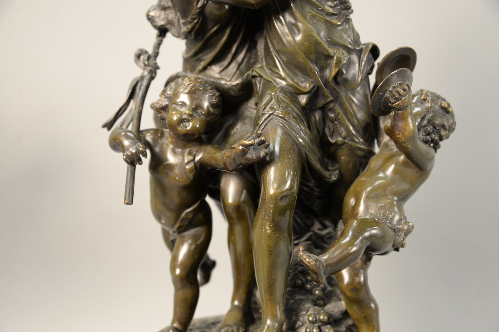 Lot 346: Pierre Alexandre Schoenewerk 1820 – 1885 bronze Bacchus family, inscribed on base Schoenewerk, De La Fontaine, resting on large ro…