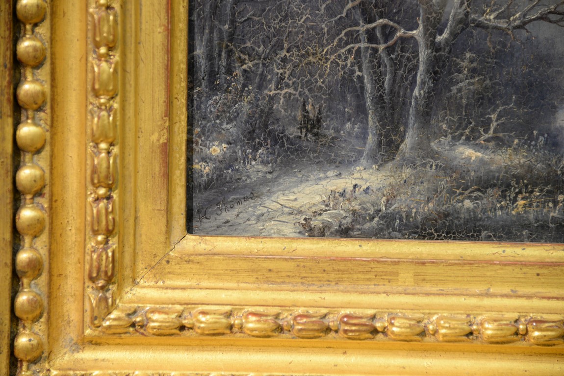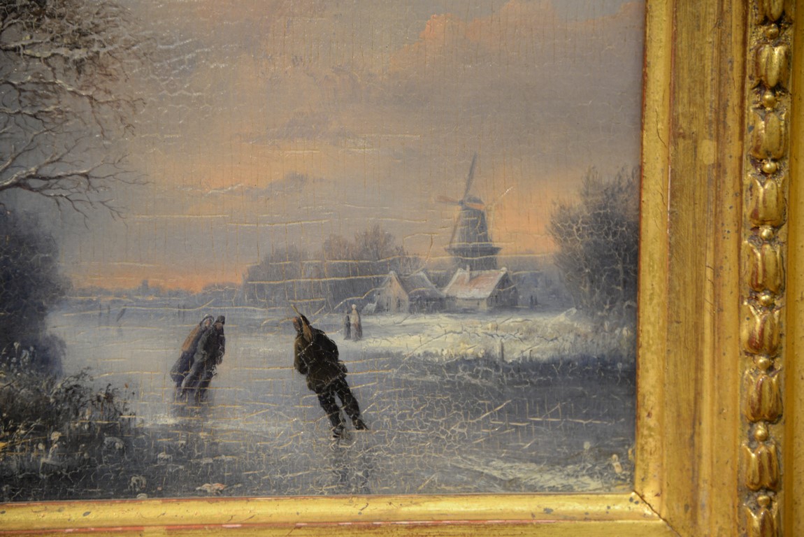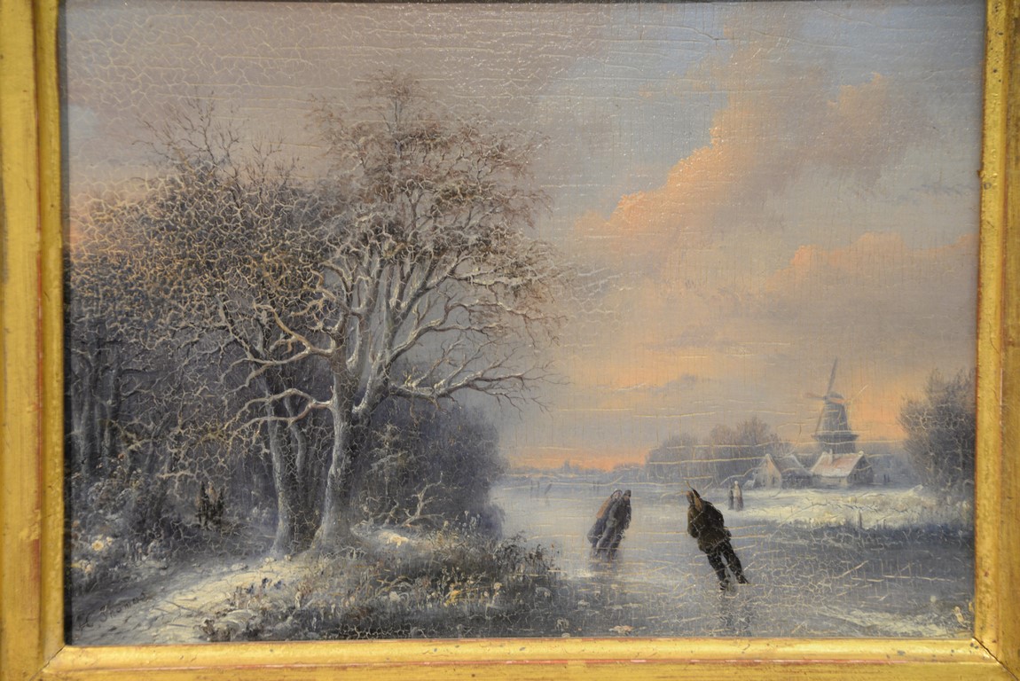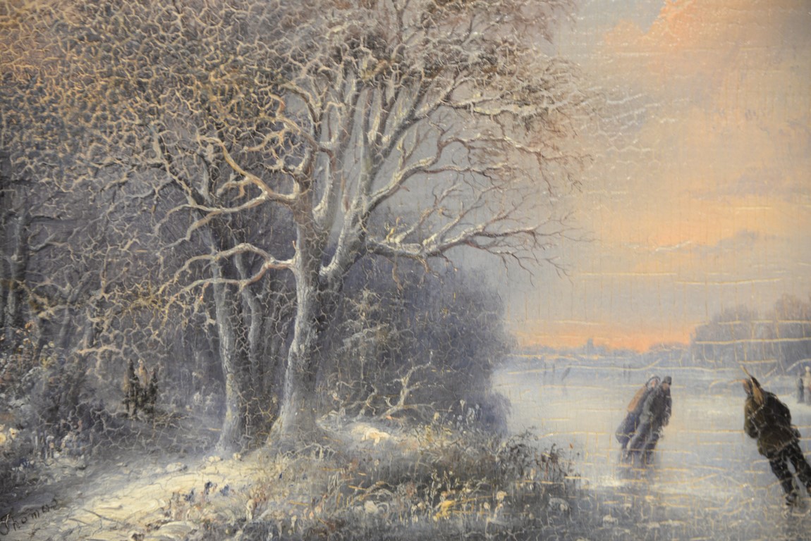 THOMAS Winter Skating oil on panel signed lower left T.H. Thomas 7 3/4 x 10 3/4