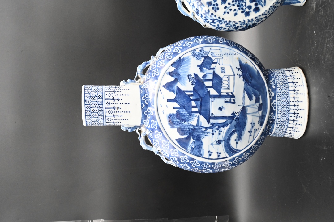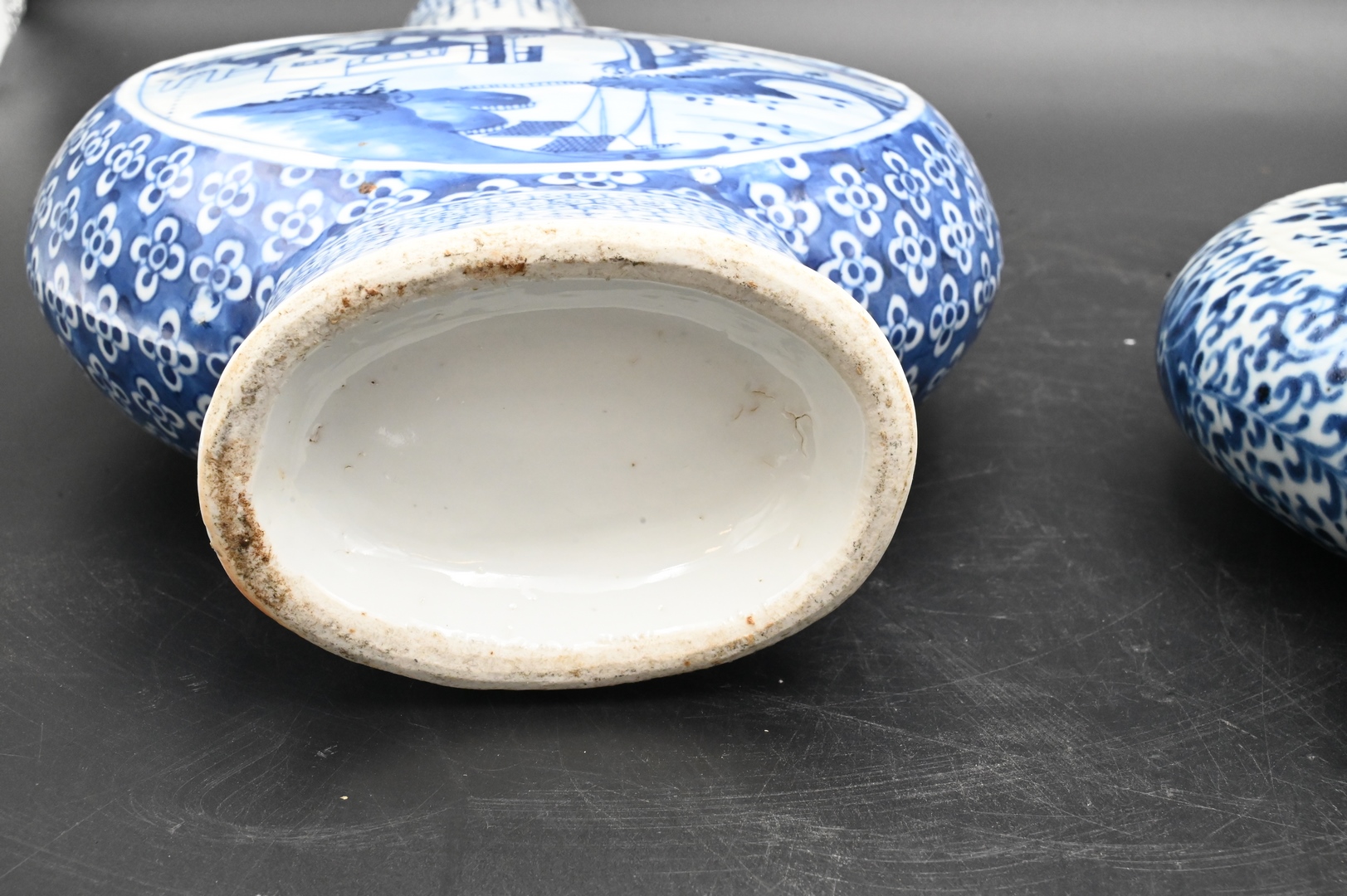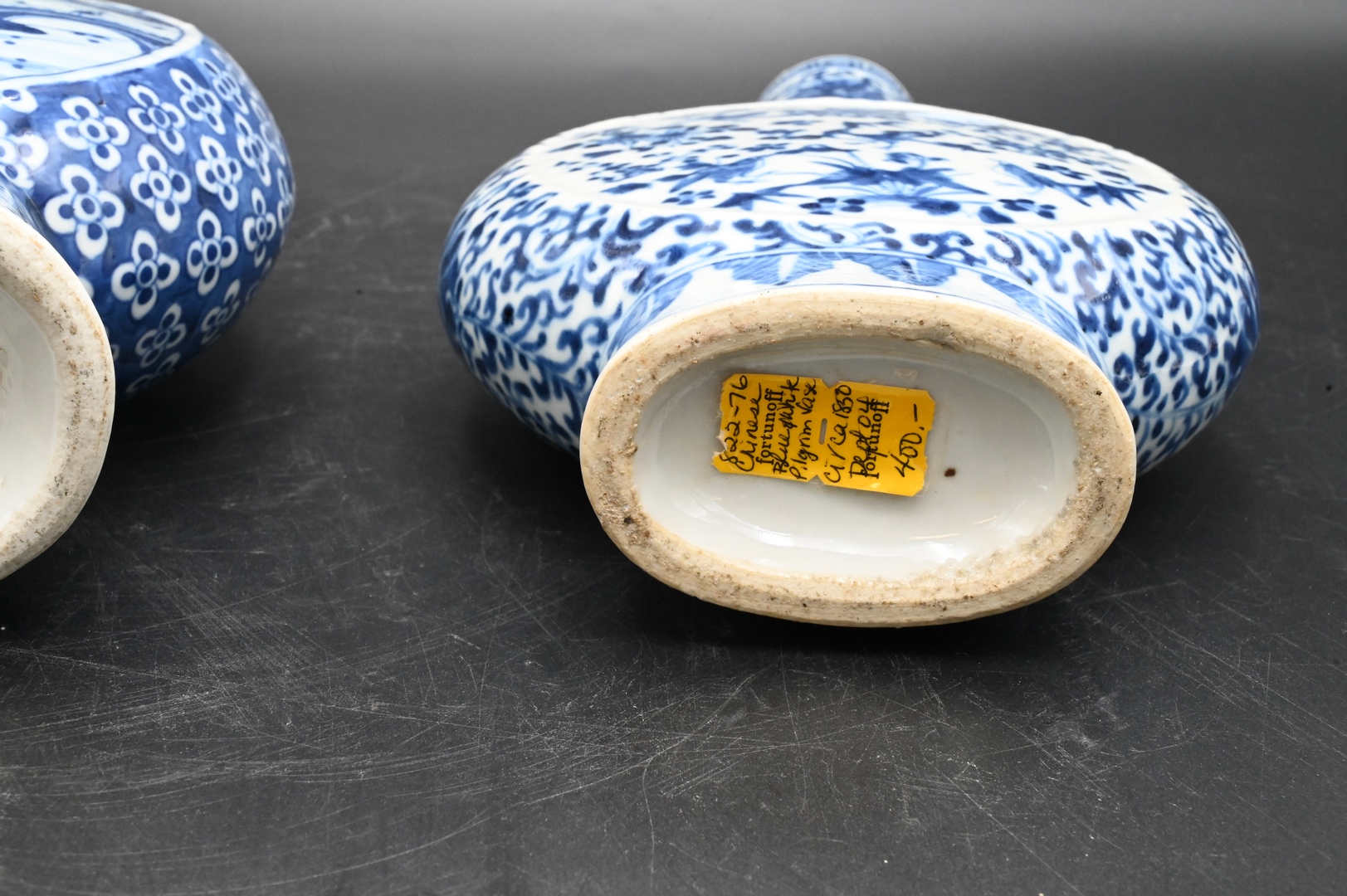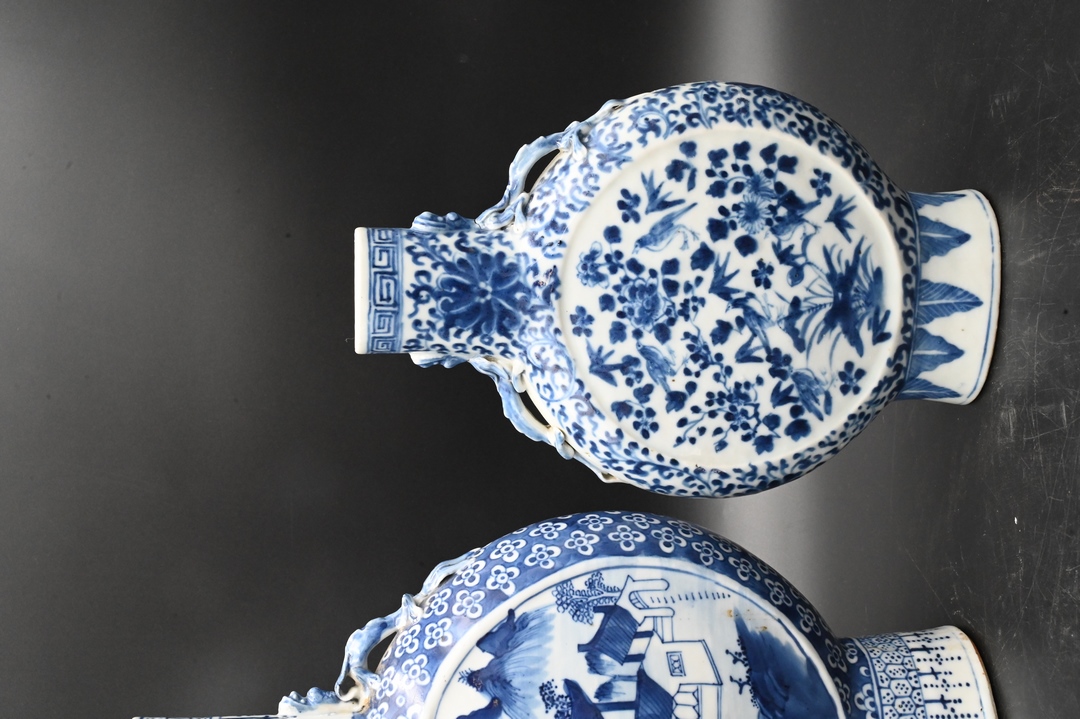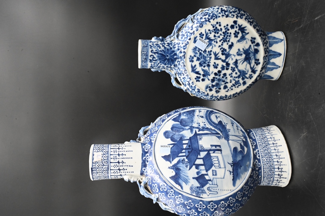 Two Chinese Blue and White Moon Flasks, heights 10 1/2 and 14 inches. Provenance: An estate from Redding, CT.