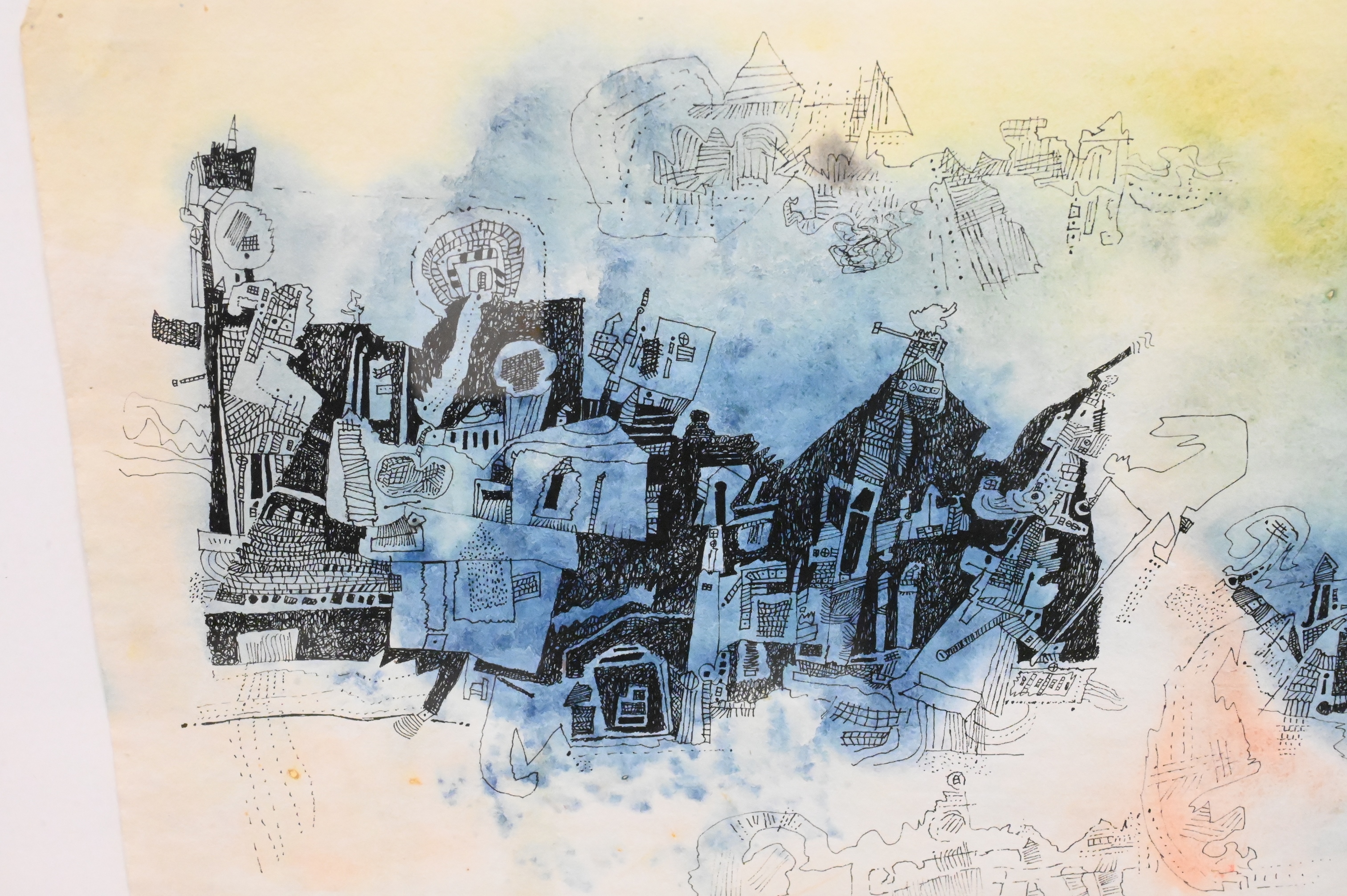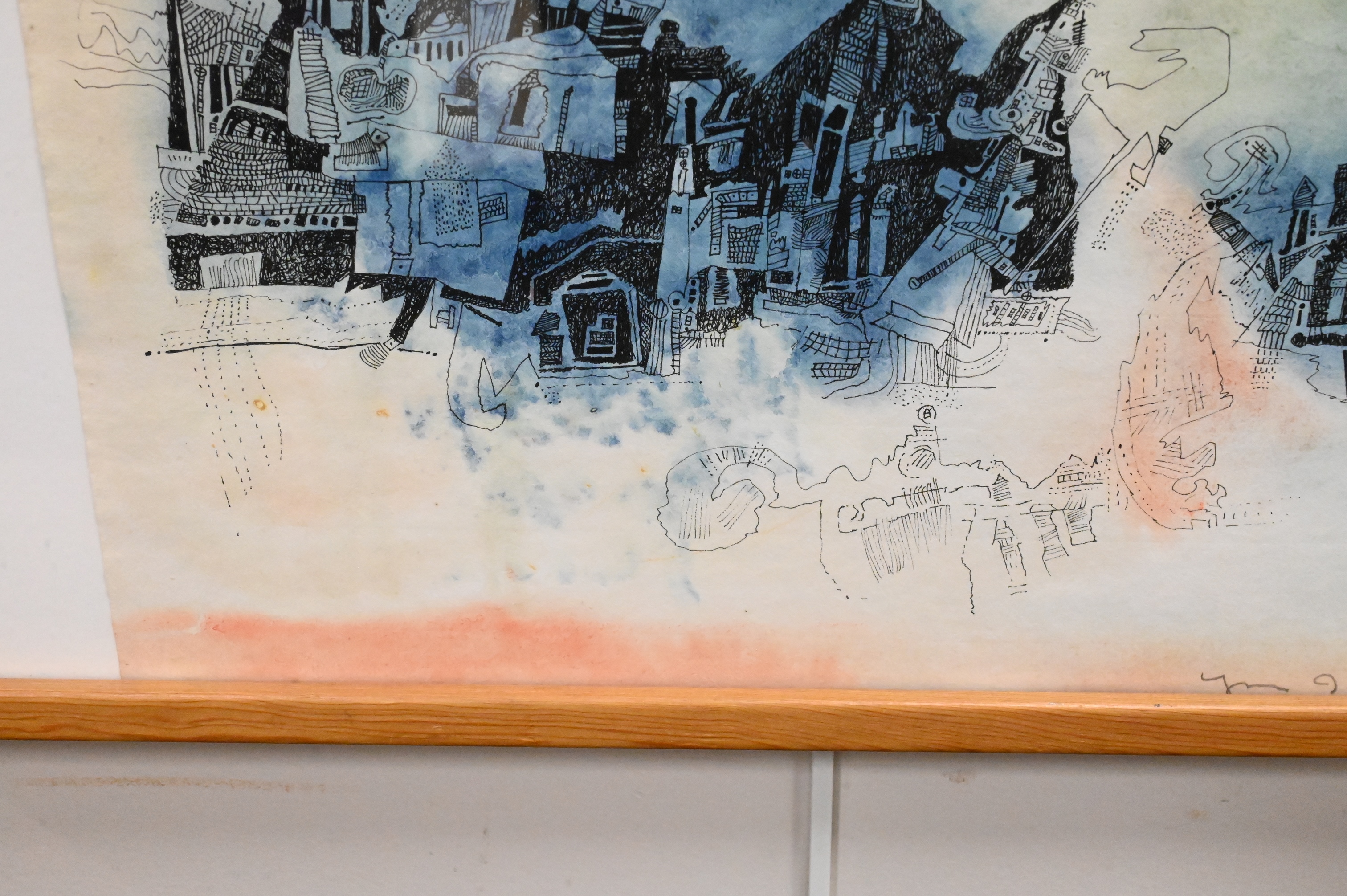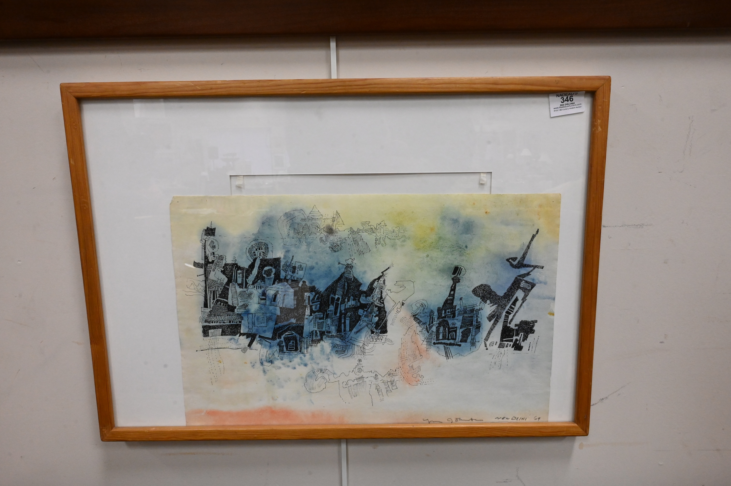 Signed, titled and dated lower right Ynez Johnston New Delhi ’64