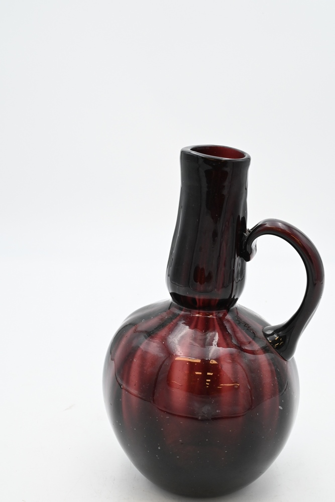 Lot 347: Antique Hand Blown Amethyst Bottle having handle height 9 1/2 inches