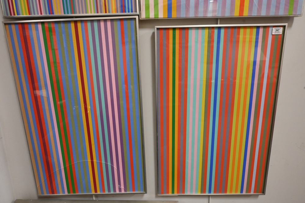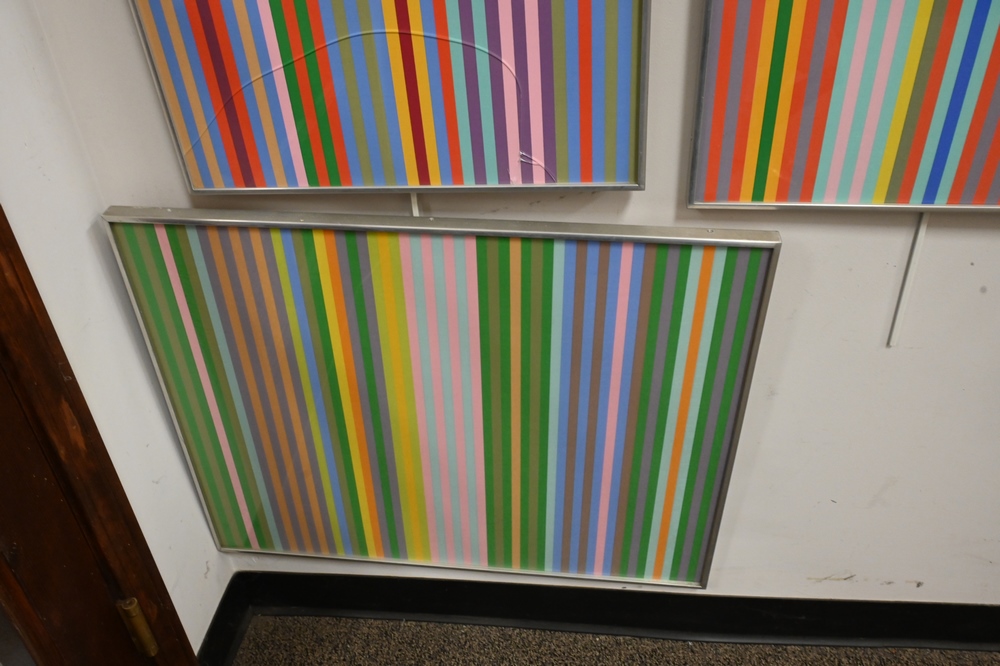 Lot 347: Gene Davis (1920 – 1985), set of five screen prints in color on canvas on board from Series II, to include No. 6 sweet carbusetos; Y…