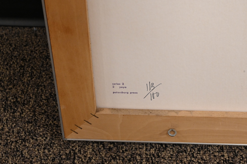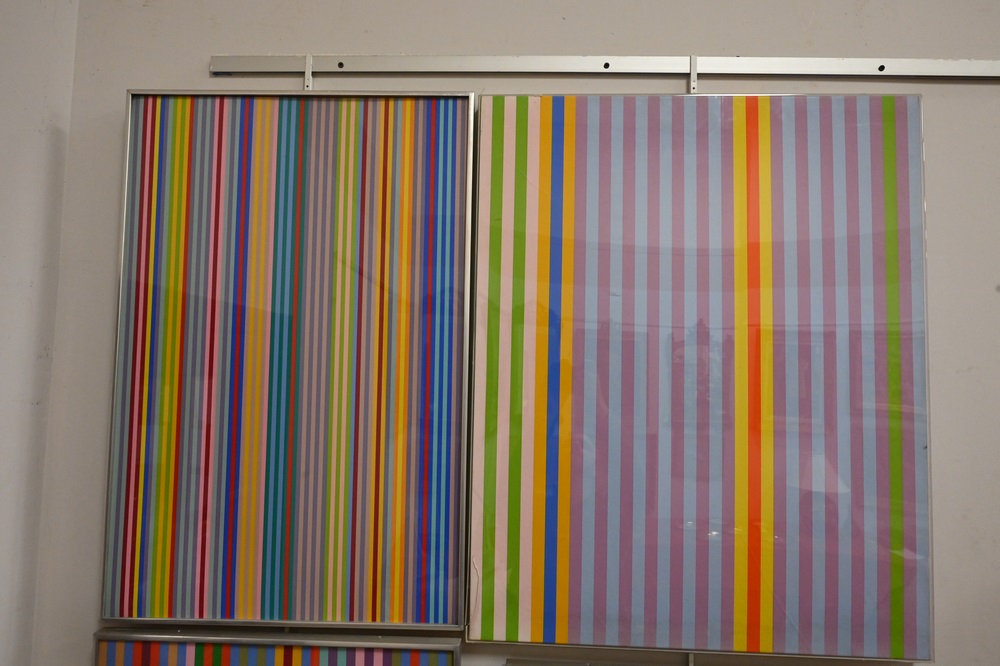 Gene Davis (1920 – 1985), set of five screen prints in color on canvas on board from Series II, to include No. 6 sweet carbusetos; Yoyo; Series 2; Zebra; Battle for grown ups; four of five numbered 113/150, signed on back, having Petersburg Press London stamp, 30″ x 20″. Provenance: Property from the Estate of Alexis Gregory, Sold to Benefit the Alexis Gregory Foundation.