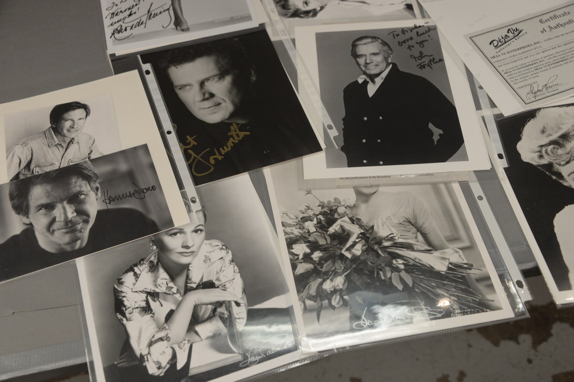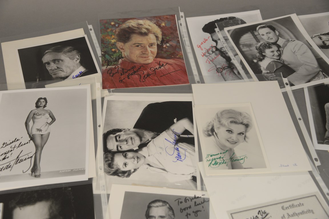 Lot 347: Group of 72 photographs, 38 are autographed including 2 Mel Ferrer, 1 Sally Field, 2 Eddy Fisher, 1 Peggy Fleming, 8 Rhonda Fleming,…
