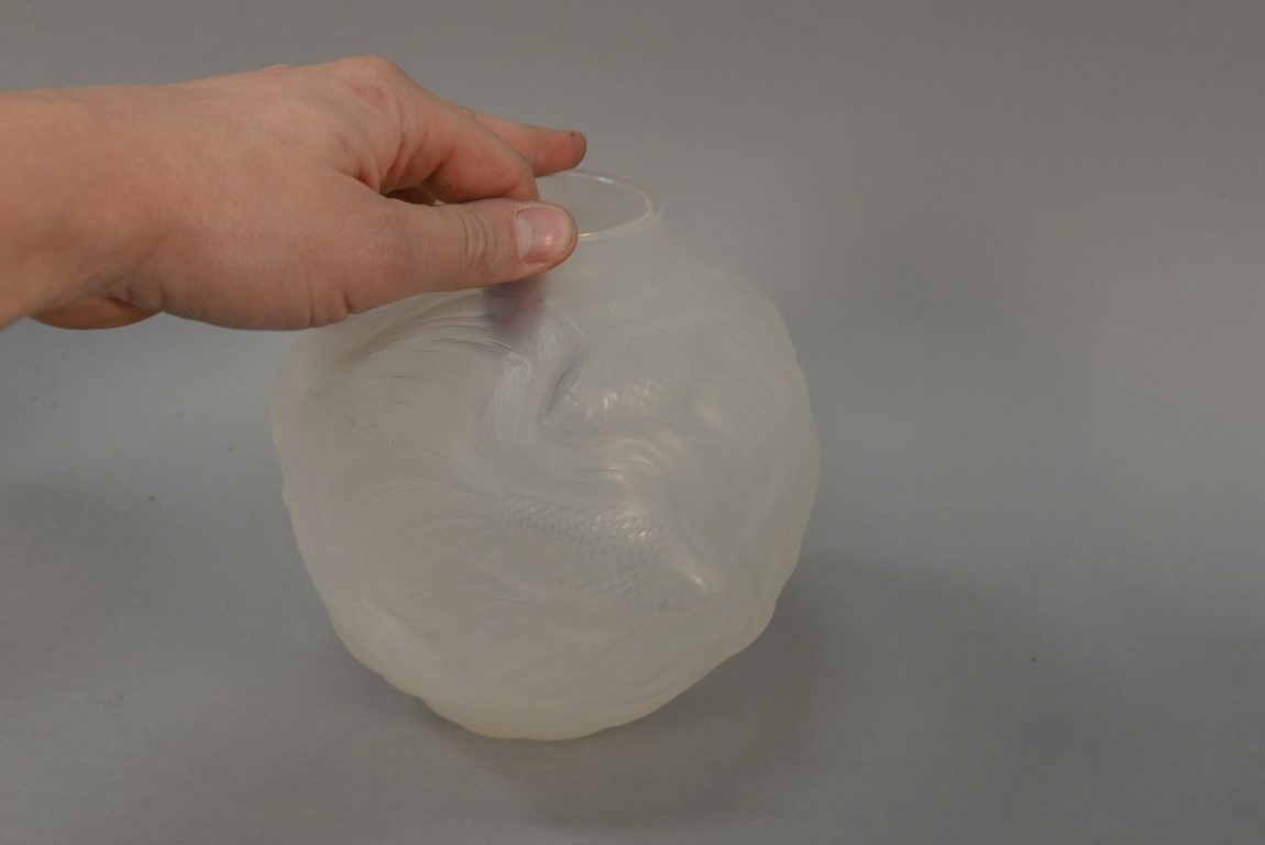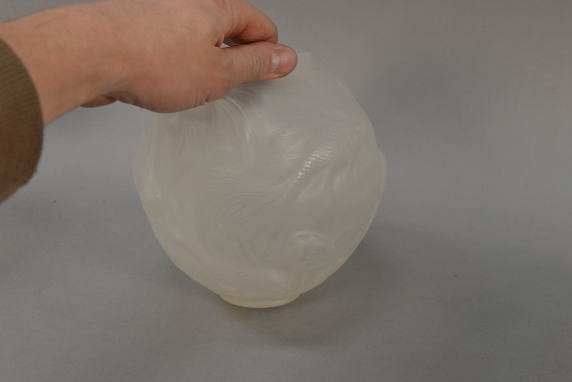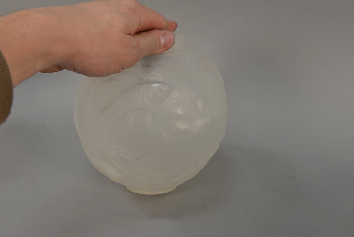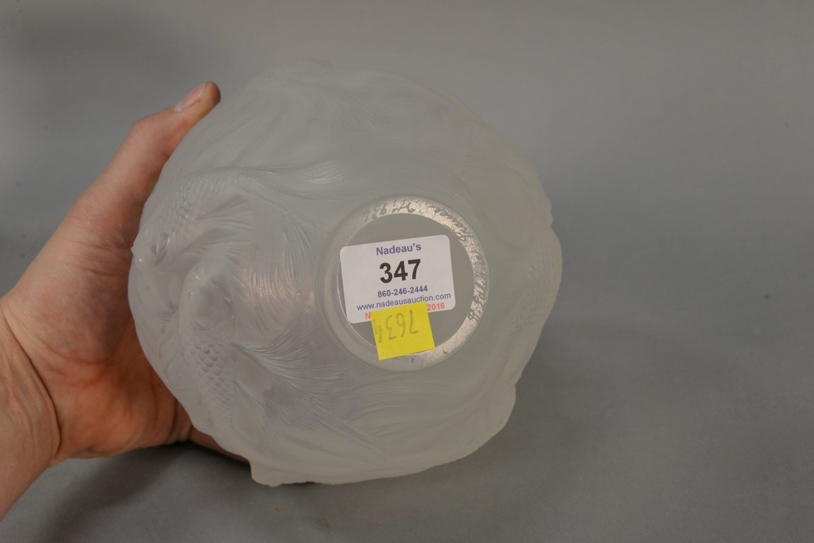 Lot 347: Lalique Formose frosted globular fish vase, signed R. Lalique in script. ht. 7 in. Provenance: Property from the Estate of S…