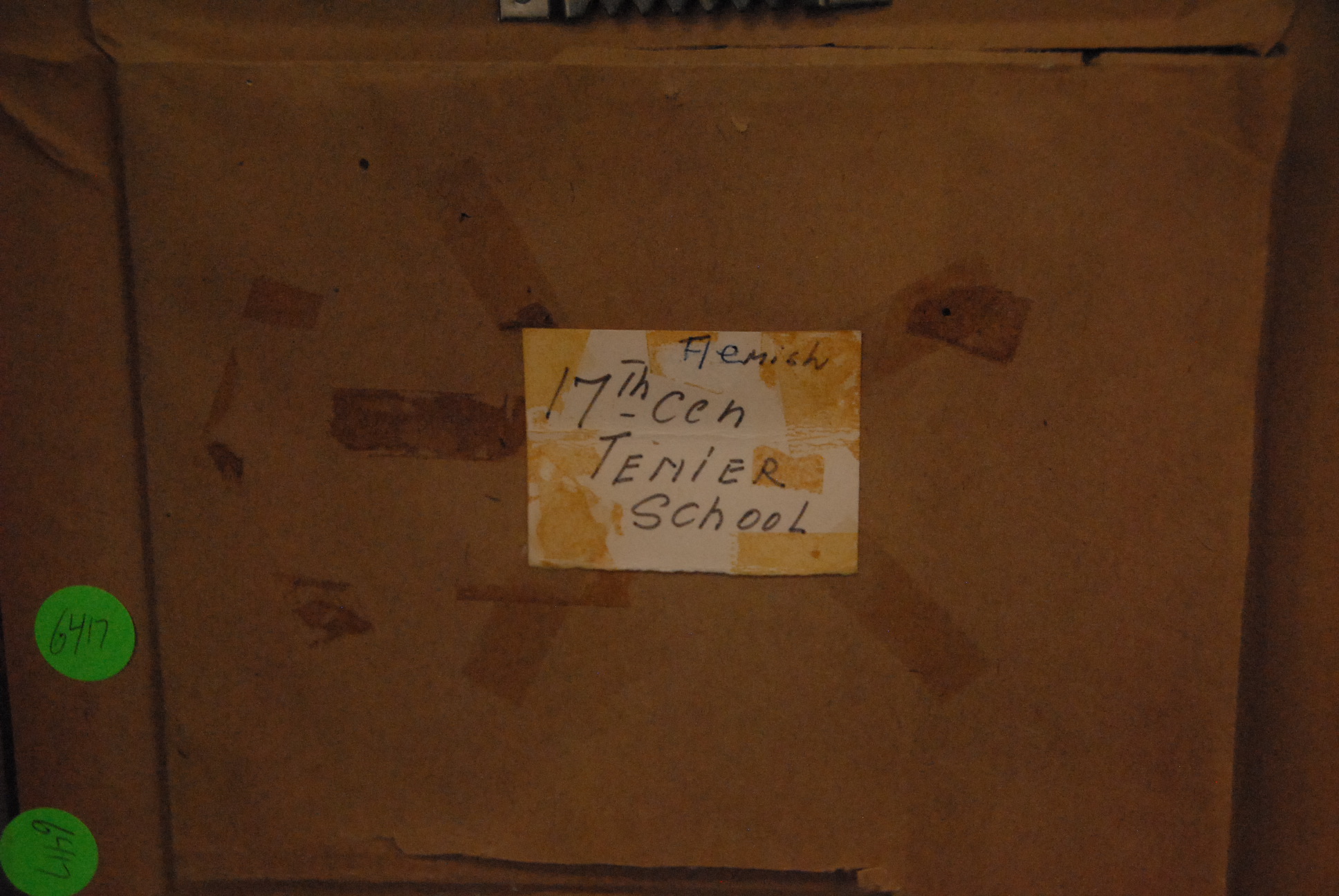 Lot 347: Oil on board of Continental School early town, unsigned, marked on reverse 17th Century Tenier School, possibly 19th century, 6 1/…