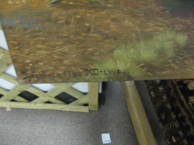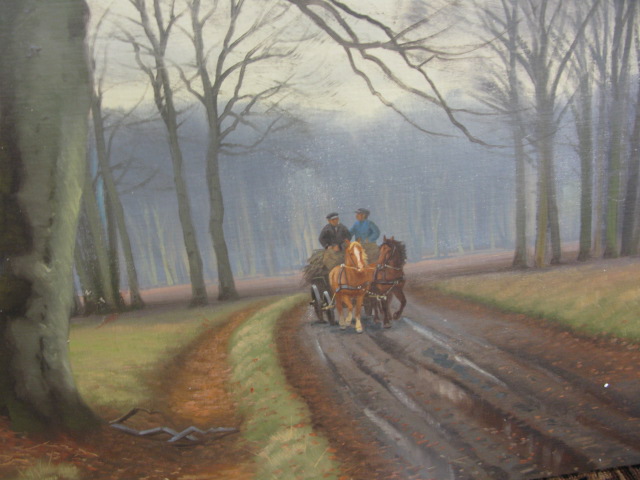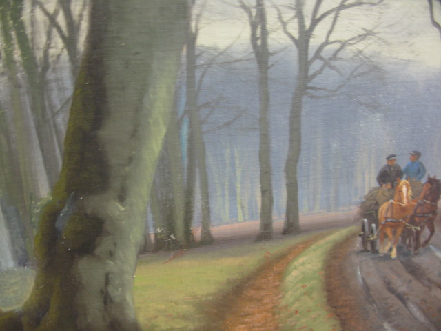 Oil on canvas of country road with horse drawn wagon signed Dravin and numbered194 KDREWS
