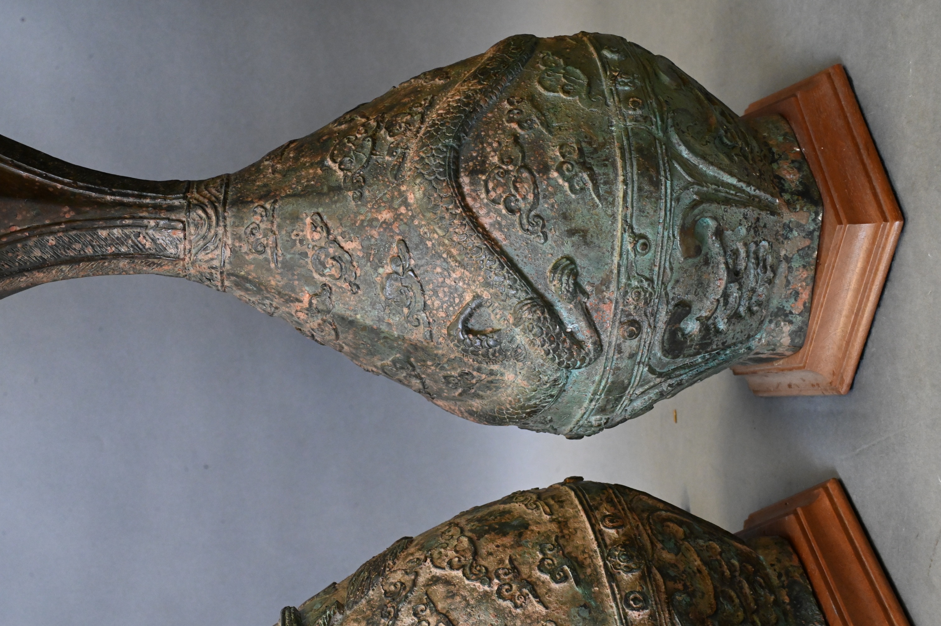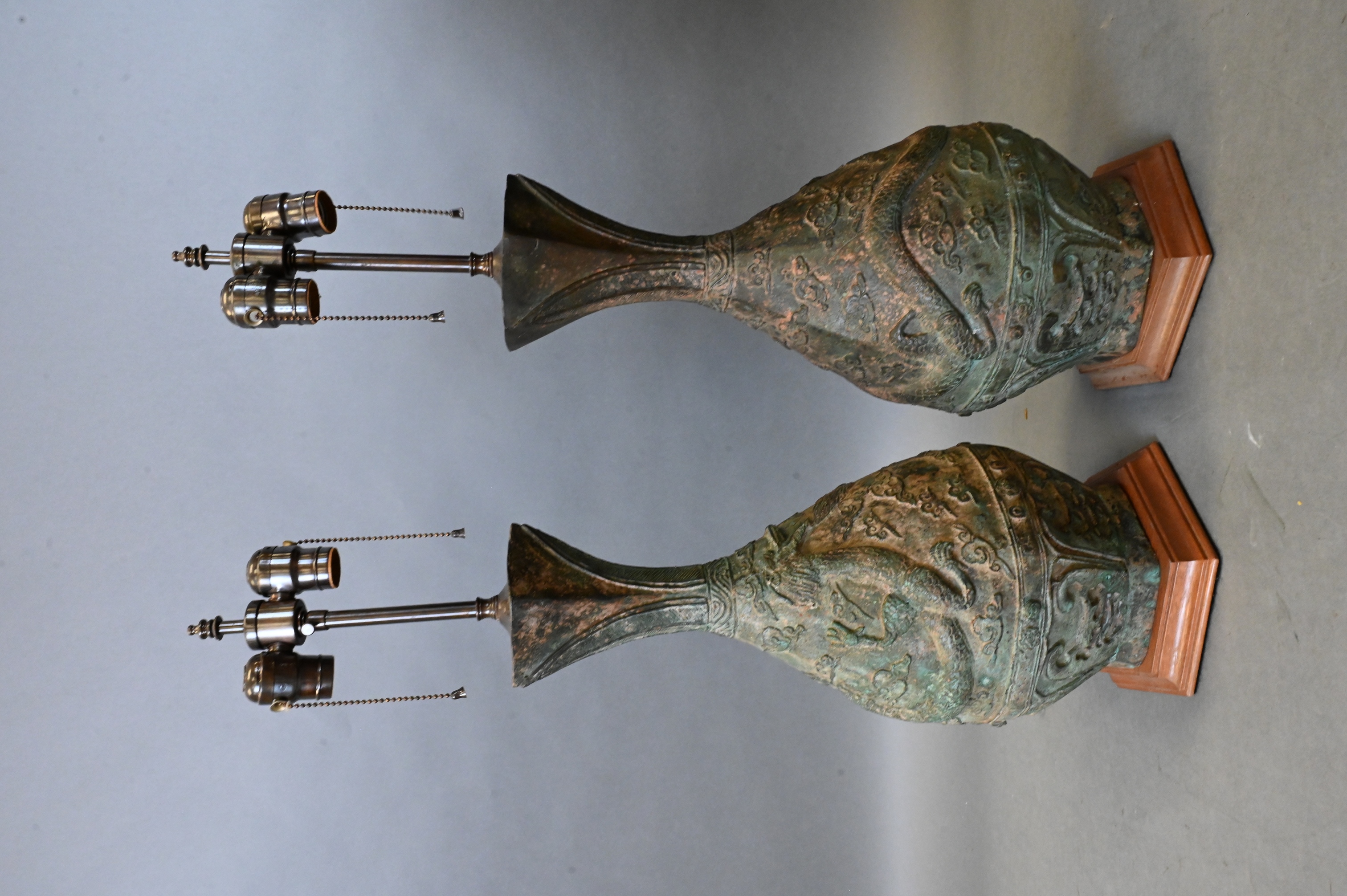 Pair of Archaic Style Chinese Bronze Vases Now Mounted as Table Lamps