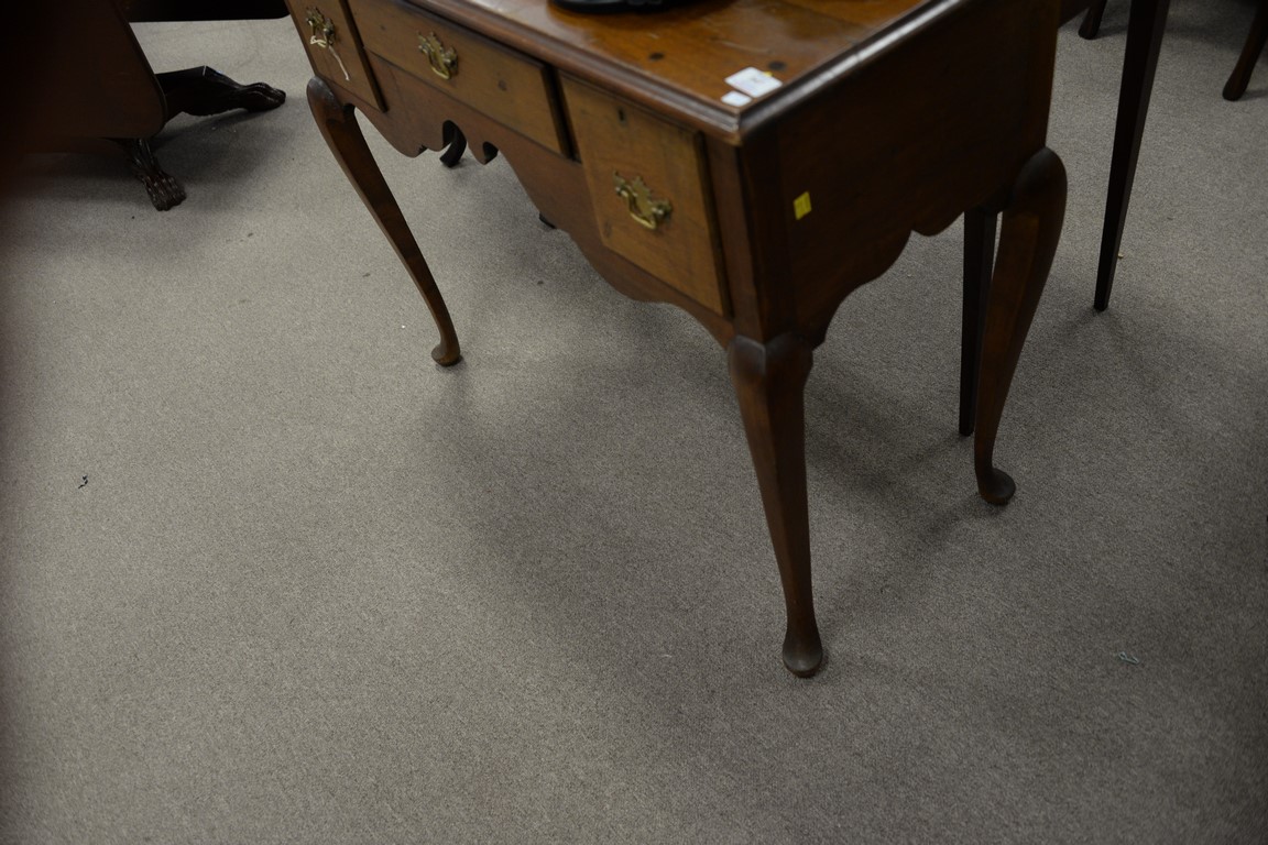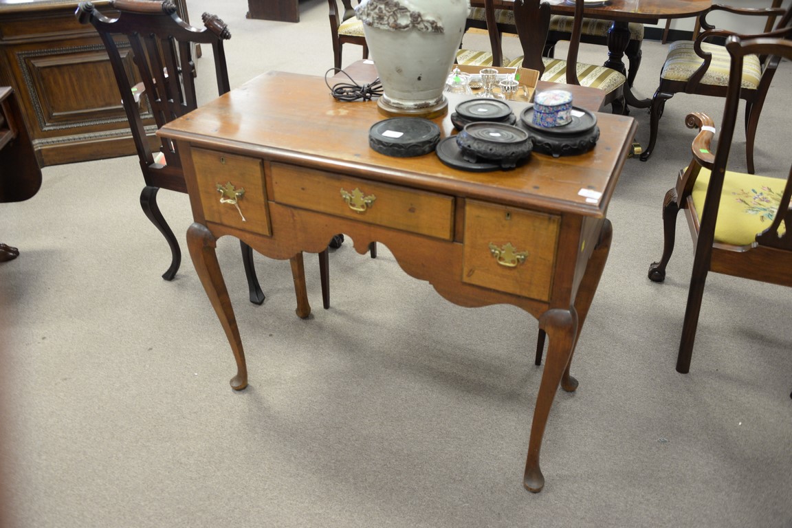 Lot 347: Queen Anne cherry three drawer dressing table made up of old parts. ht. 33 1/2in., lg. 40in.