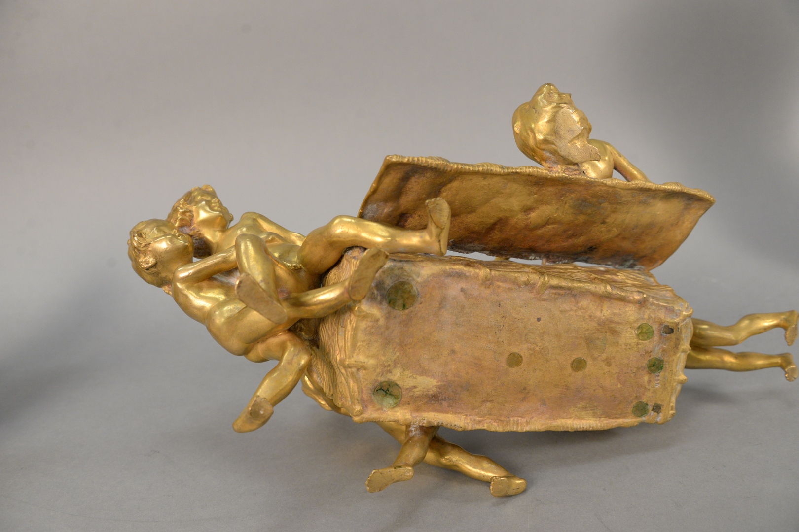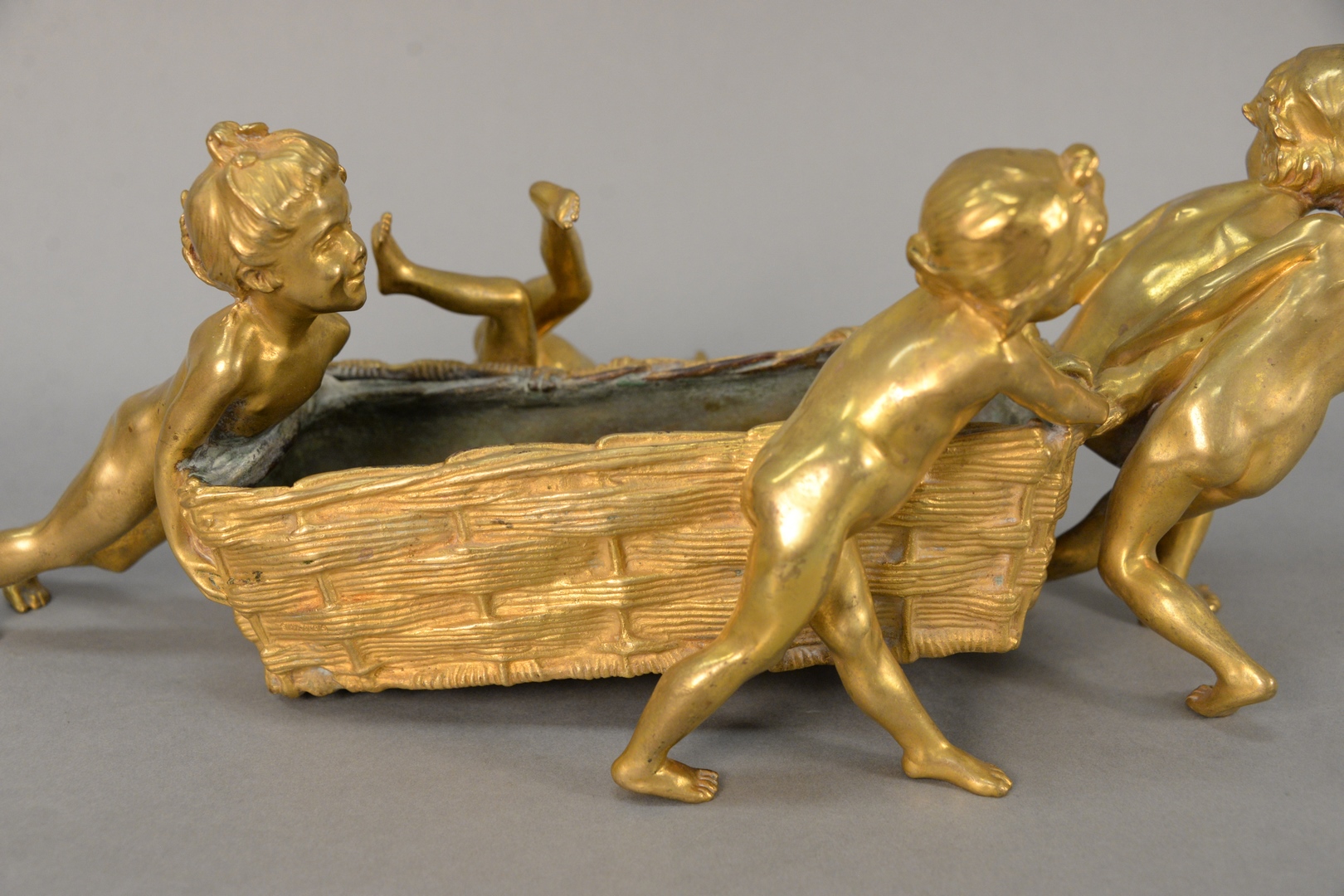 French gilt bronze figural table flower basket, depicting children pushing and pulling the basket, inscribed Raoul Larch Siot-Paris foundry mark, numbered 820 on bottom