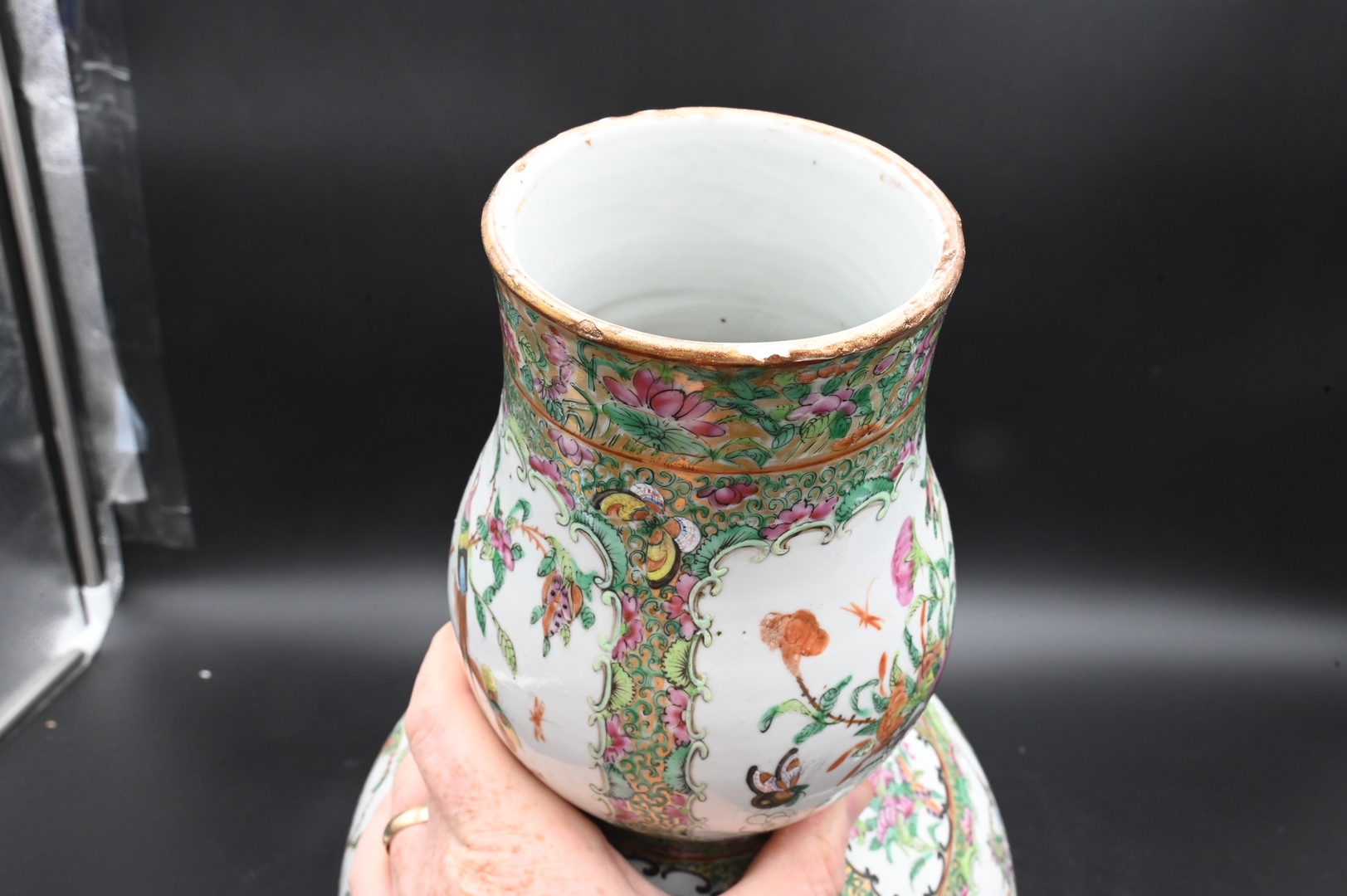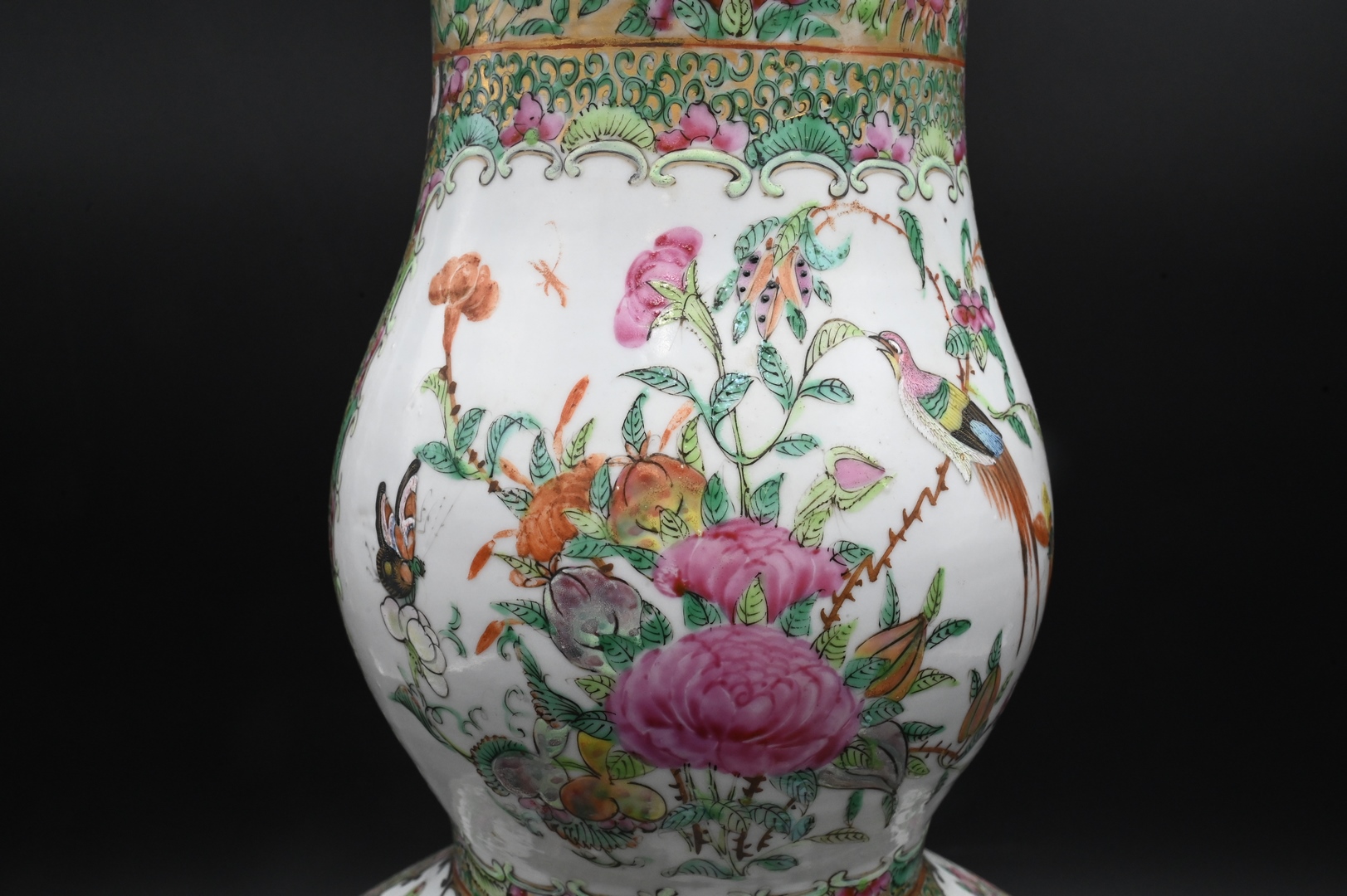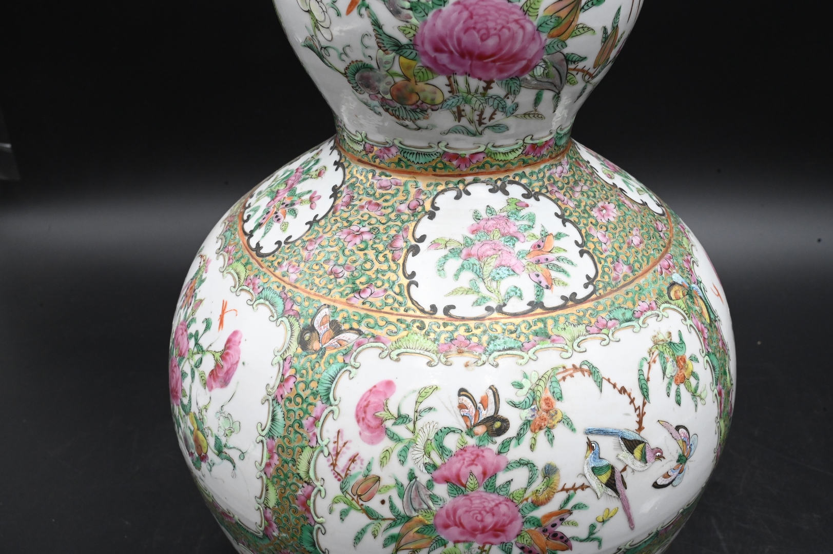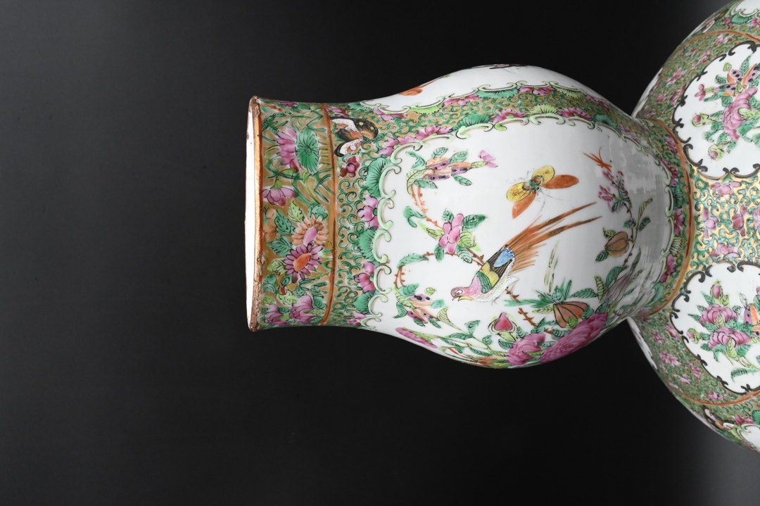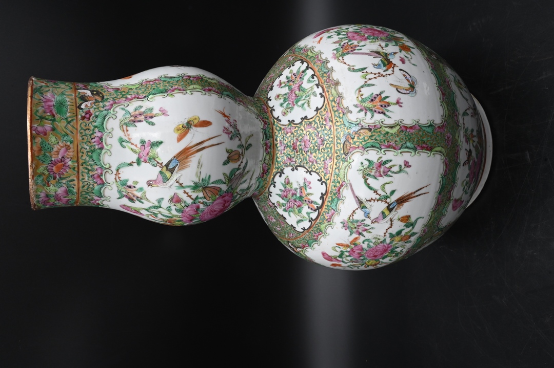 Rose Medallion Double Gourd Vase, probably 19th century, drilled, height 15 1/4 inches.