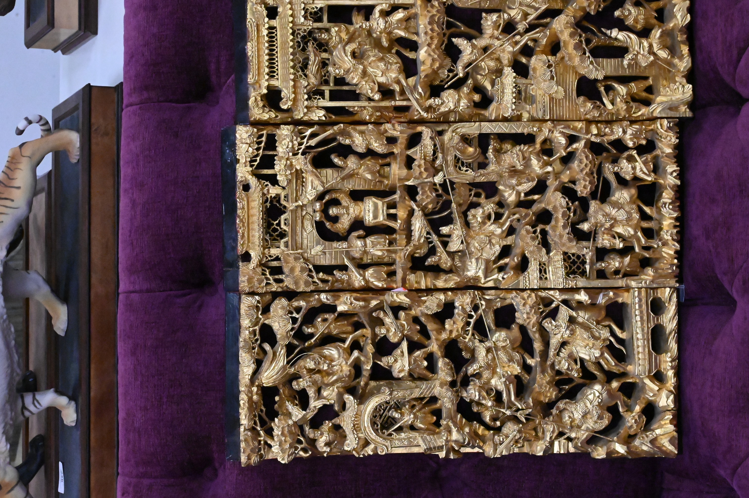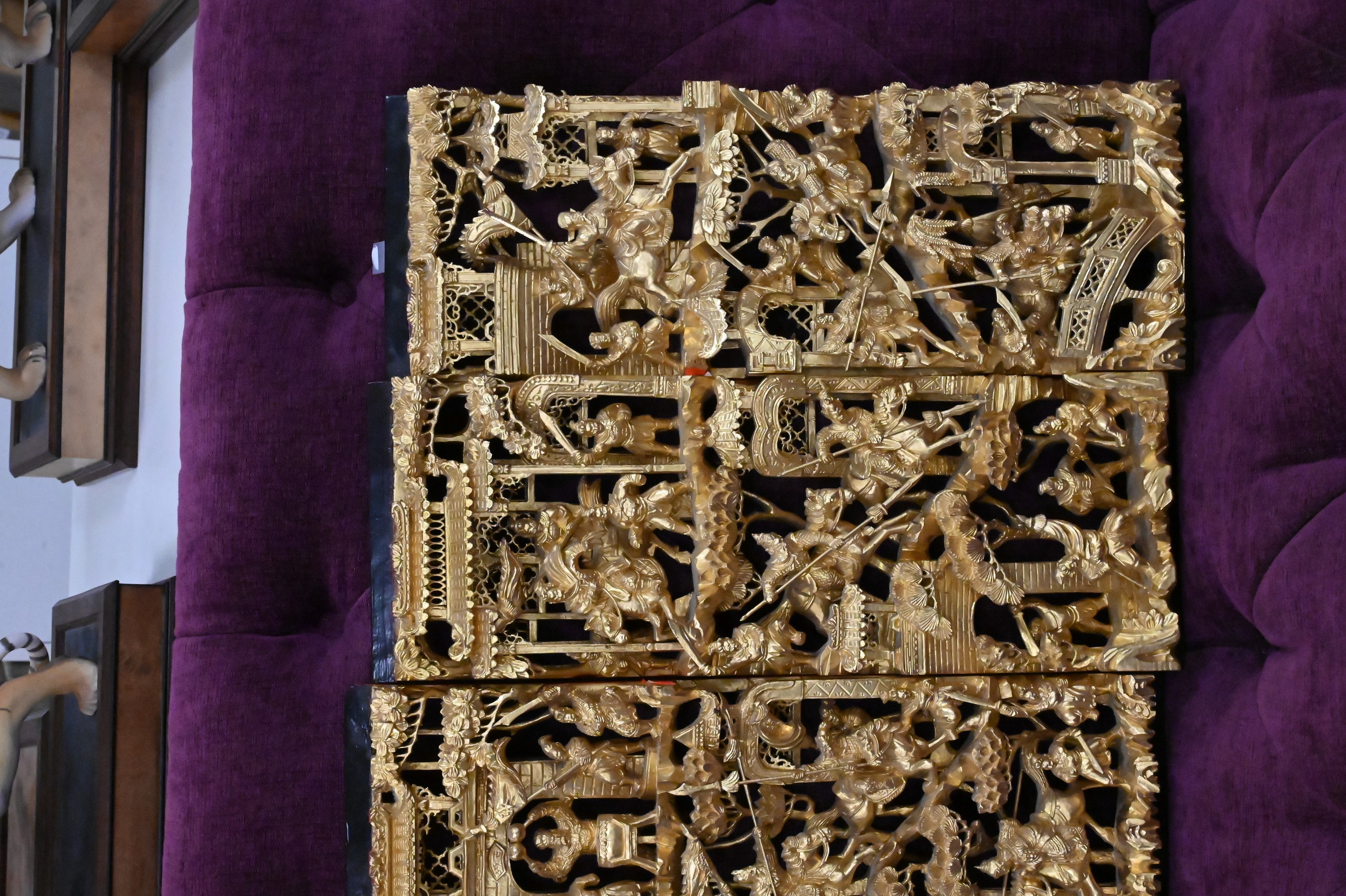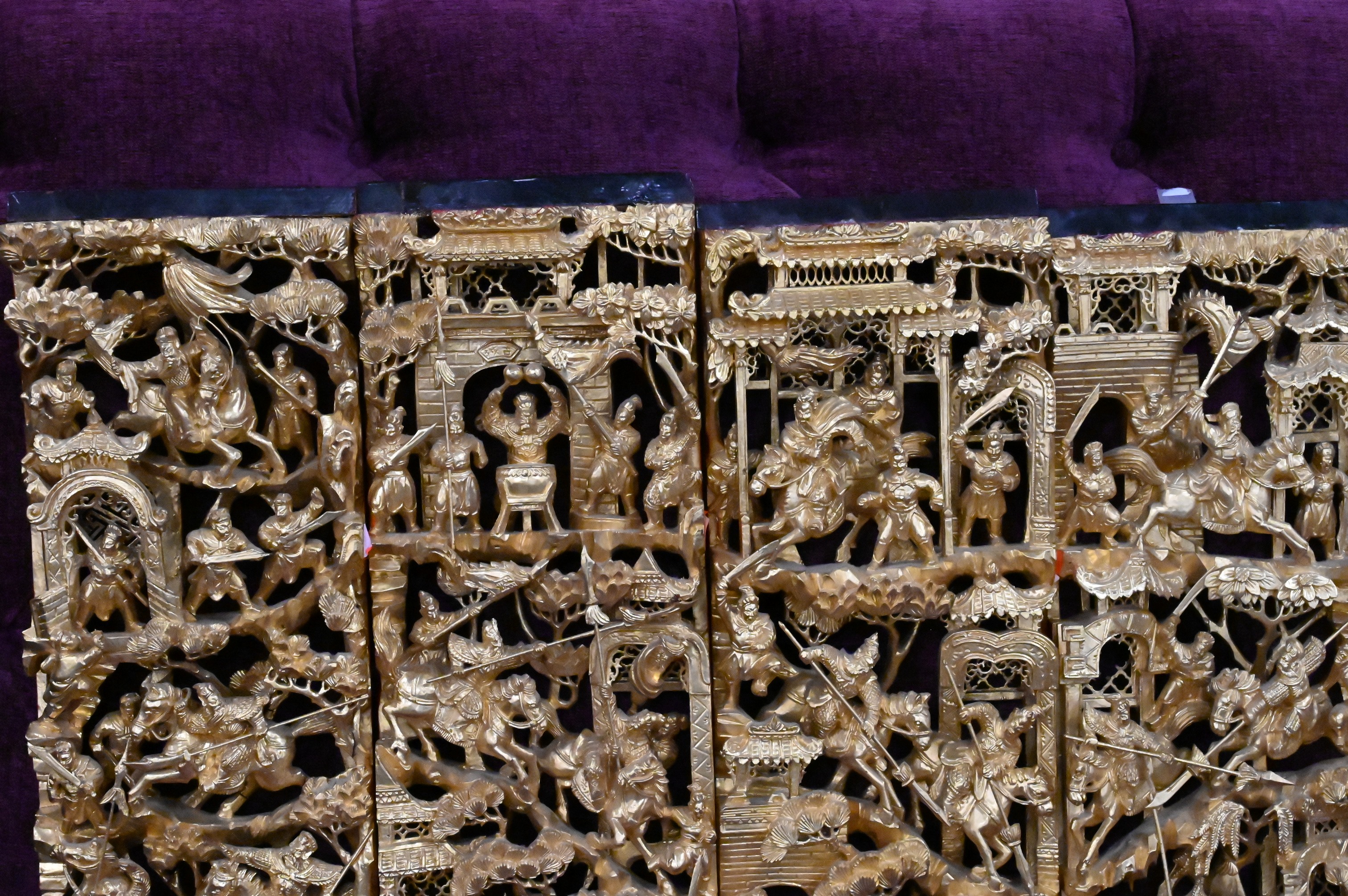 Lot 347: Set of Four Red Lacquered and Giltwood Chinese Panels