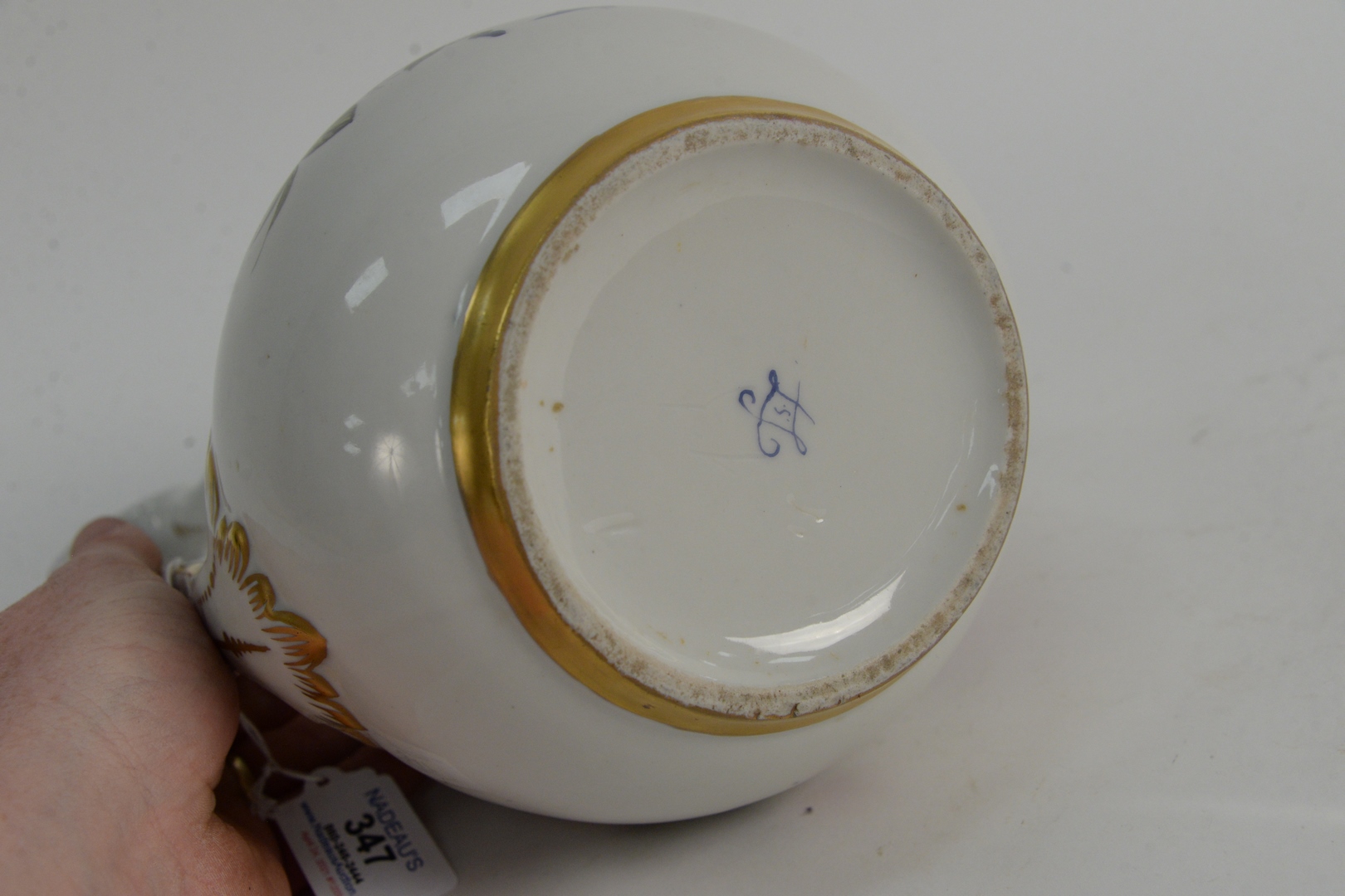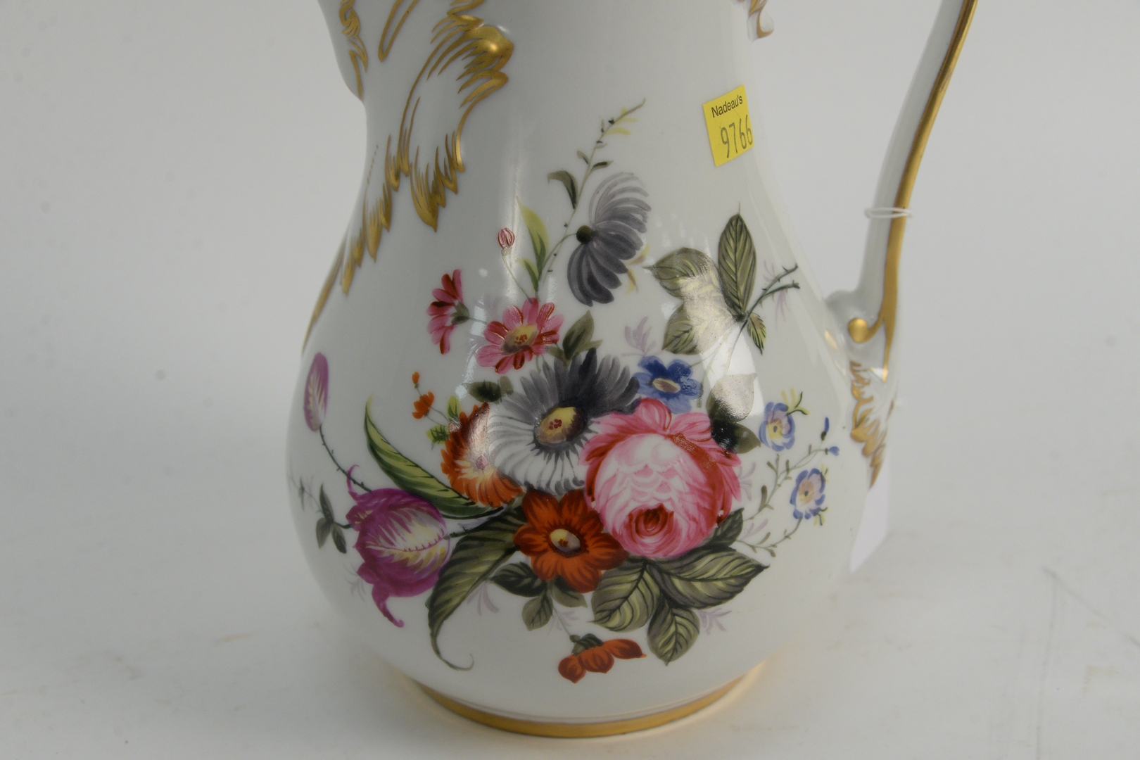 Sevres Porcelain Pitcher having painted flowers and gilt decoration, height 10 inches.