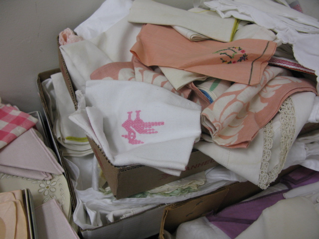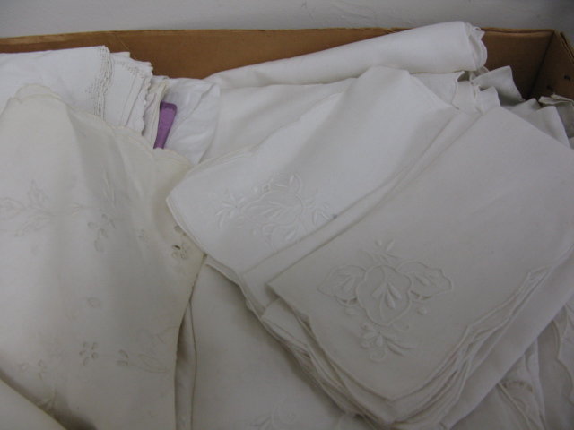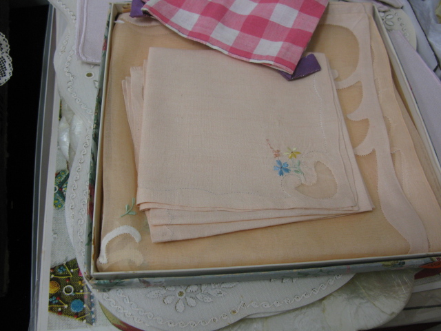 Six box lots, including a tea set,table linens, table mats.