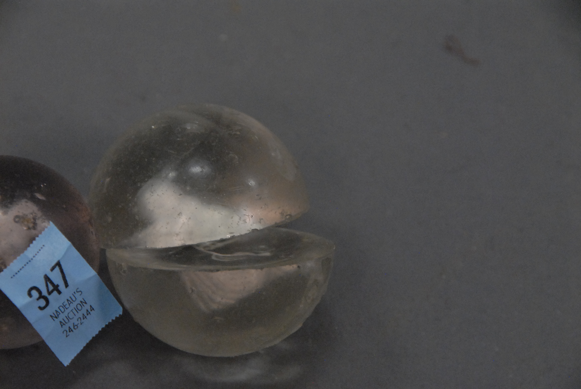 Three sulfite marbles as is – foggy eagle, baby with girl broken in half, and monkey.
