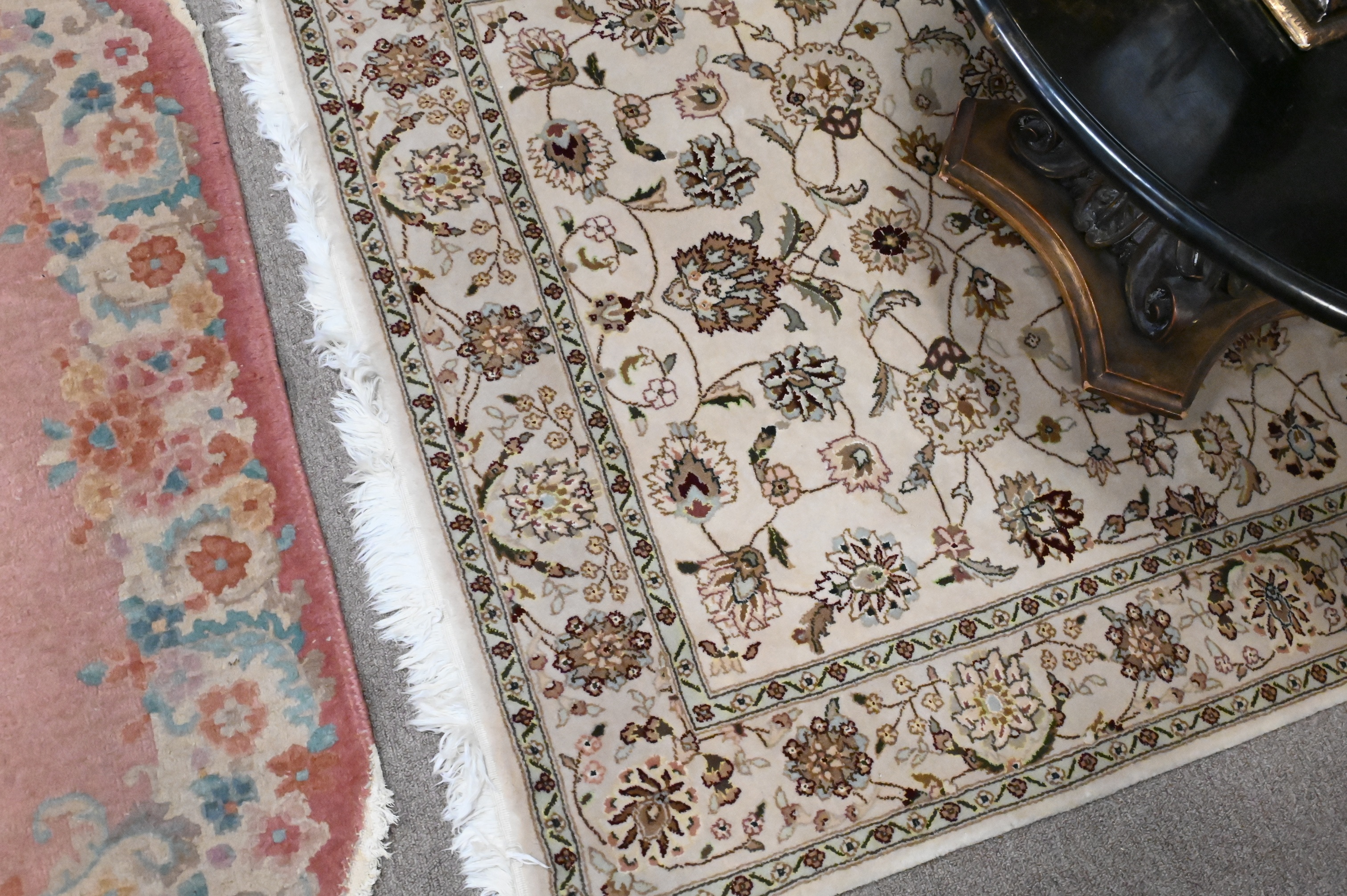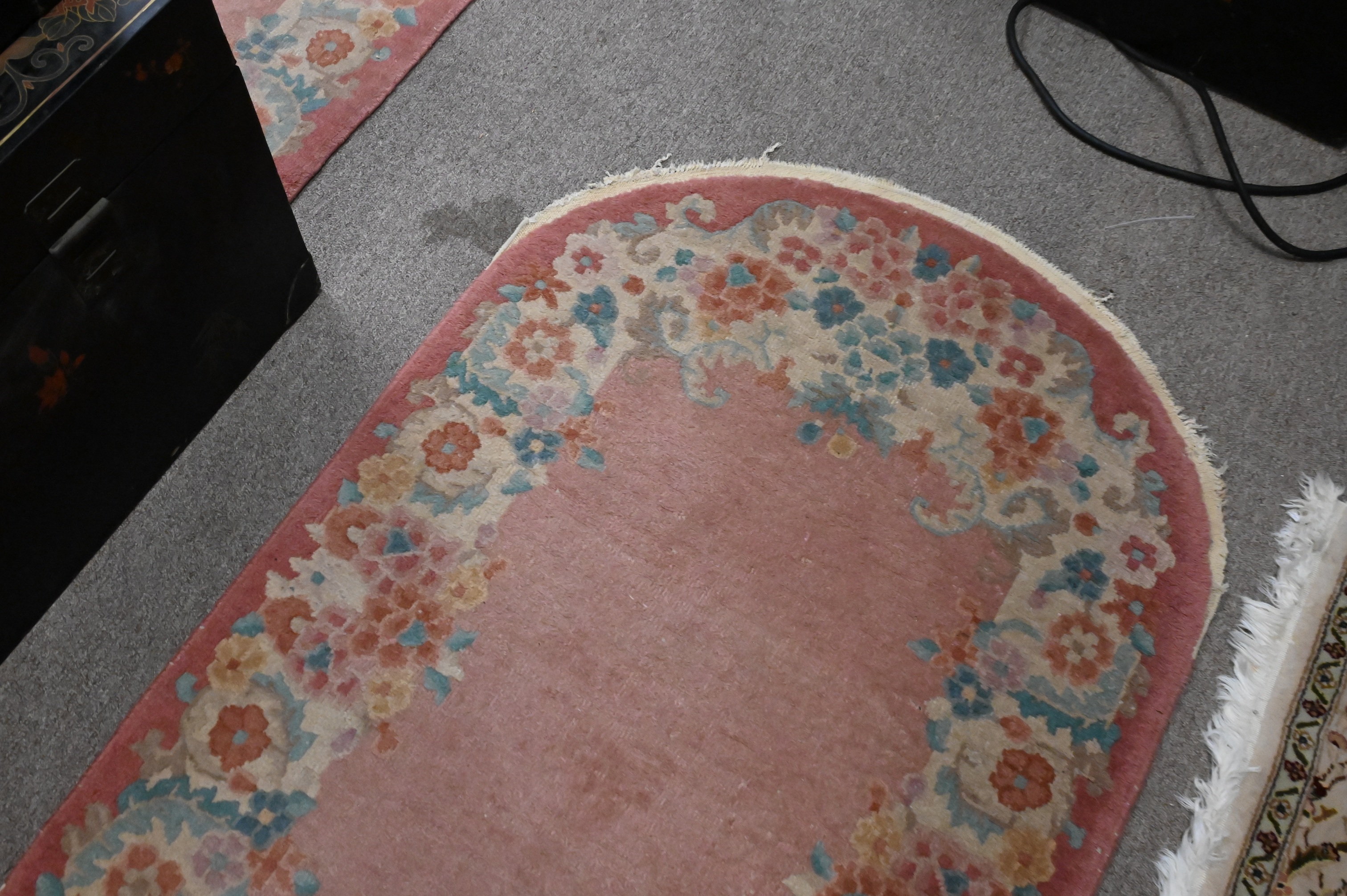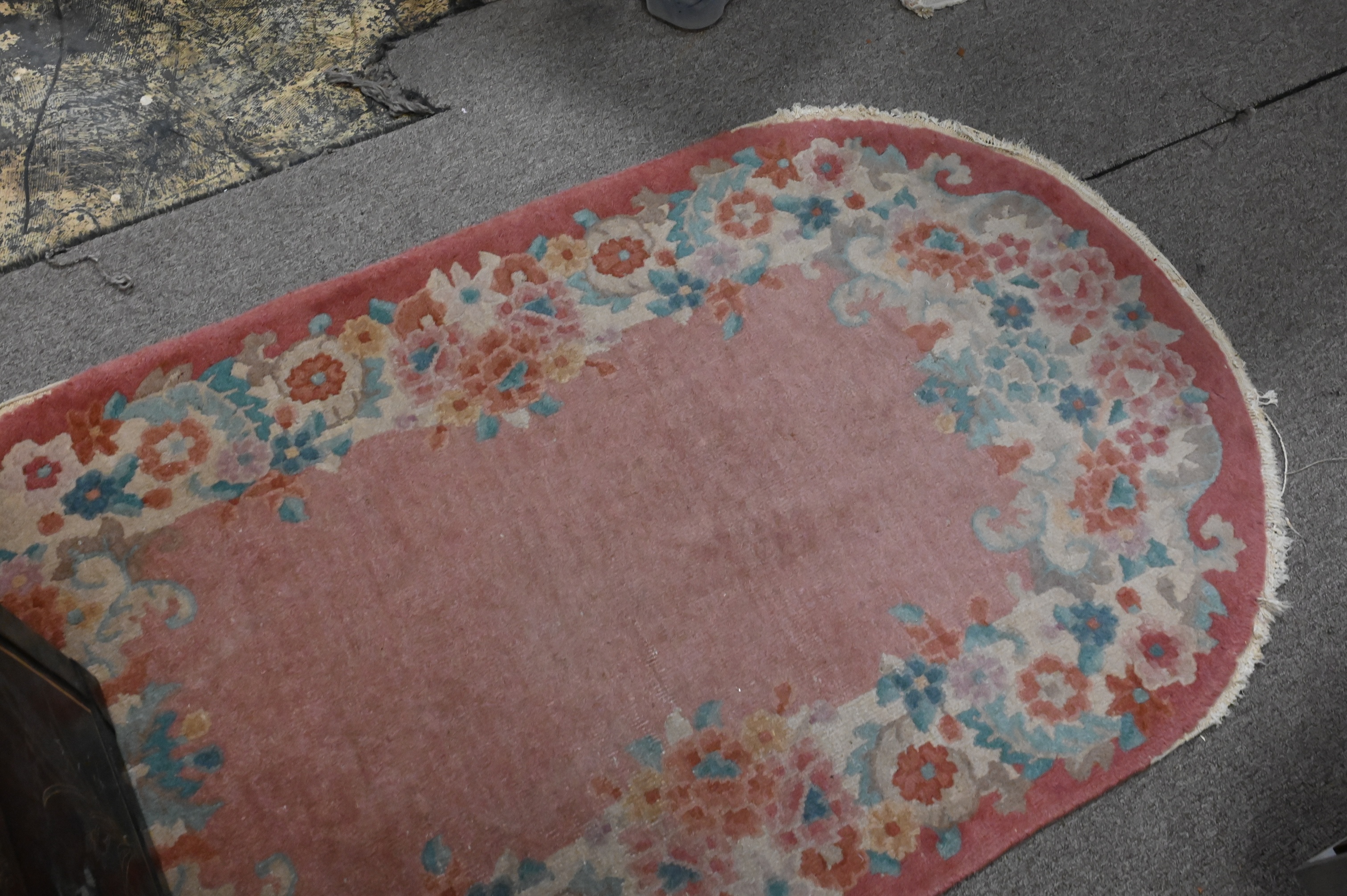 to include a pair of oval Chinese Nichols 2′ 6″ x 4′ 4″ along with 3′ 9″ x 4′ 9″ handmade Agru oriental rug