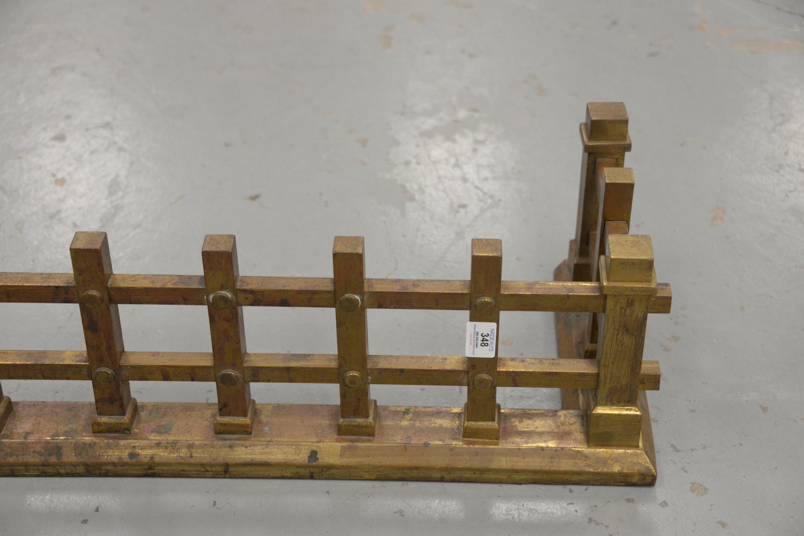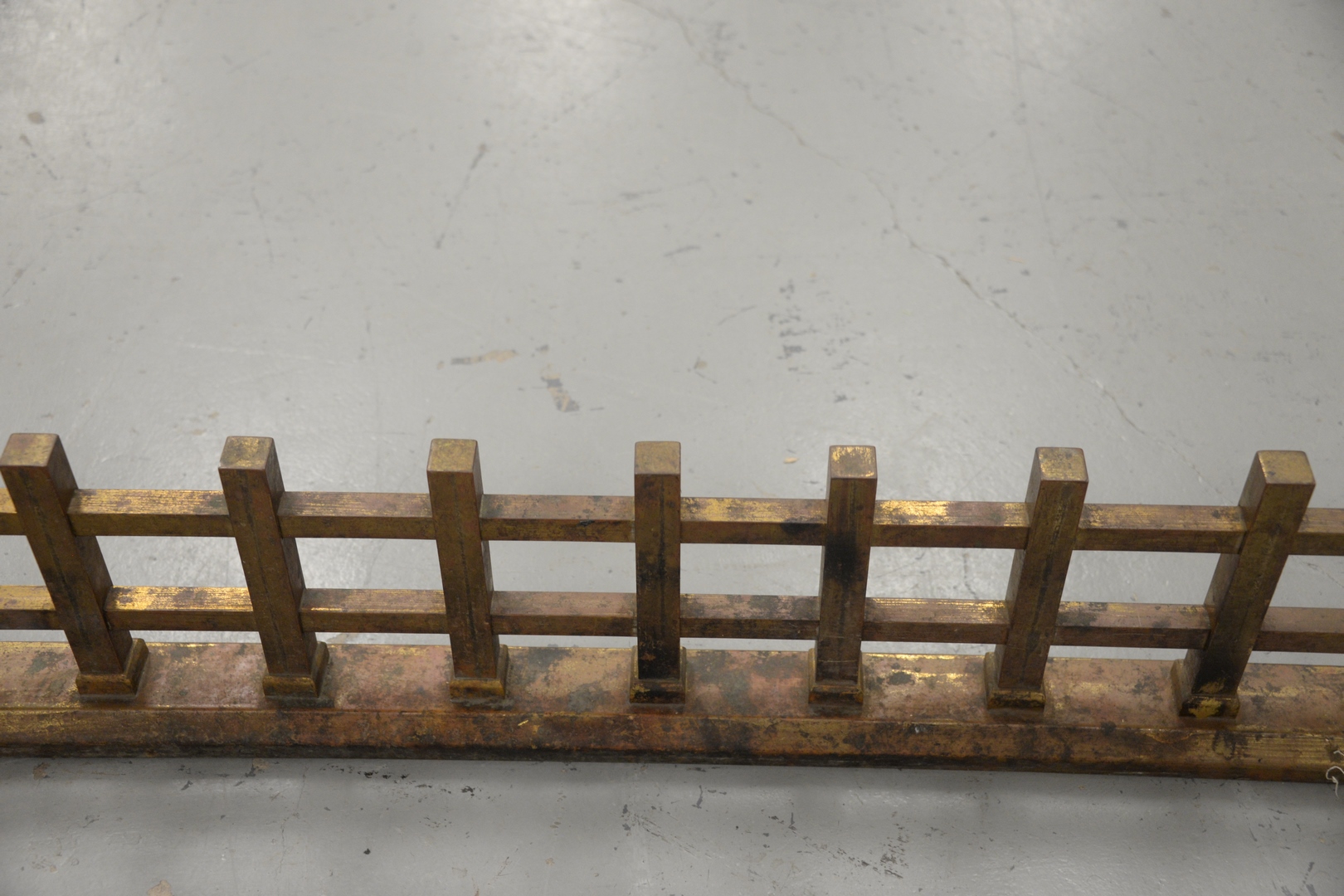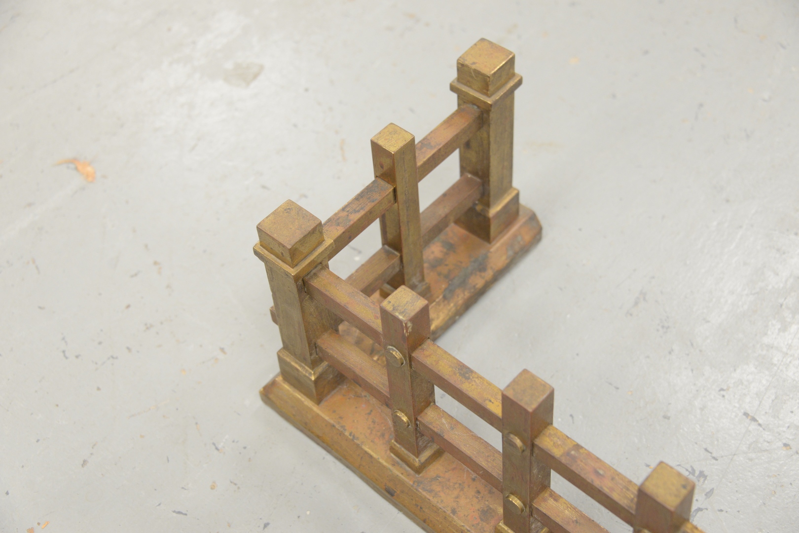 Brass Arts and Crafts Fire Fender, height 9 1/4 inches, width 60 inches.