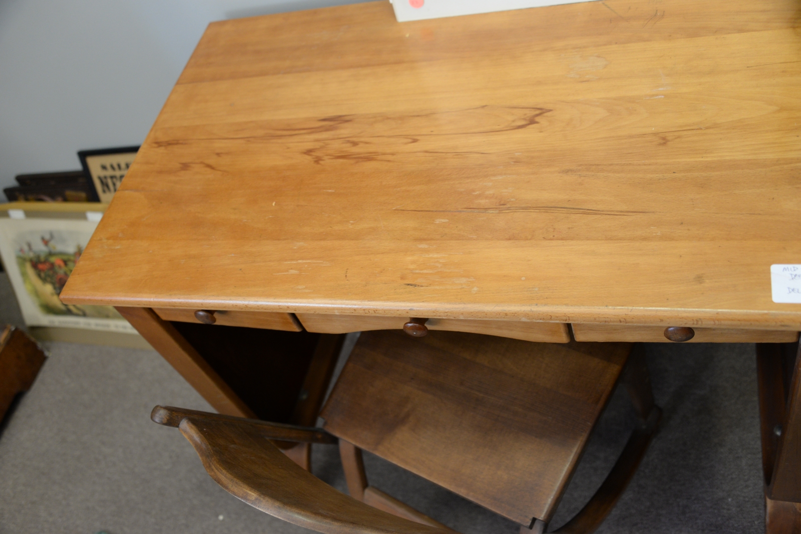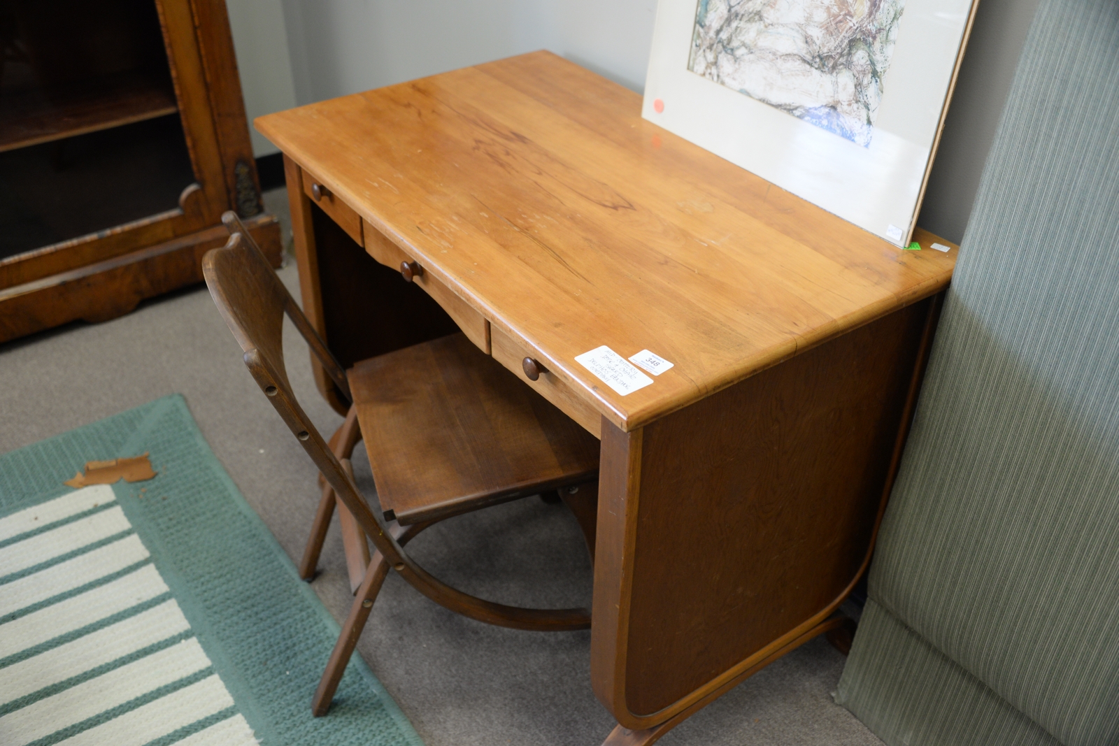 Early Mid-Century child’s desk and chair, Delphos Bending Co. ht. 27in., wd. 54in., dp. 20in.