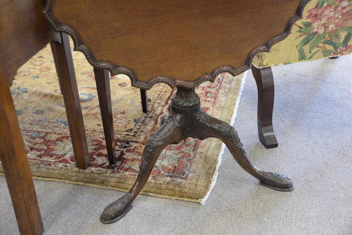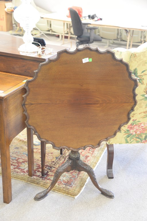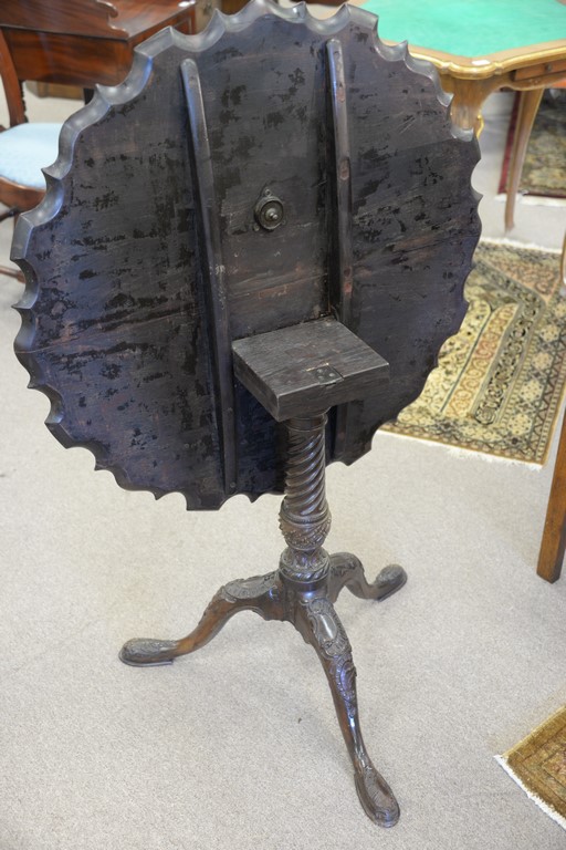 Georgian mahogany pie crust tip table with carved base, 18th century. dia. 32in.