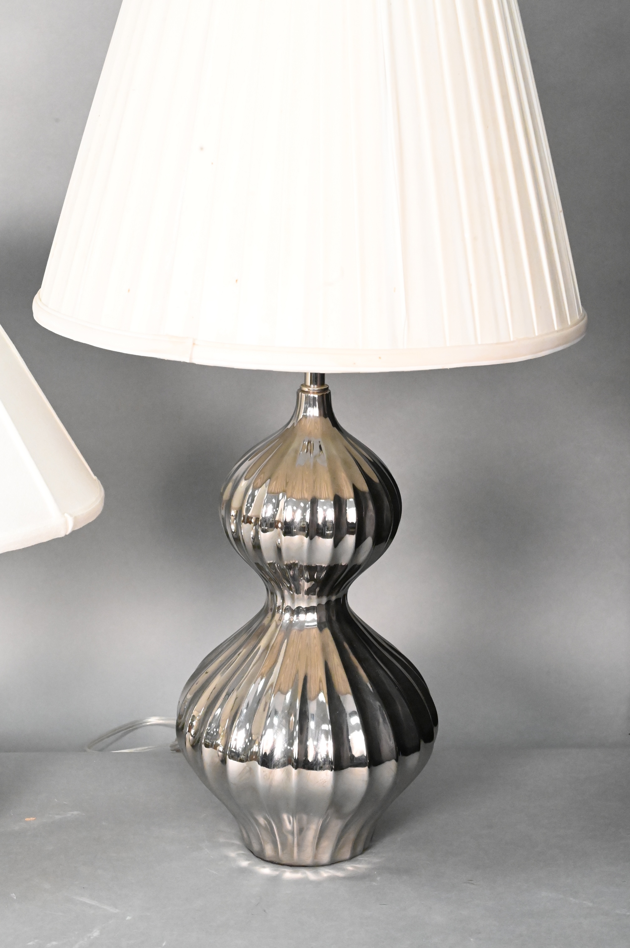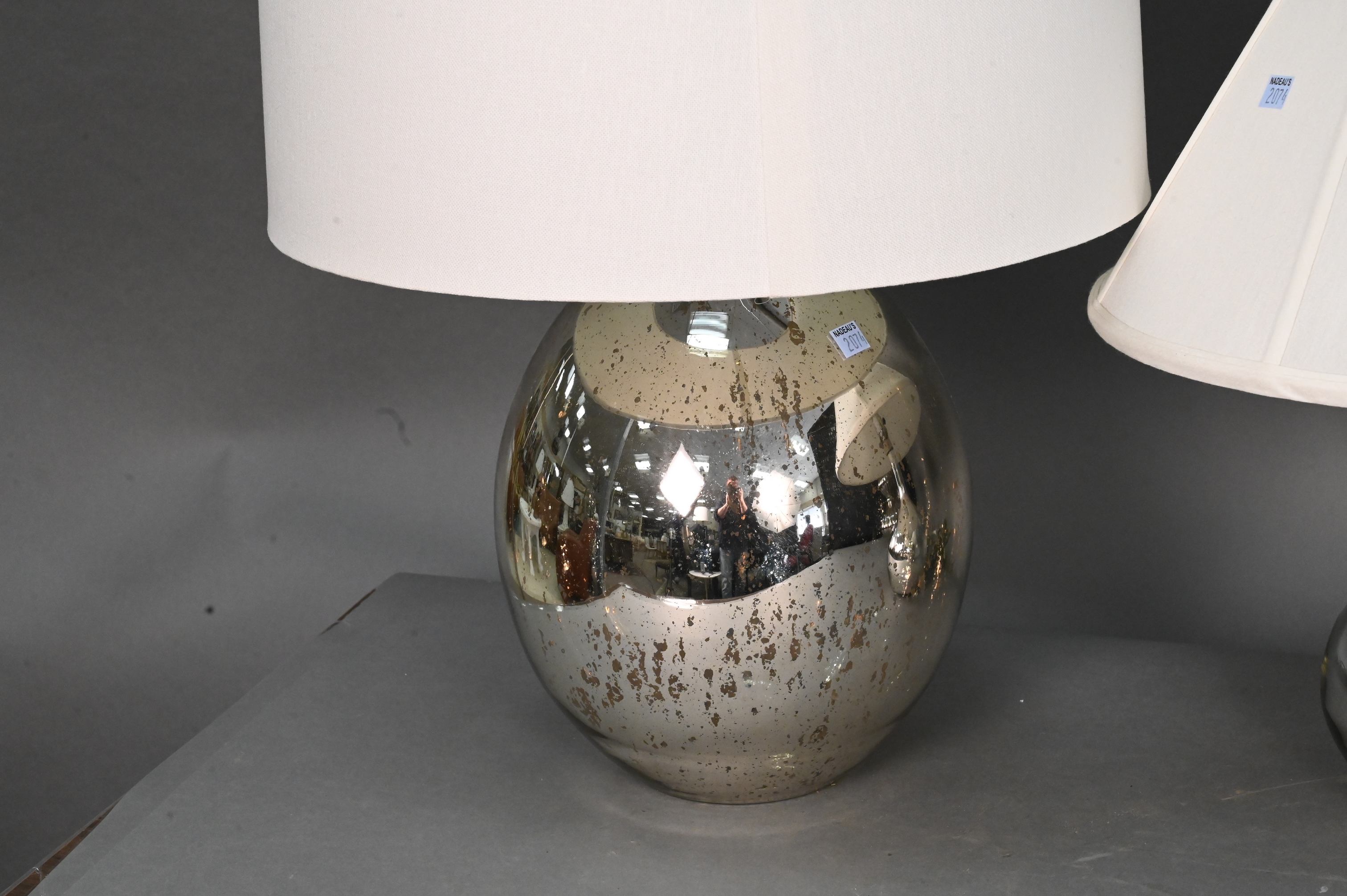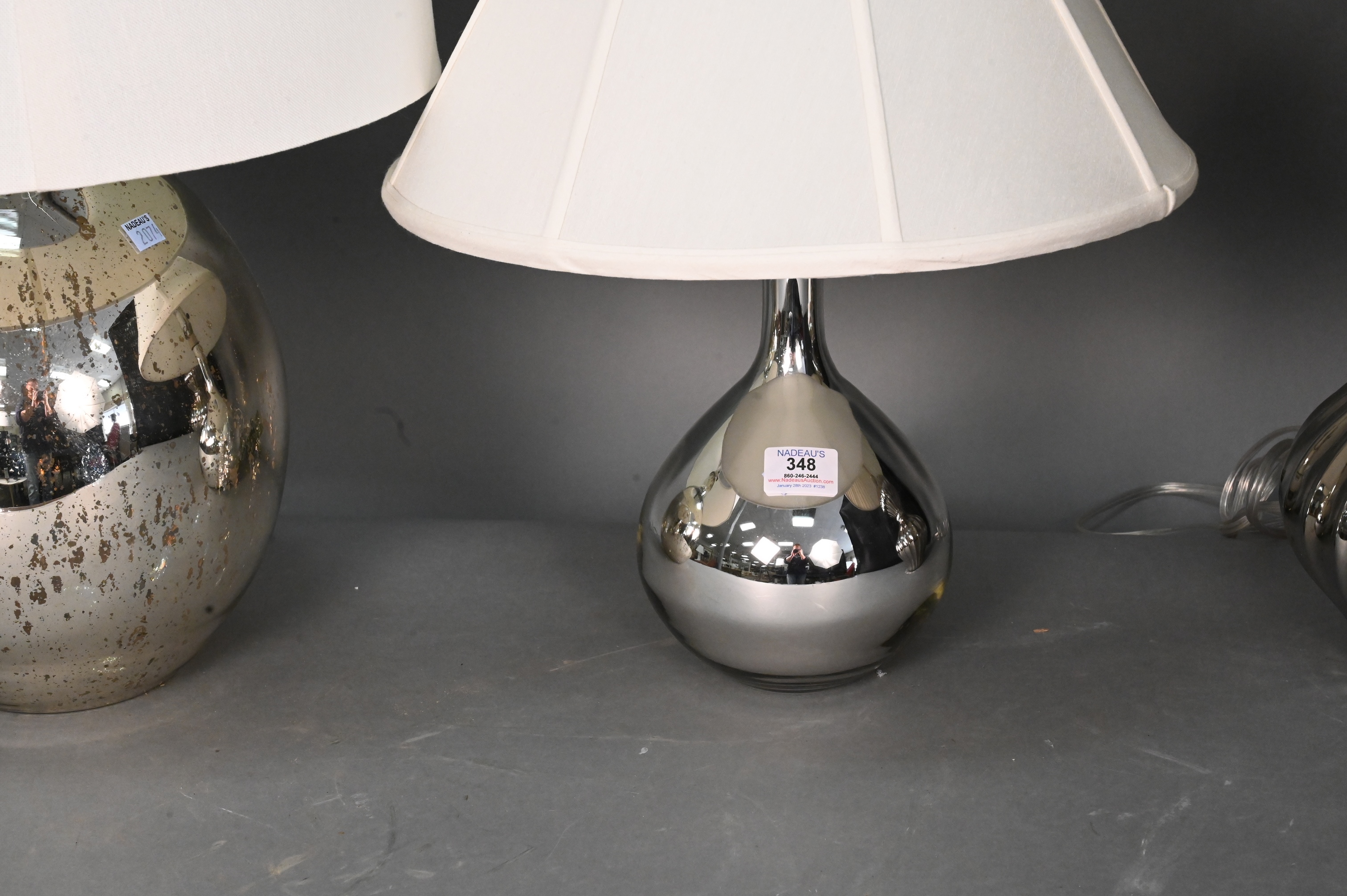 Group of Three Contemporary Table Lamps, two having mirrored glass , along with one having mirrored ceramic, tallest 29 inches.