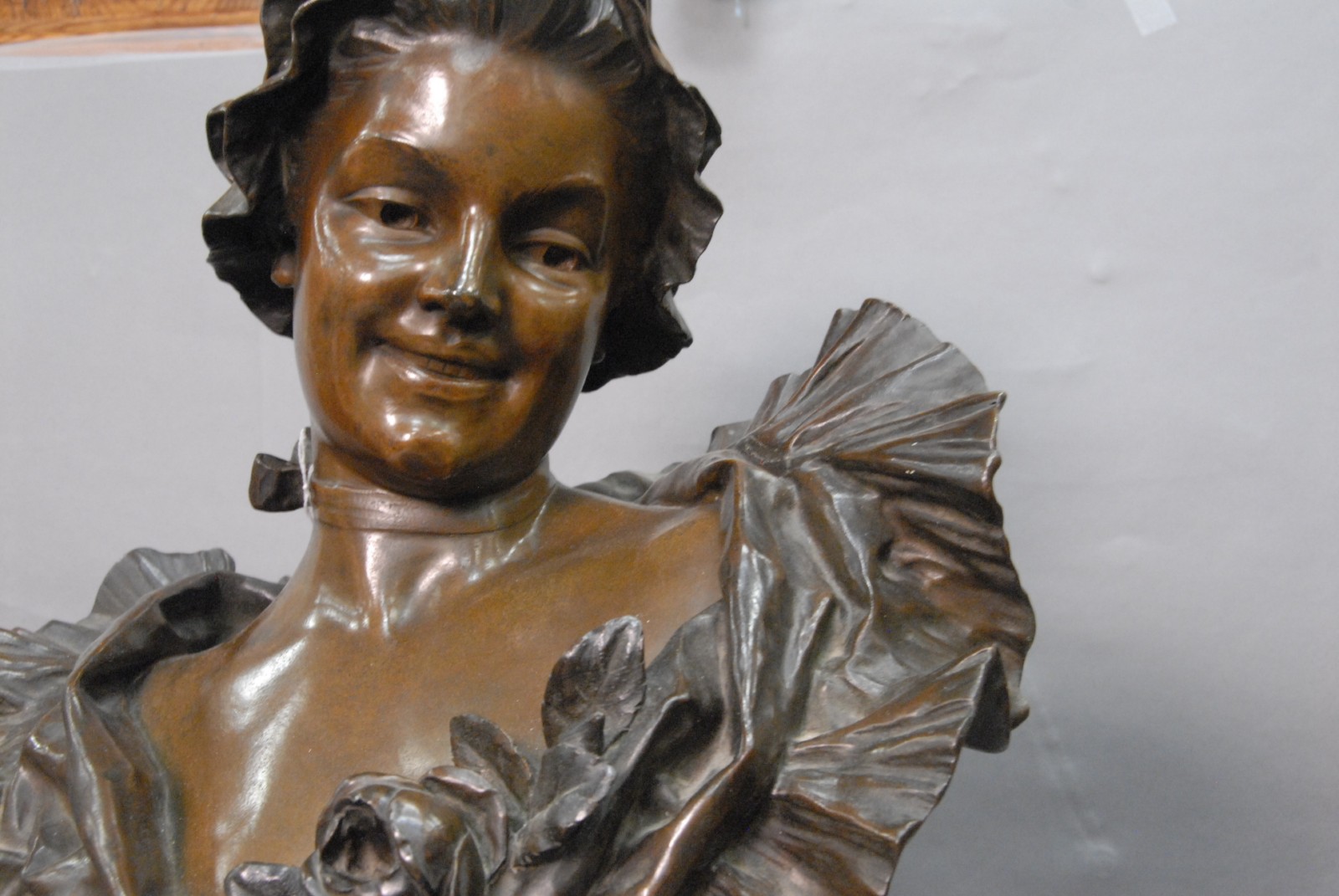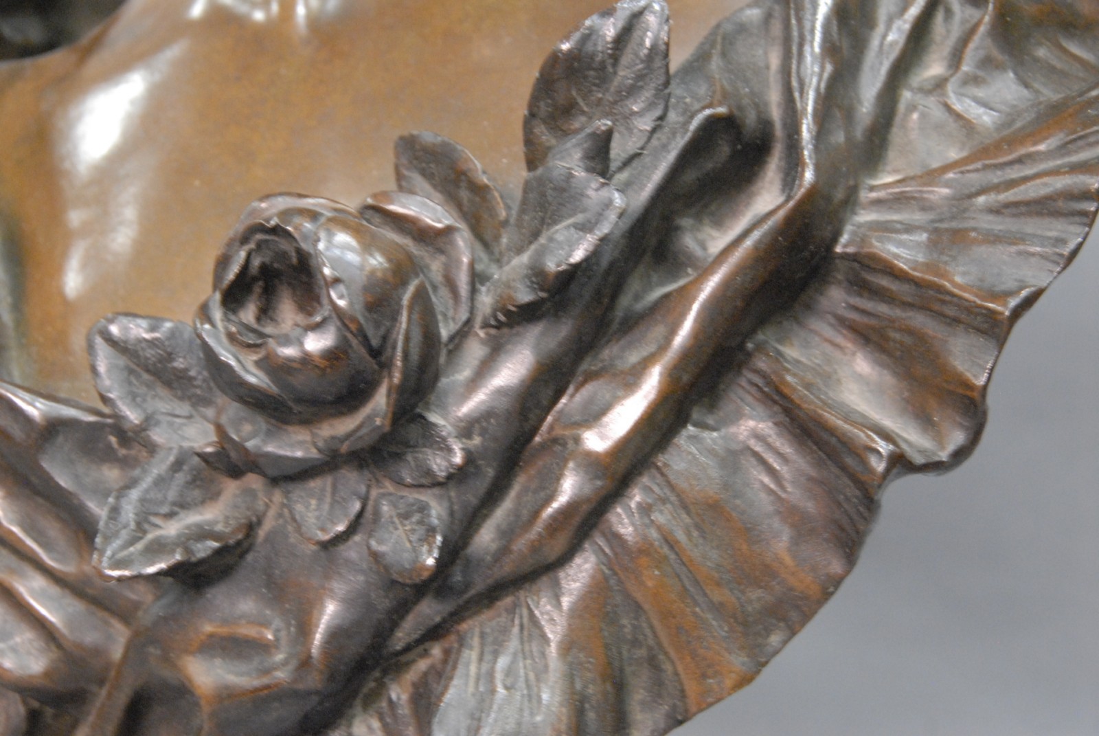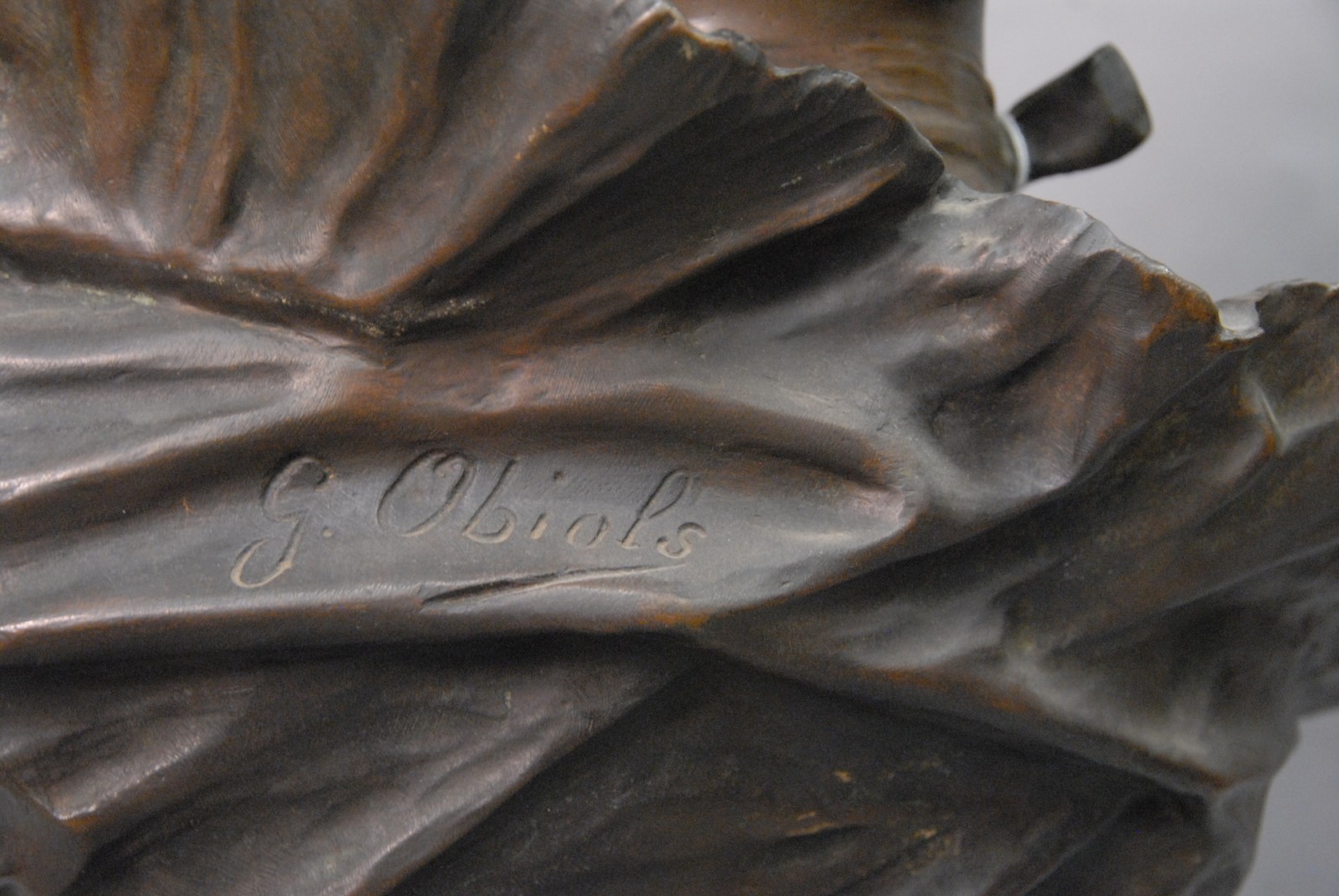 Gustavo Obiols Delgado 1858 – 1910 PREMIER ES ROSES bronze titled on plaque signed on shoulder G. Obiols and on base Modele.