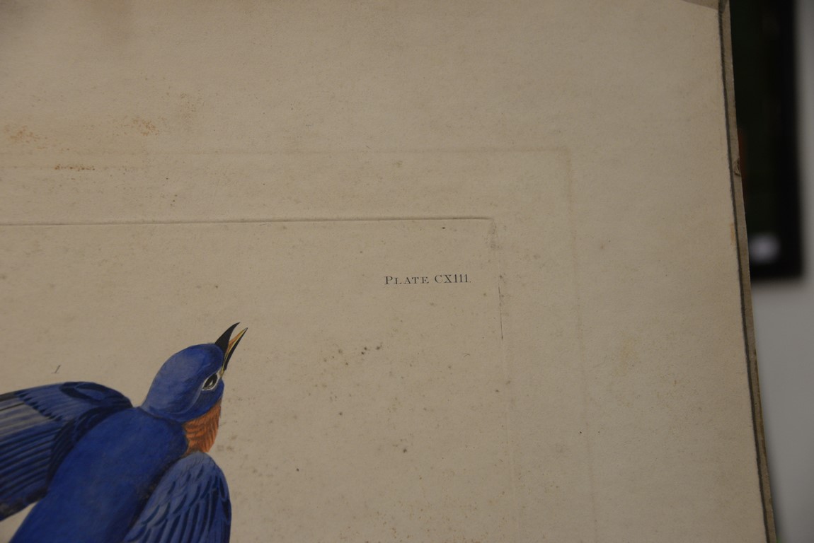 Lot 348: JOHN JAMES AUDUBON 1785-1851 Blue-Bird plate CXIII No. 23 hand colored engraving Drawn from Nature by J. J. Audubon FRS,ELS, Engraved, Printed, and Coloured by R. Havell, London 1831, Blue-Bird SYLVIA SIALIS