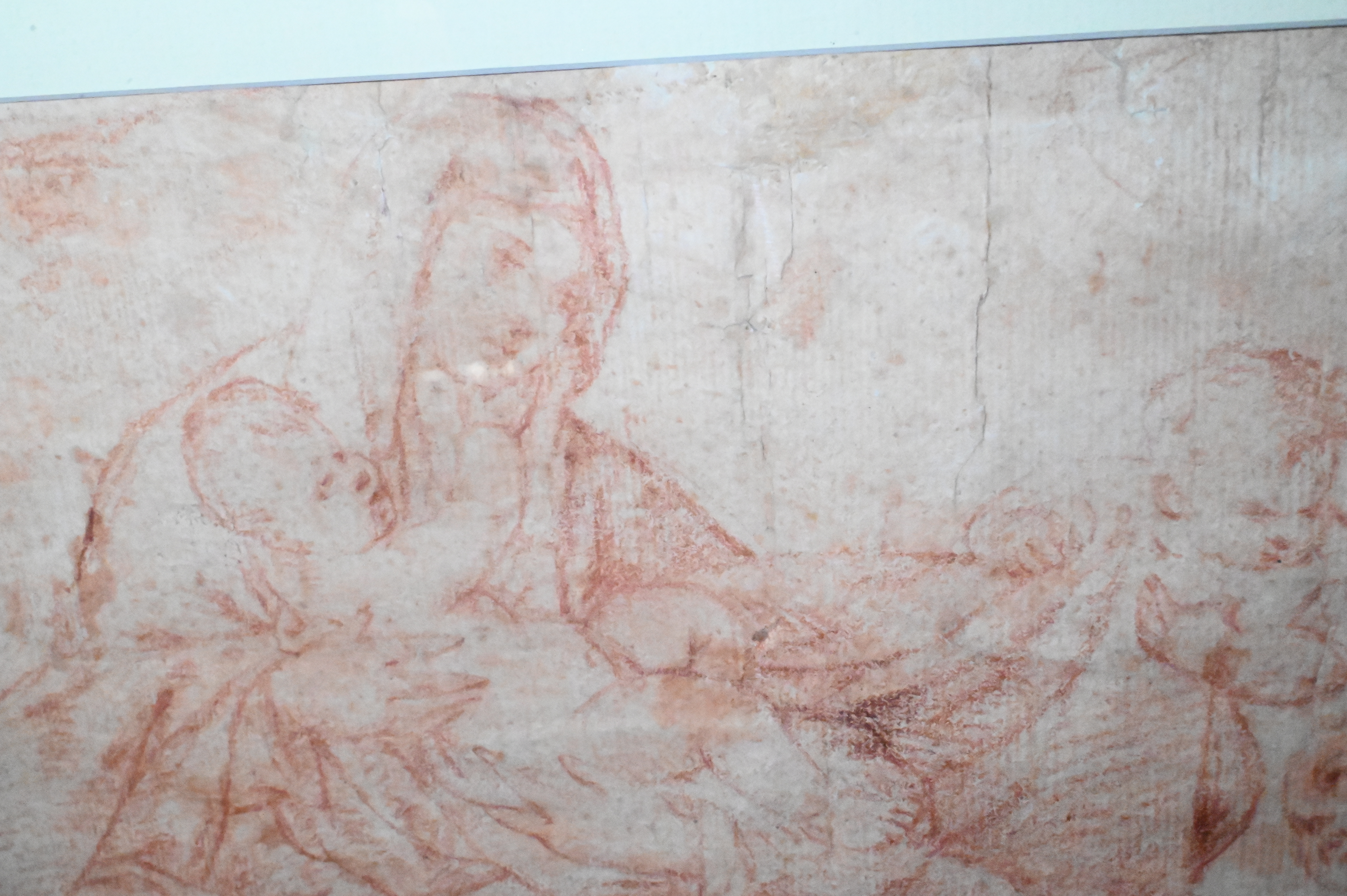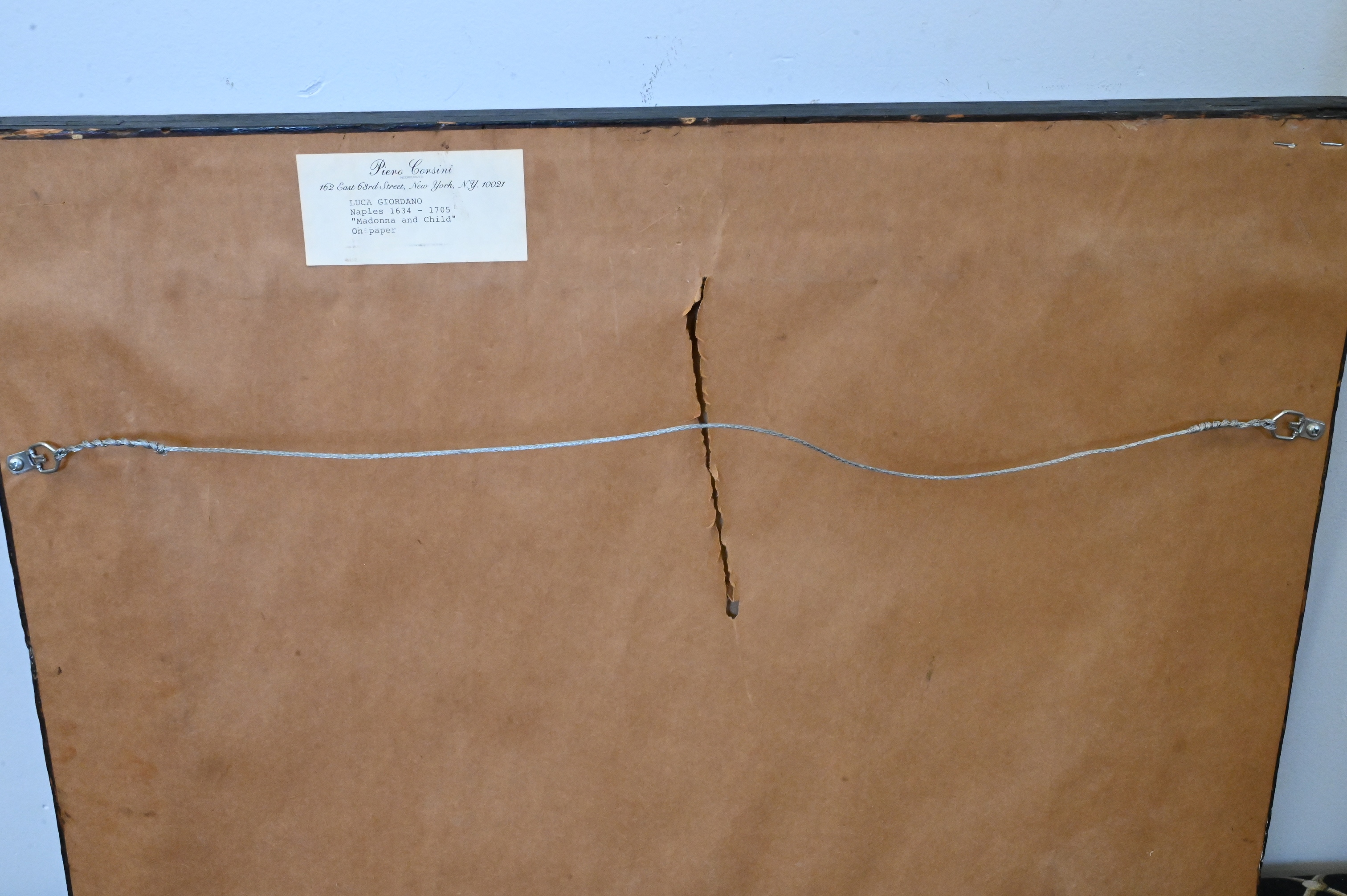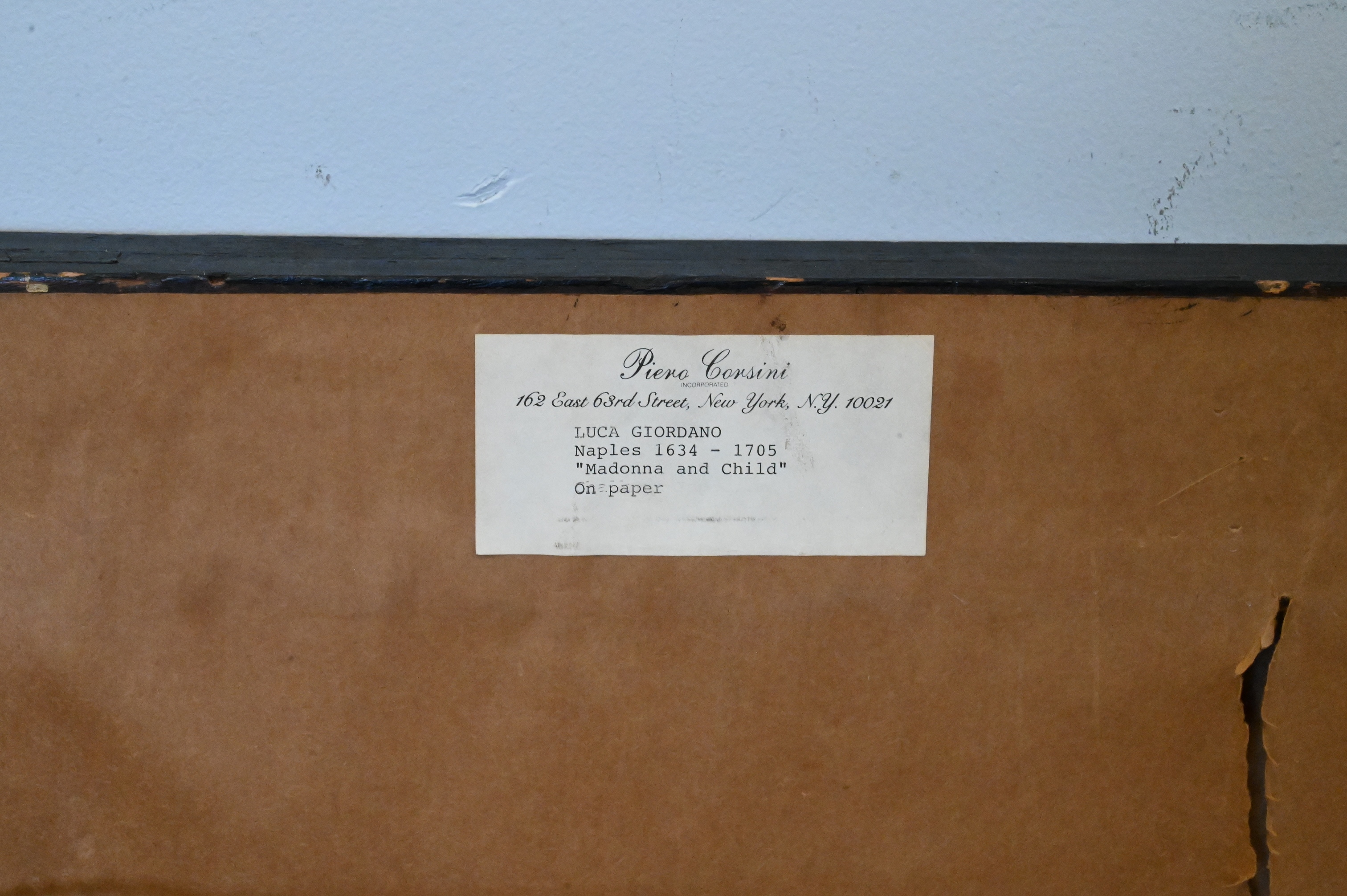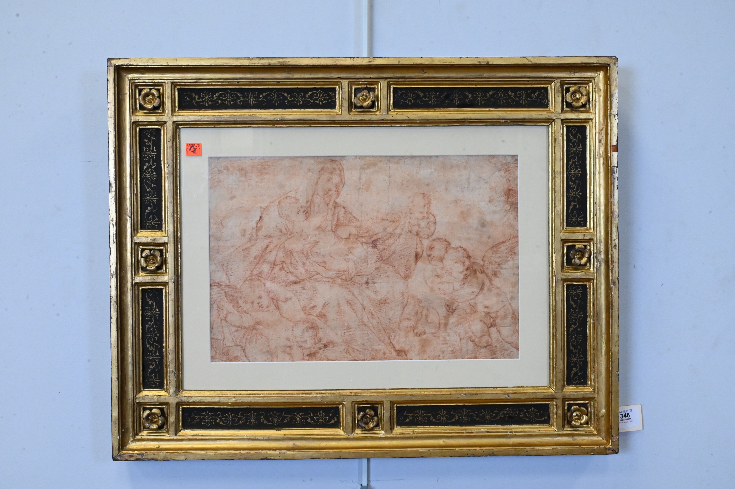 depicting the Virgin Mary tenderly embracing the Christ Child, surrounded by adoring cherubs; characteristic of Giordano’s confident draftsmanship and fluid line, the composition combines graceful motion and devotional intimacy, demonstrating his masterful handling of red chalk in preparatory studies