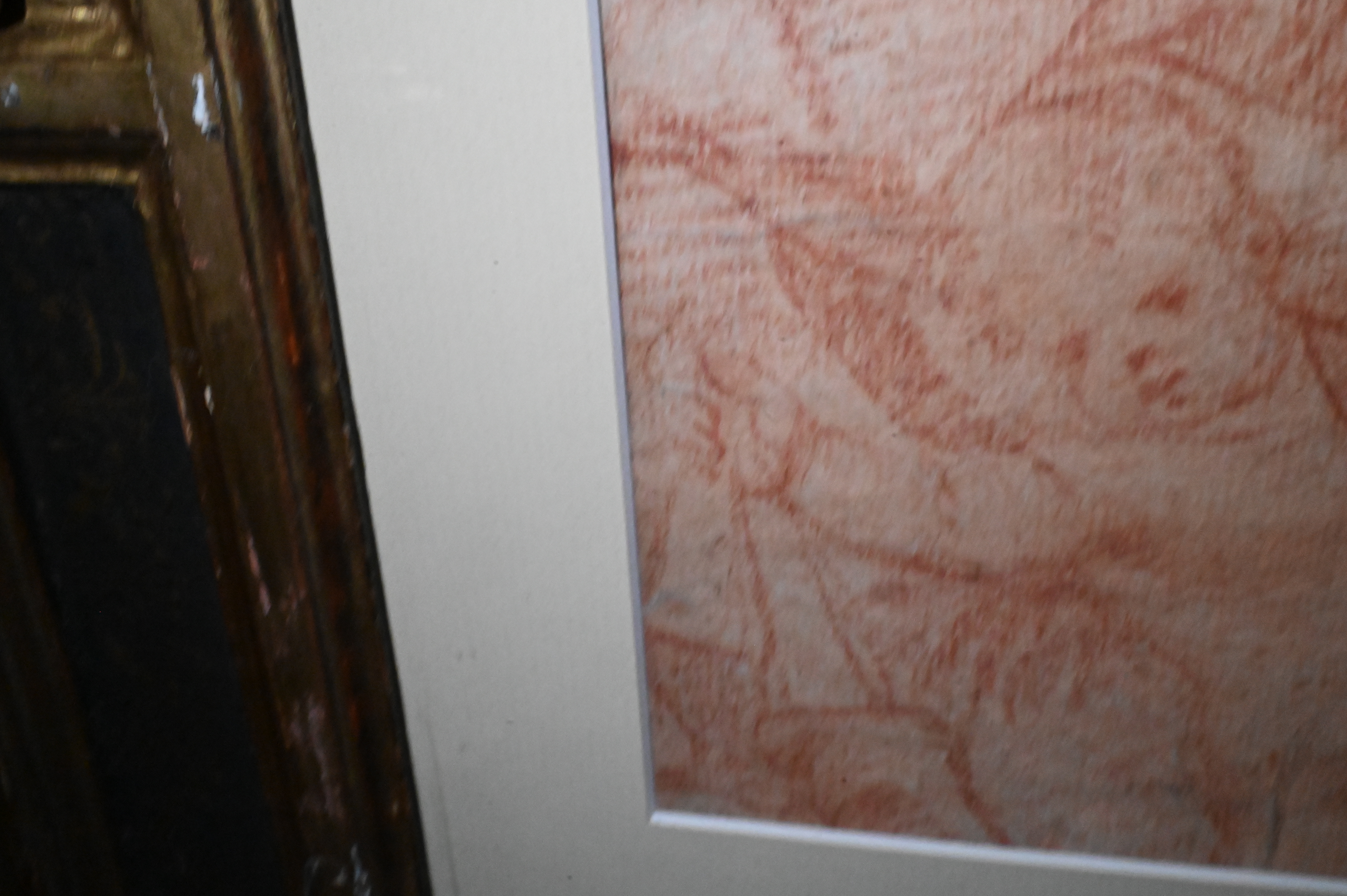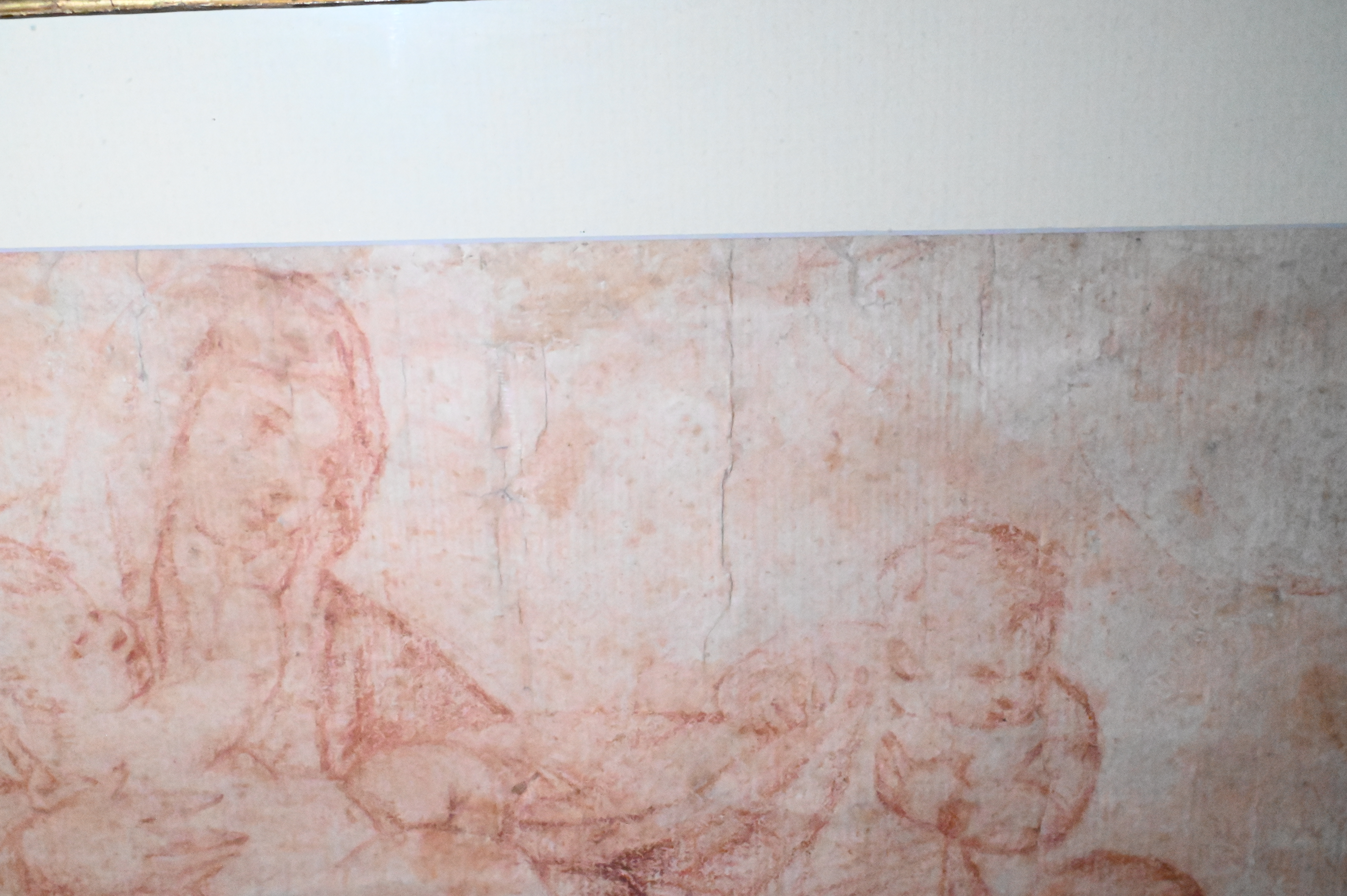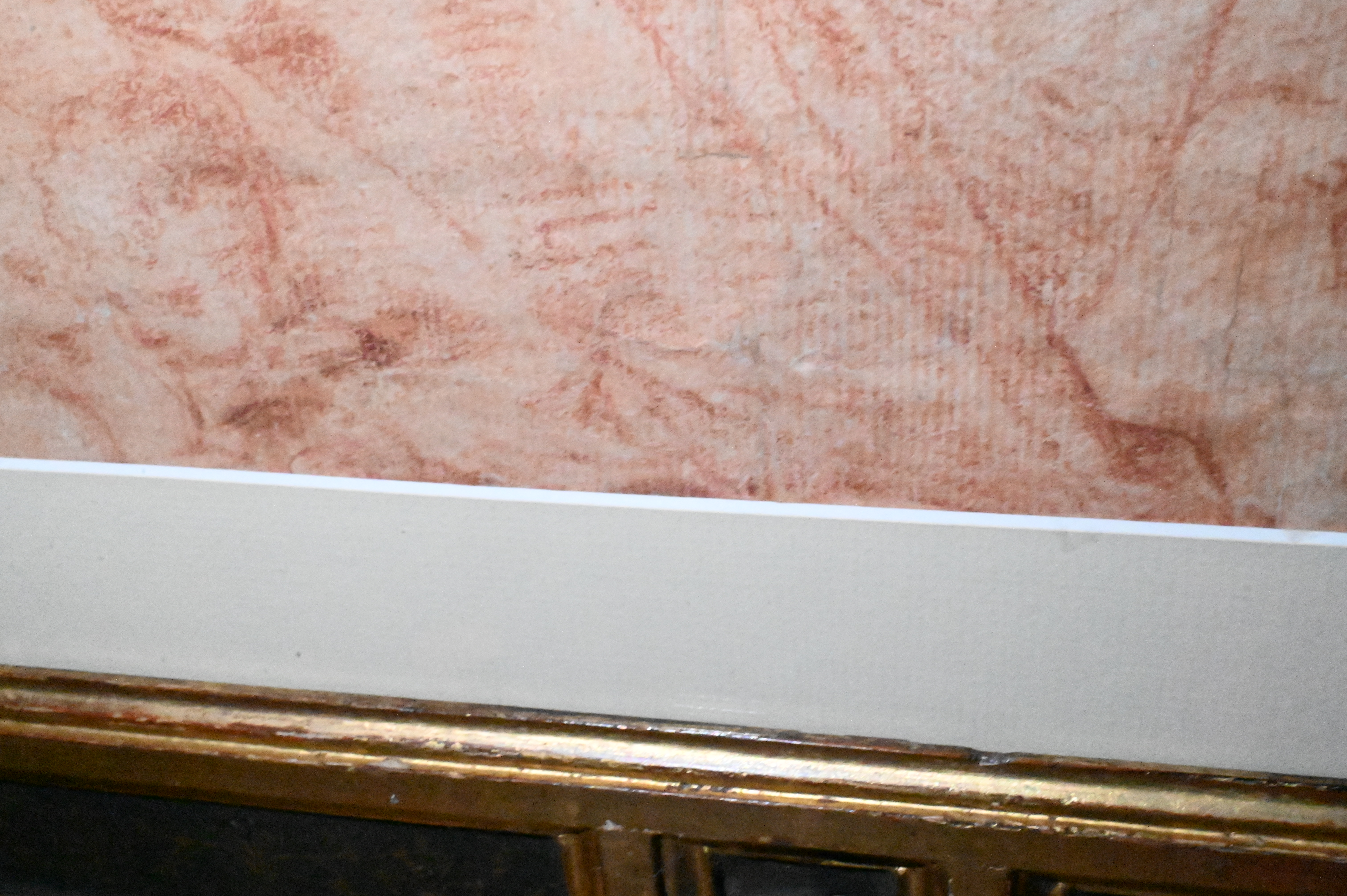 Red chalk on laid paper, presented in a carved and giltwood frame with black-painted panels and rosette ornamentation
