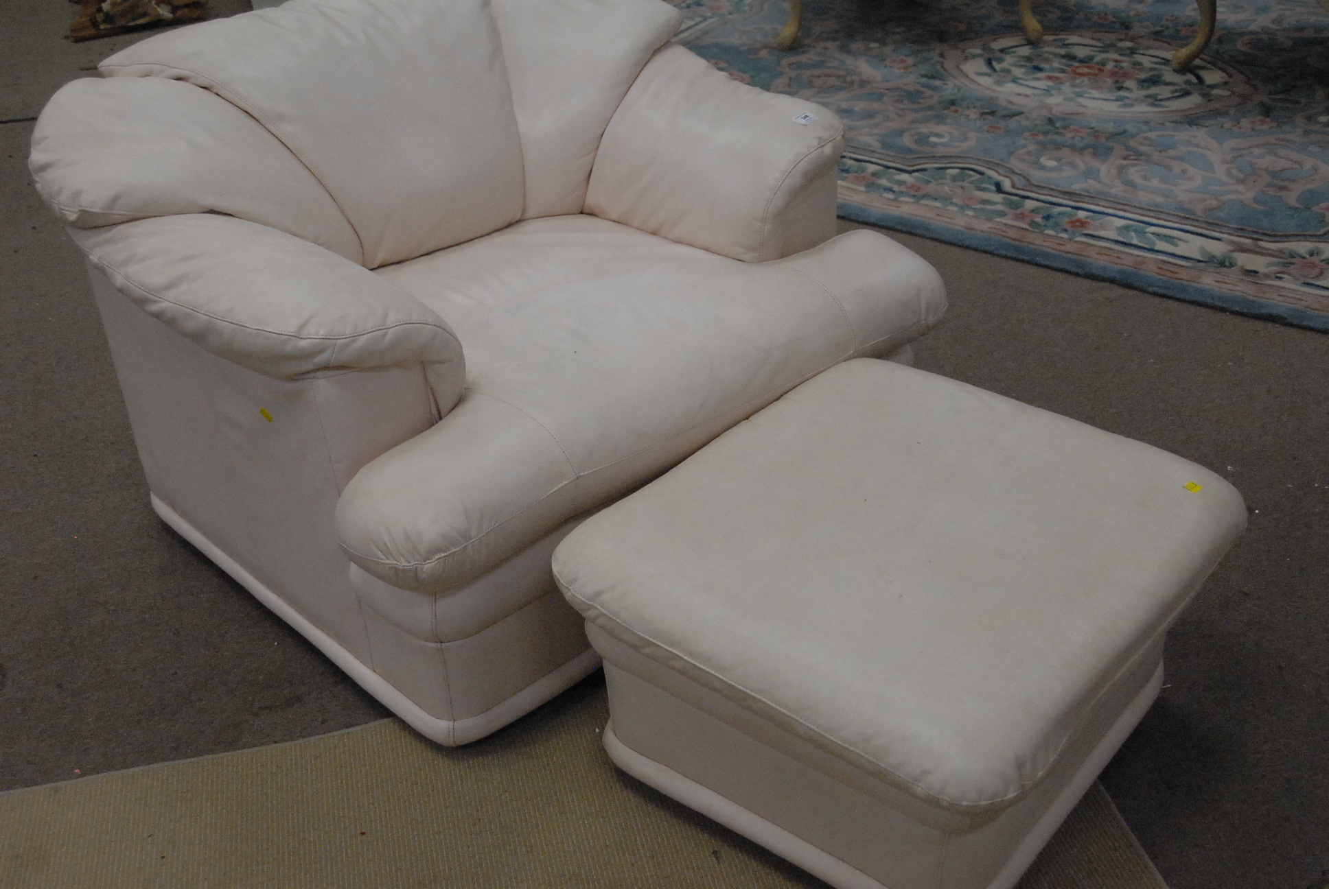 Pink leather chair and ottoman.