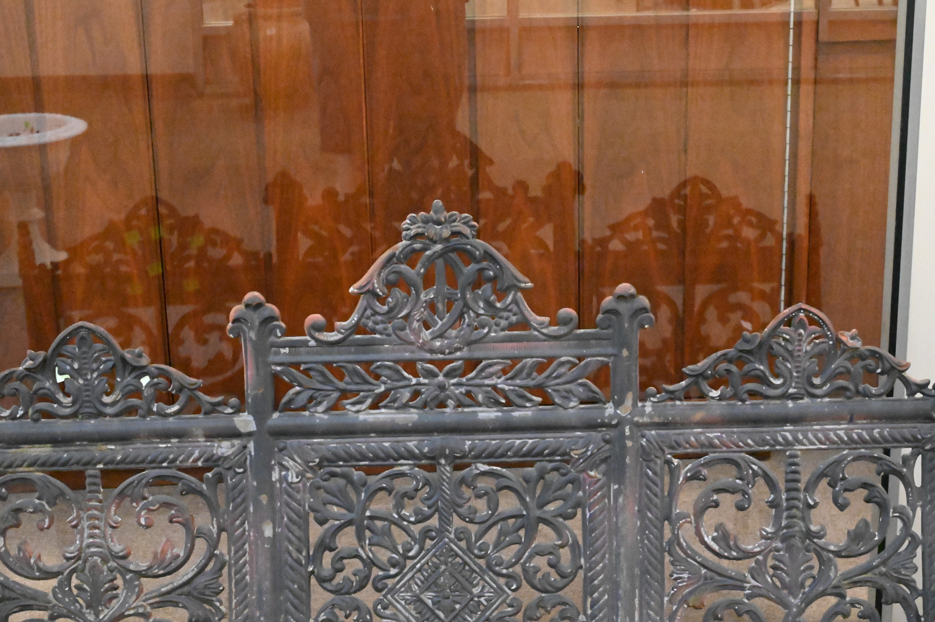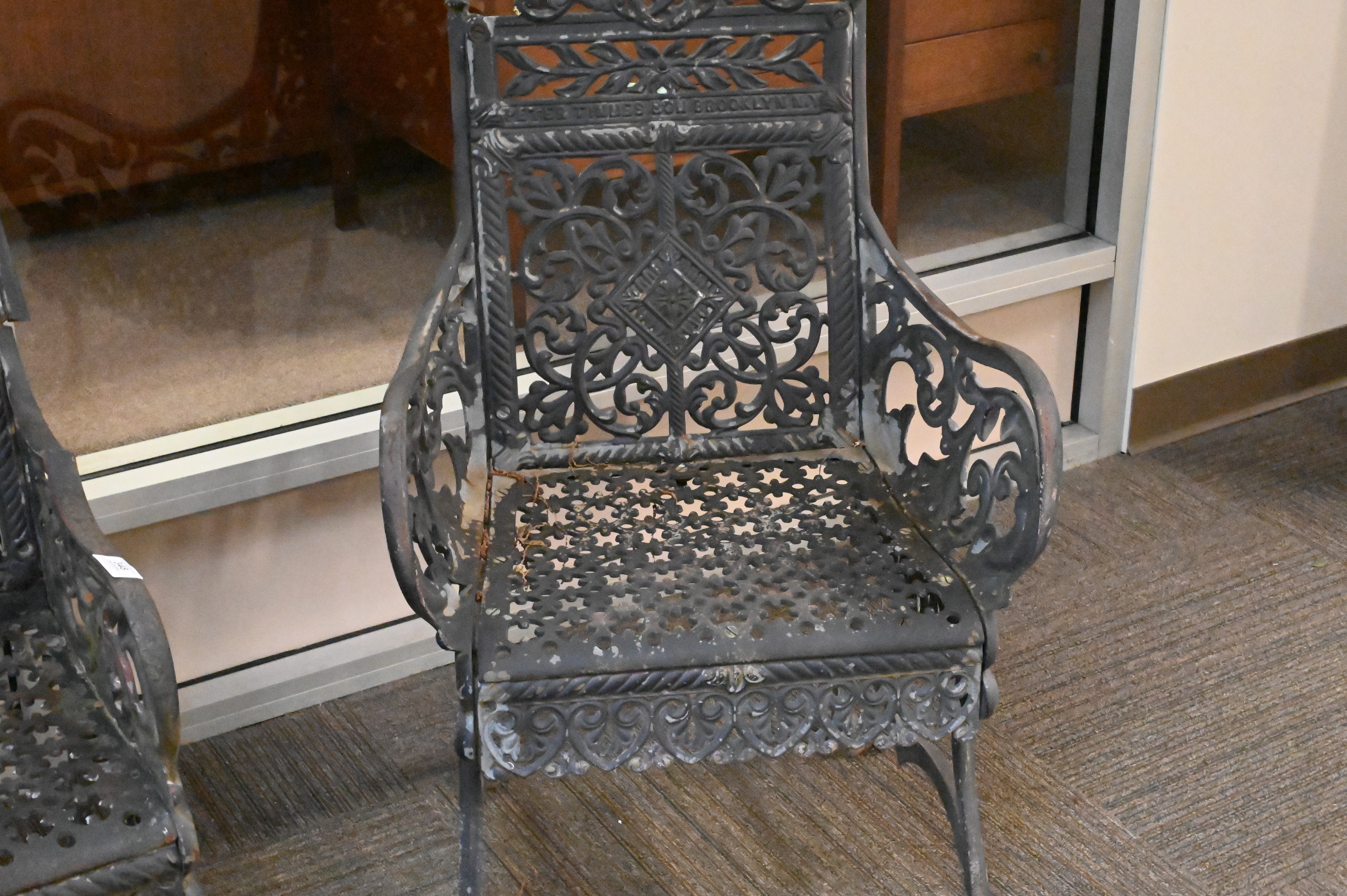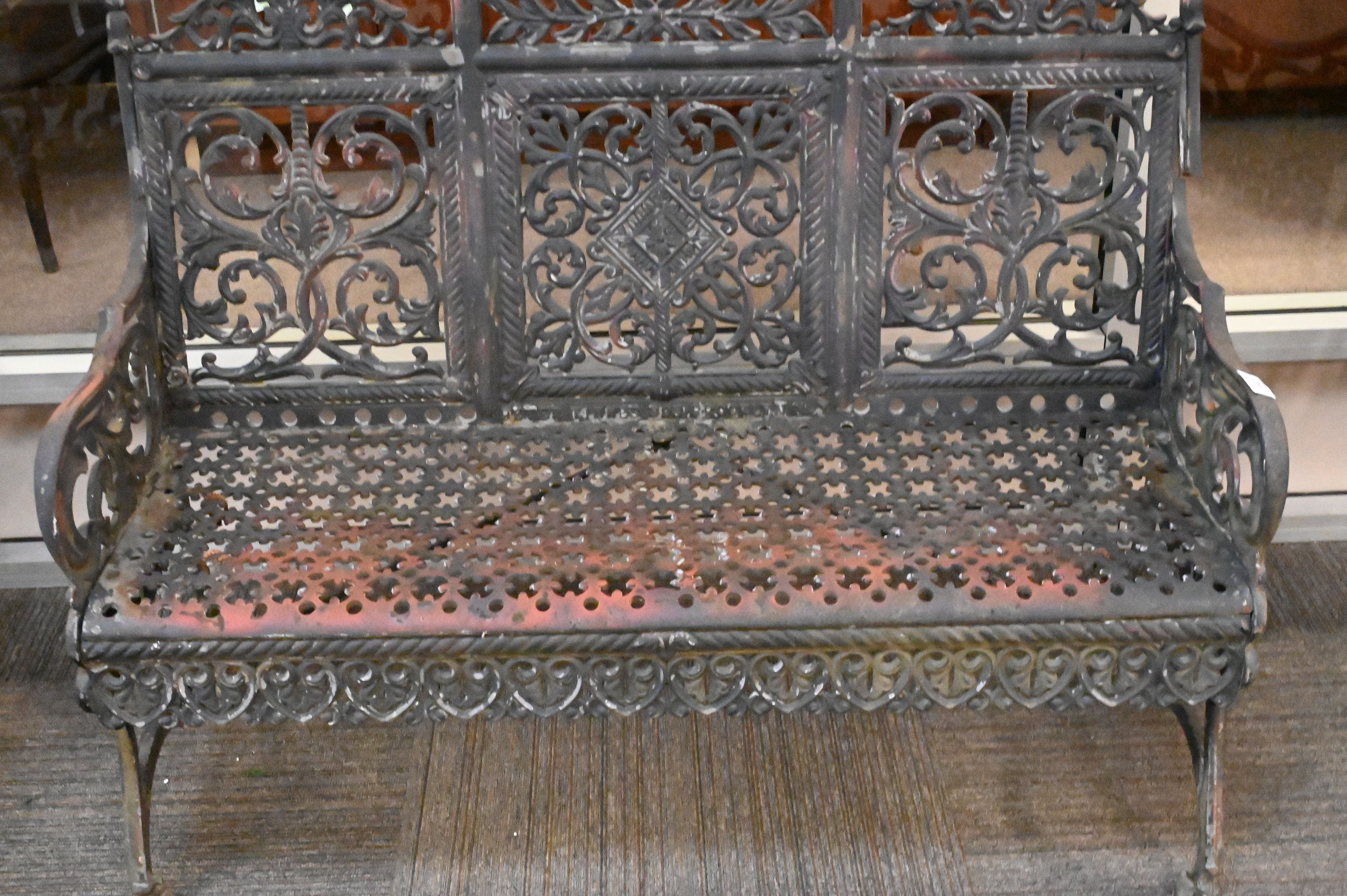 Three Piece Pete Times & Son NY Cast Iron Outdoor Set, to include settee, along with pair of Matory armchairs, settee width 44 inches, height 40 inches.