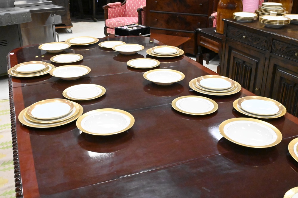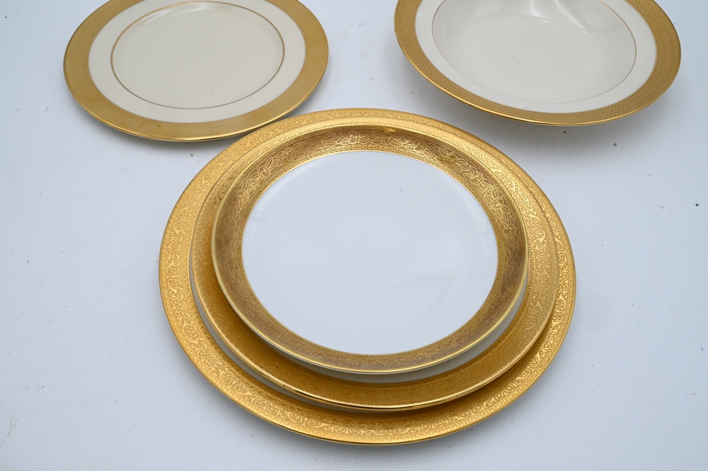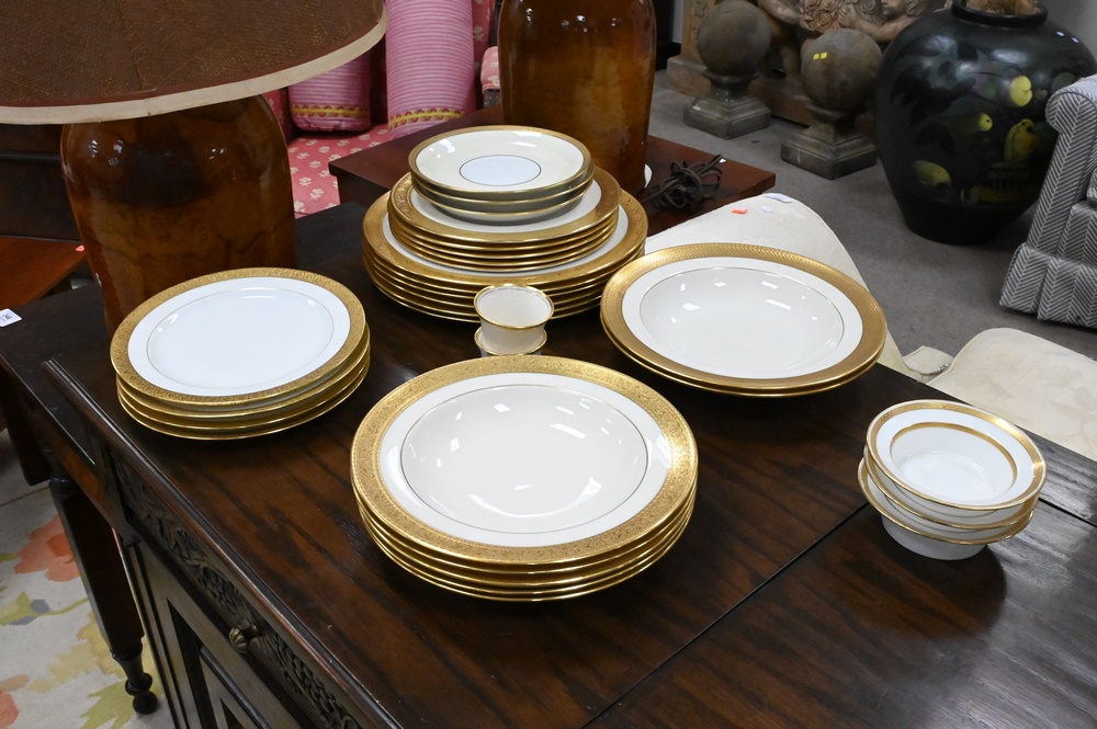Lot 349: 68 Piece Assembled Lenox and Bavaria Porcelain Dinnerware Set, having gold rim, to include 14 dinner plates, 8 luncheon plates, etc. Provenance: An estate from Redding, CT.