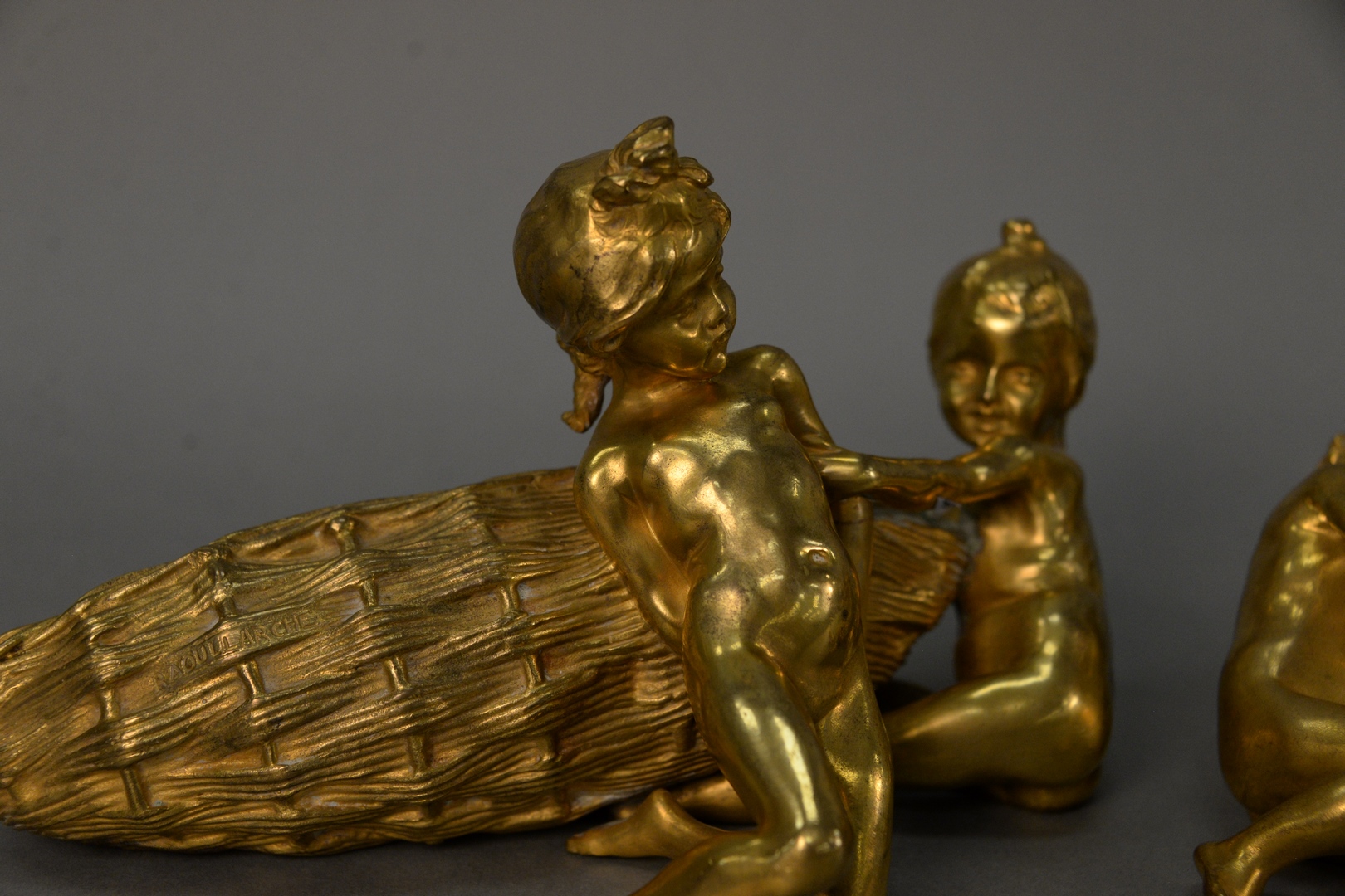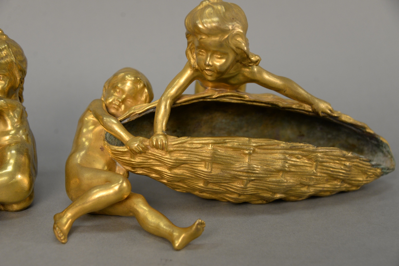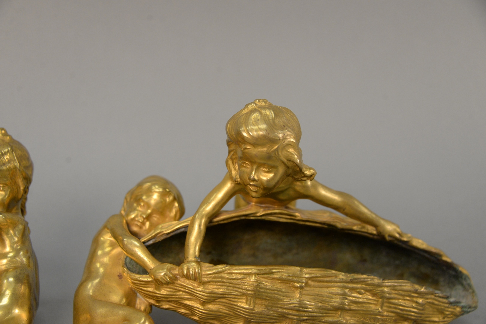 Lot 349: A Pair of Raoul Francois Larche 1860 – 1912 Bronzes French gilt bronze figural flower baskets, both depicting two girls trying to …