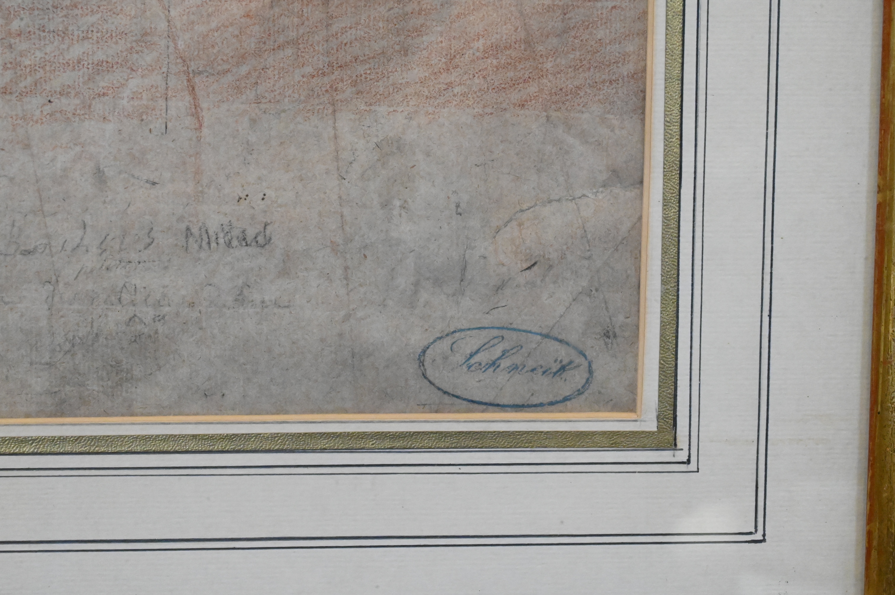 Toning and creasing to paper expected with age. Some undulation. Some foxing. Illegible writing lower right next to estate stamp.