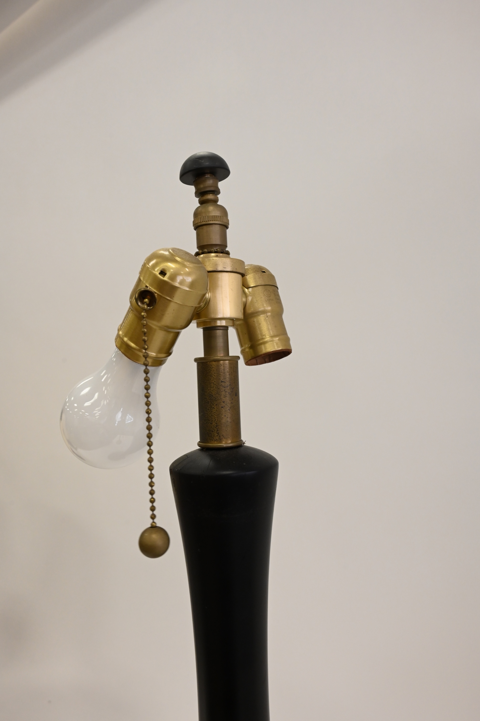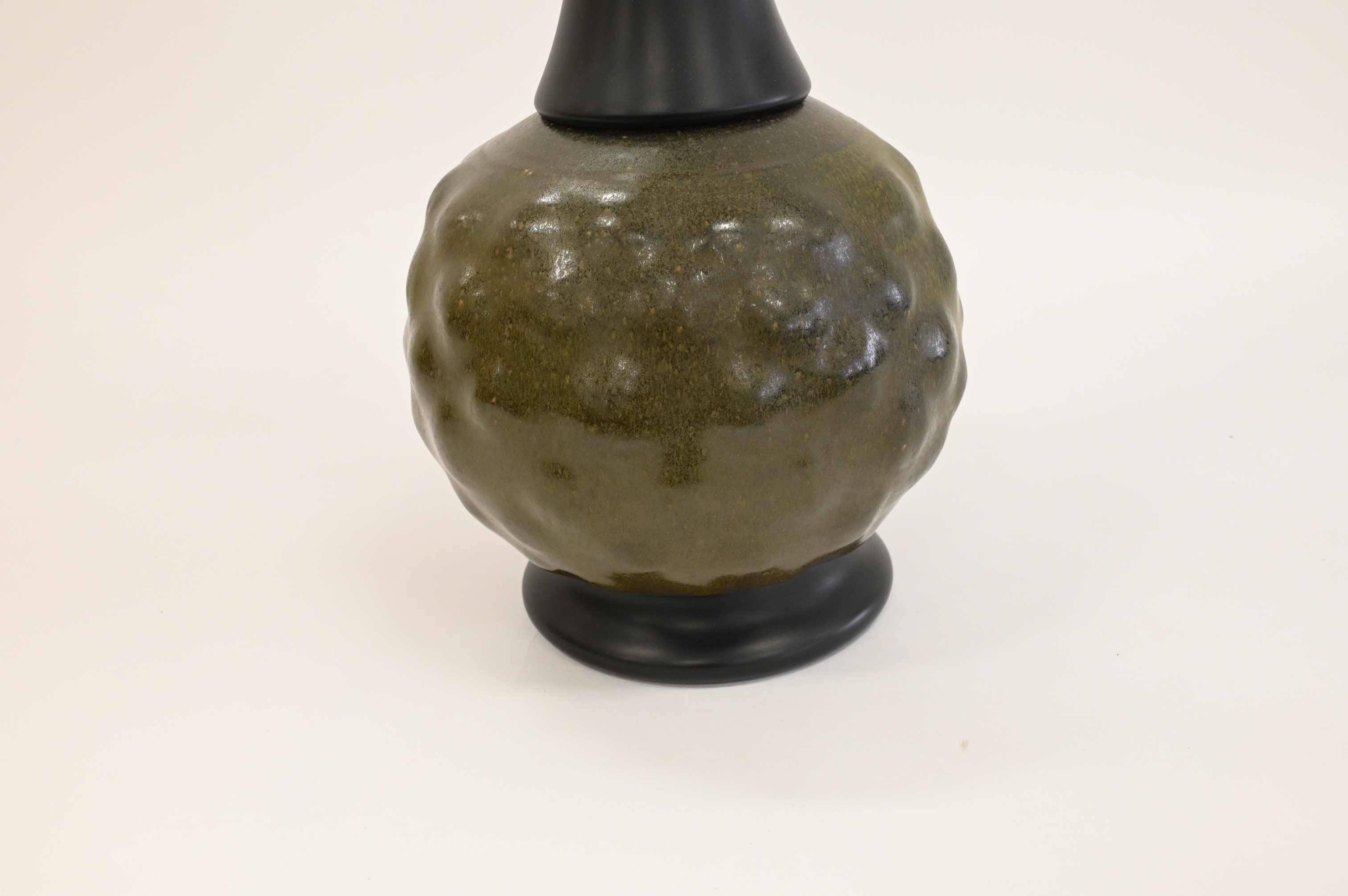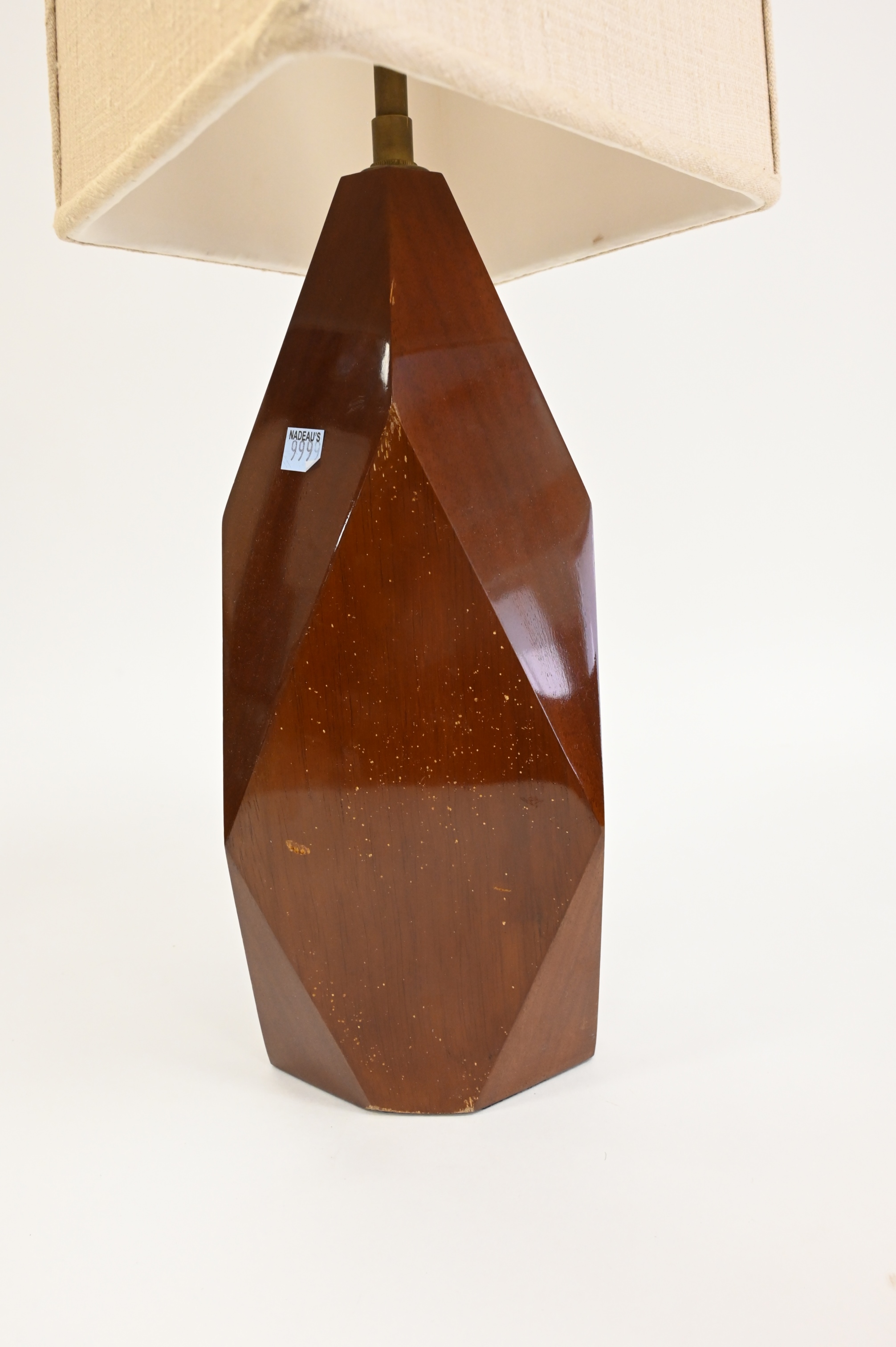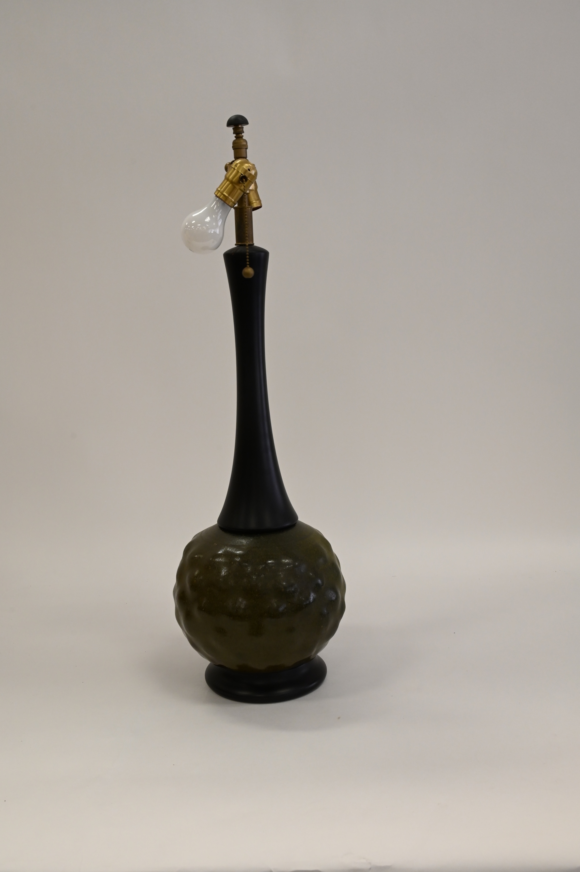 Five Table Lamps, to include a Vaughan Design table lamp having pottery vase body, along with two mid century modern wood lamps, height 26 inches, etc..