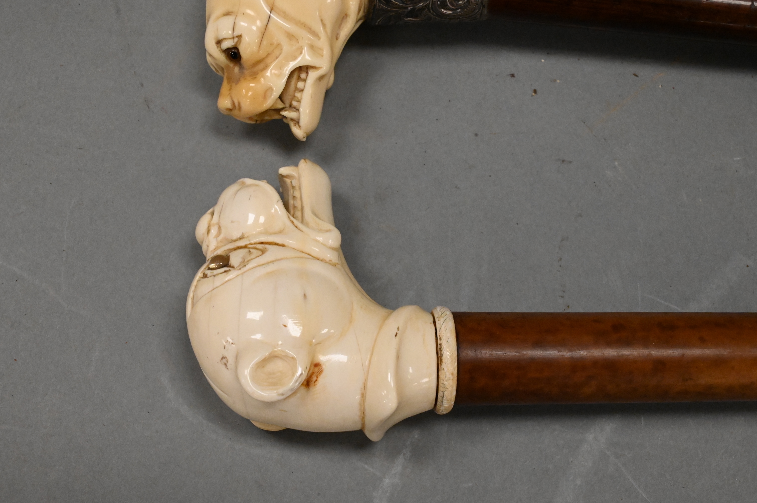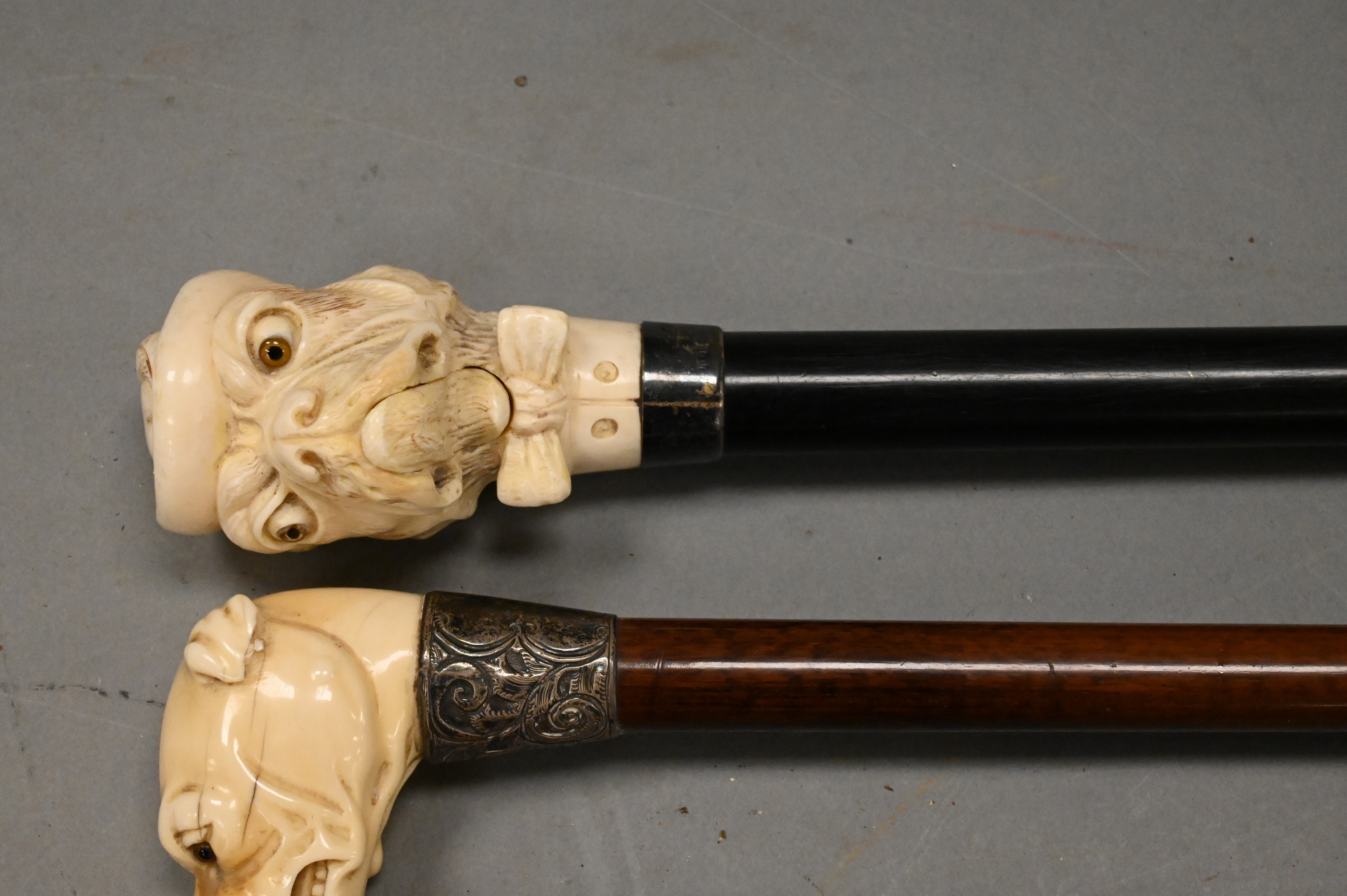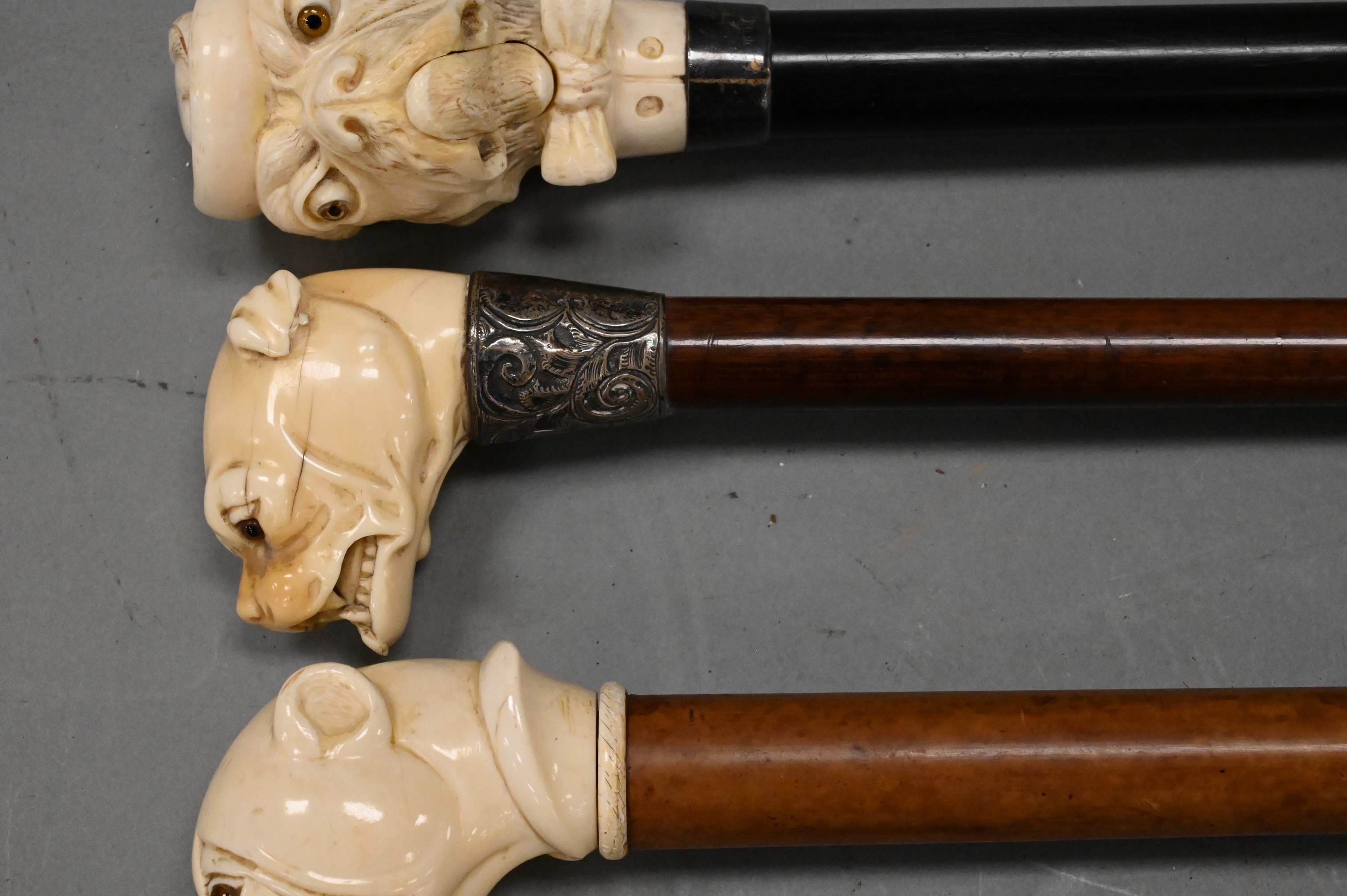 Lot 349: Group of Three Carved Dog Bust Canes