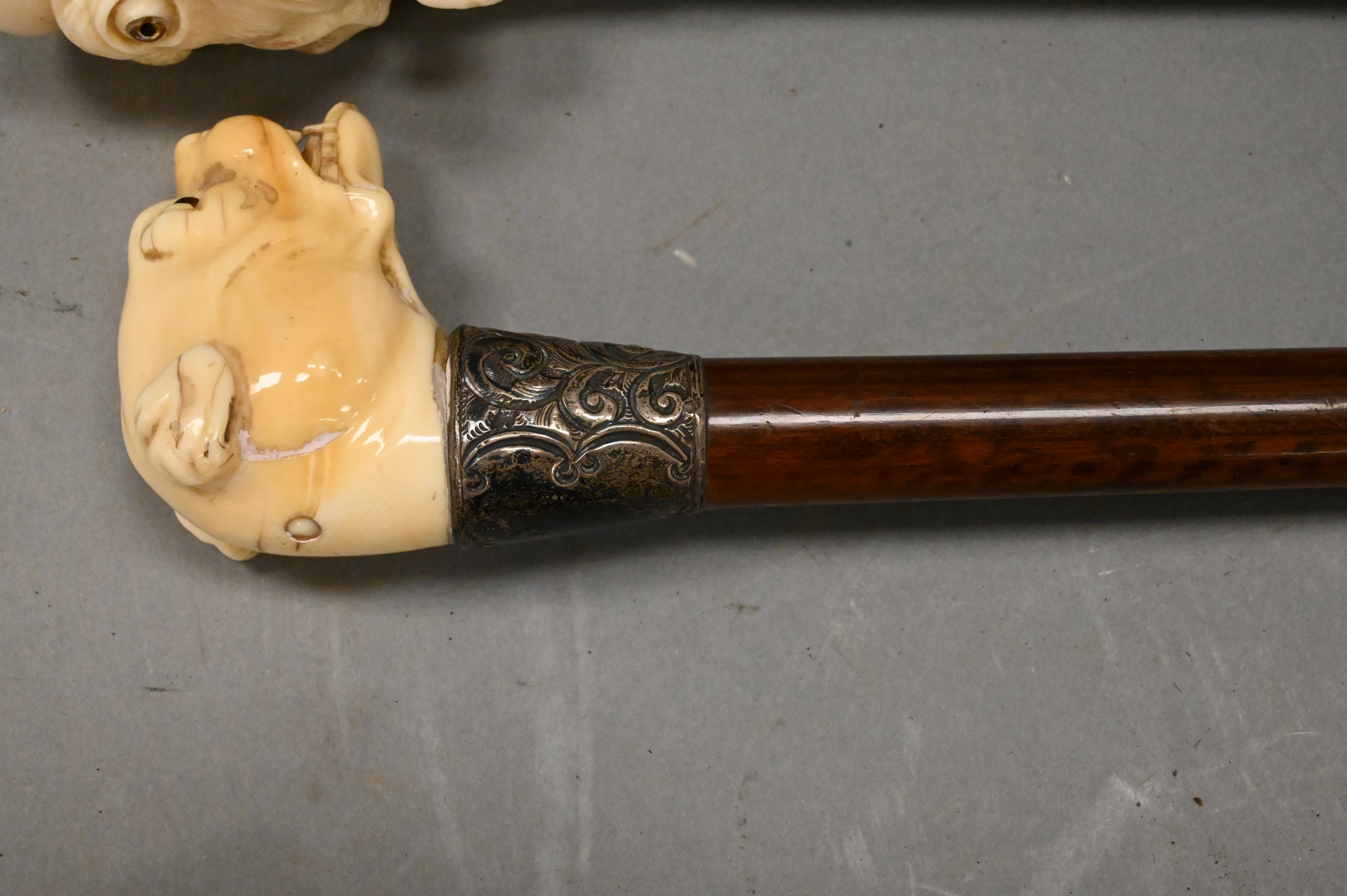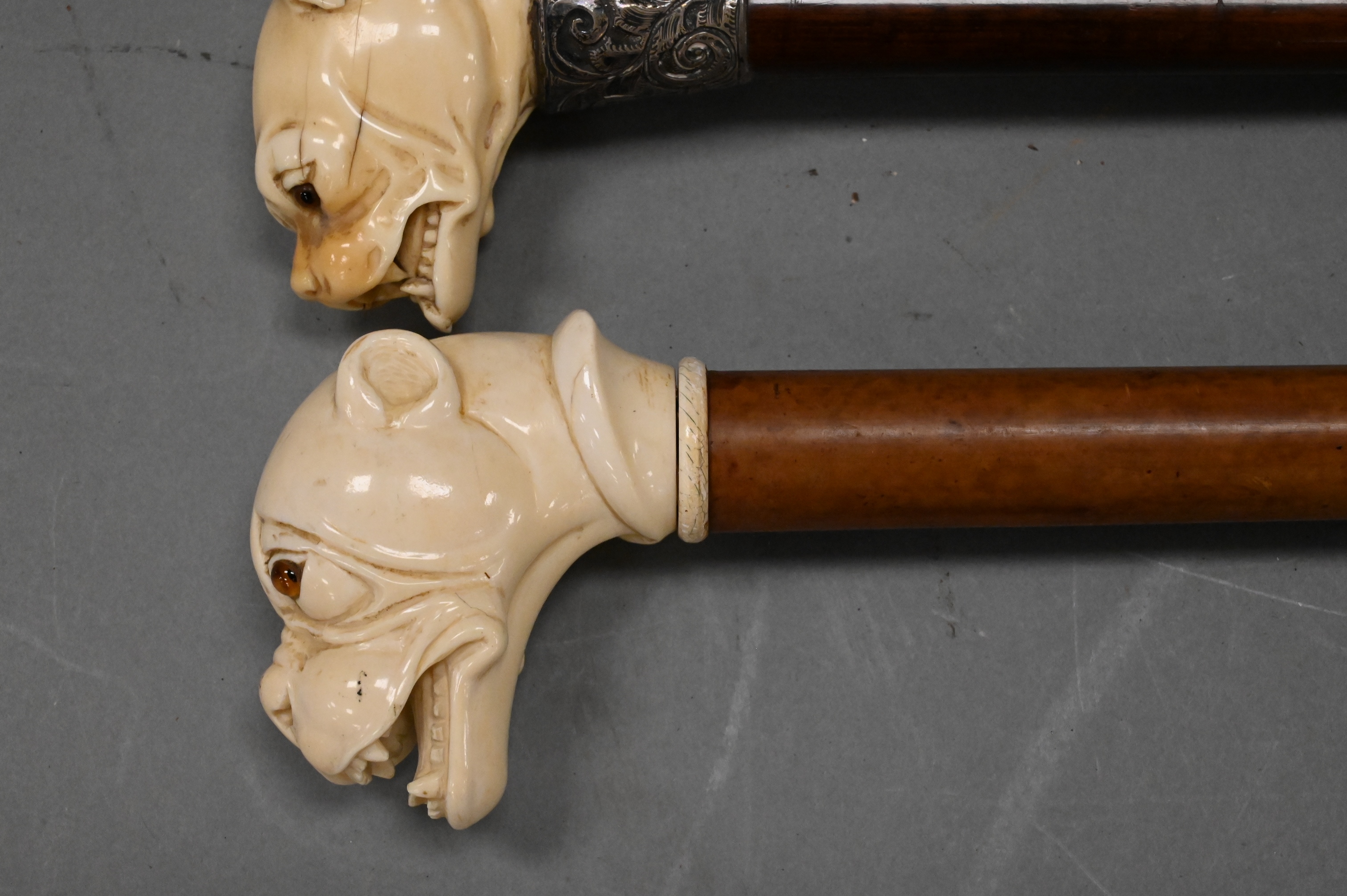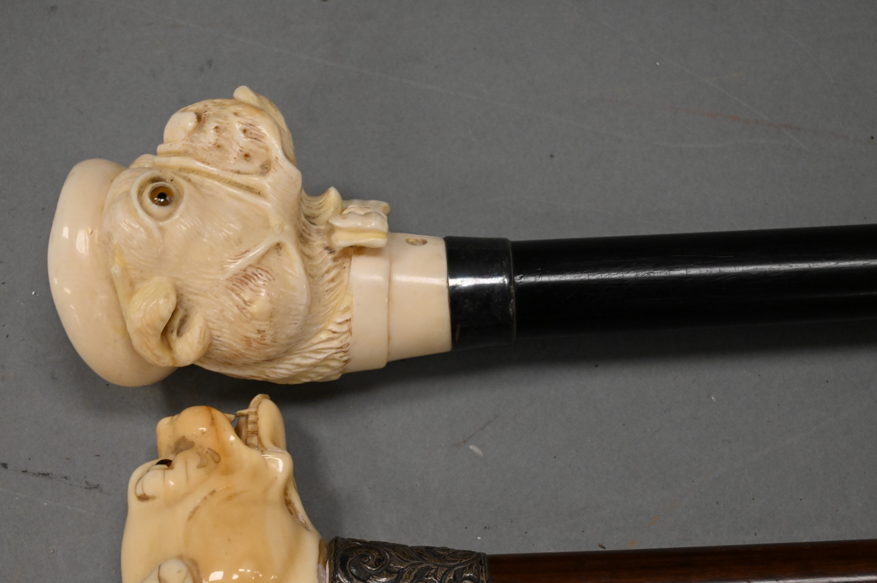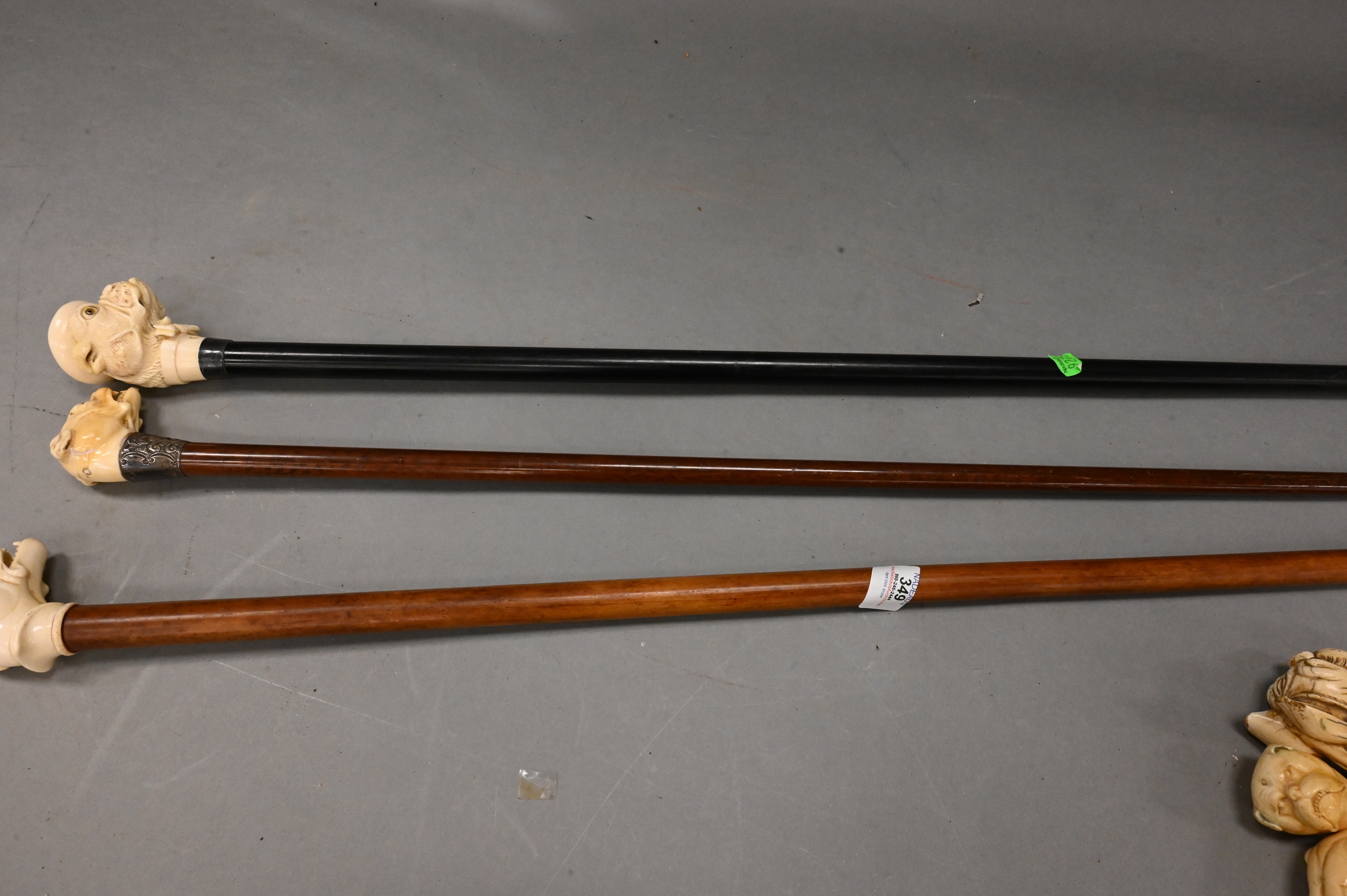 Lot 349: Group of Three Carved Dog Bust Canes
