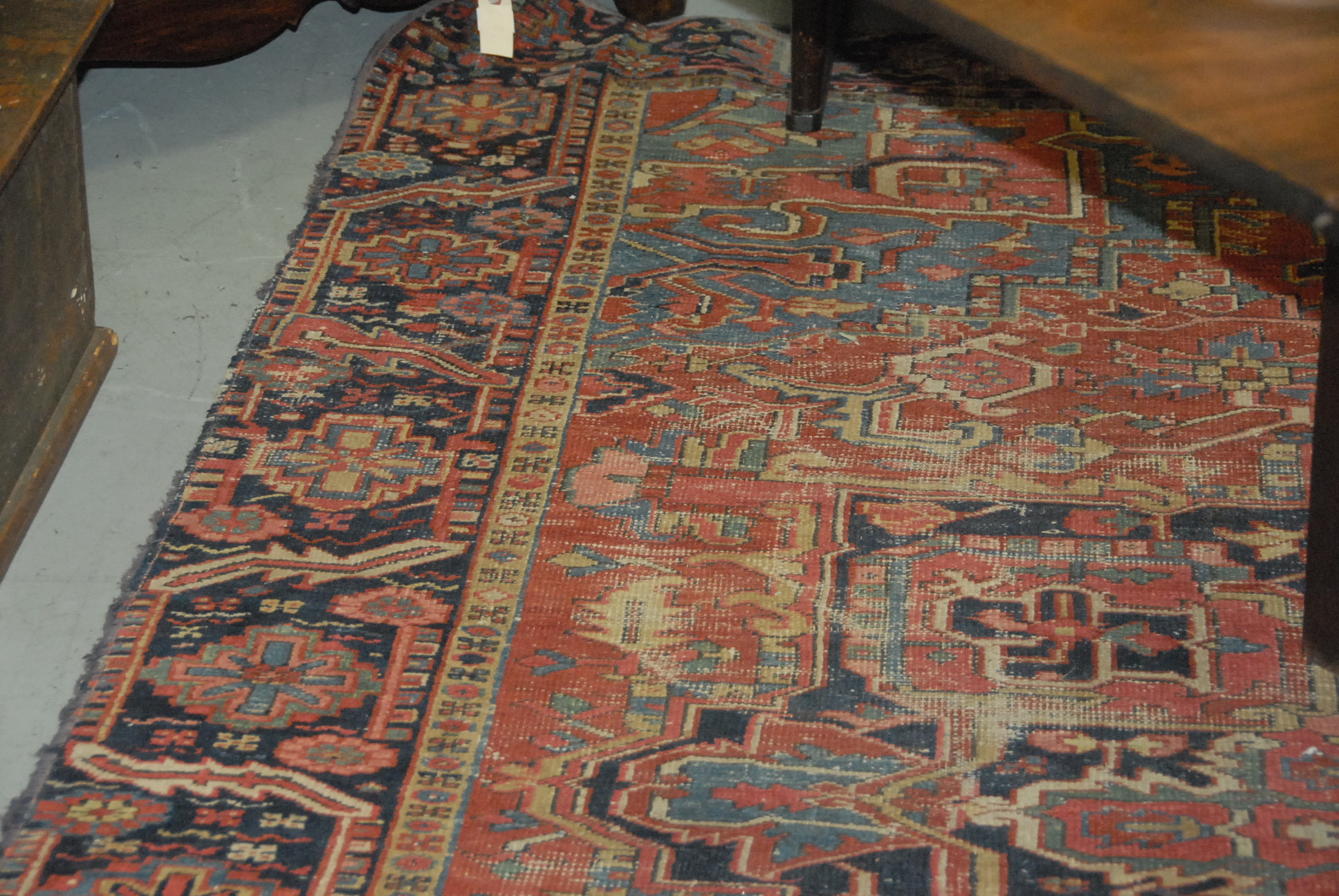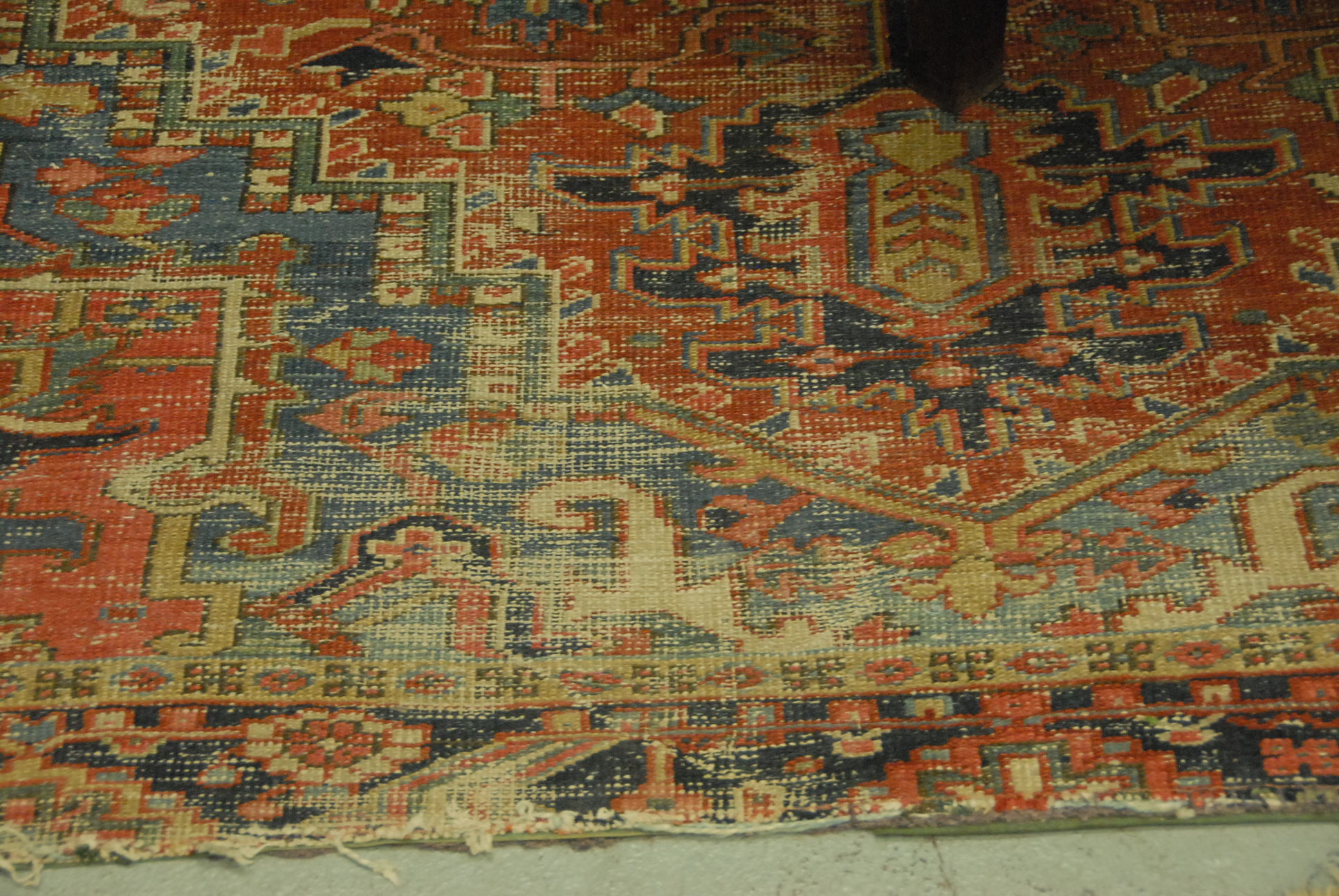 Heriz Oriental carpet wear. 7’7 x 9′