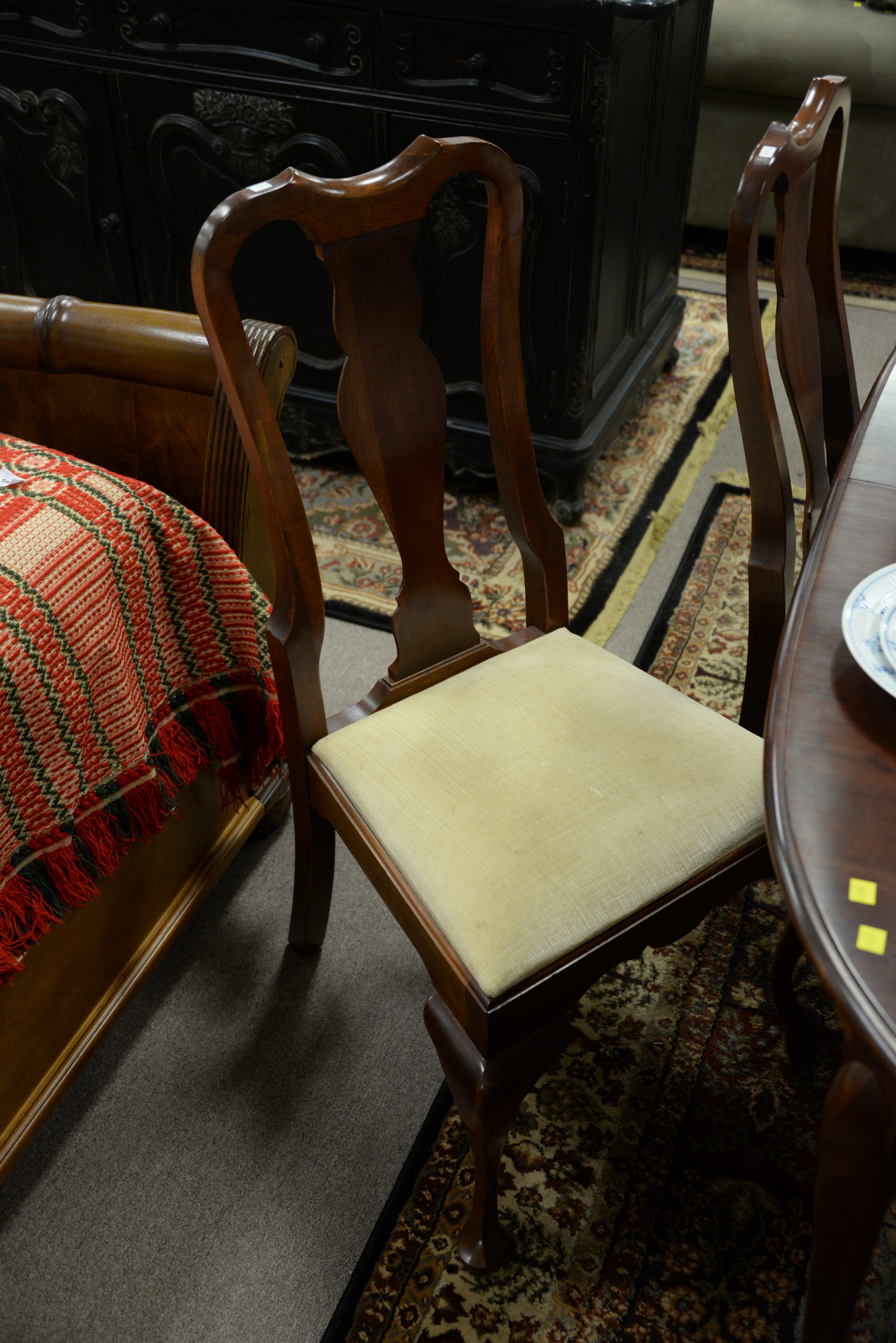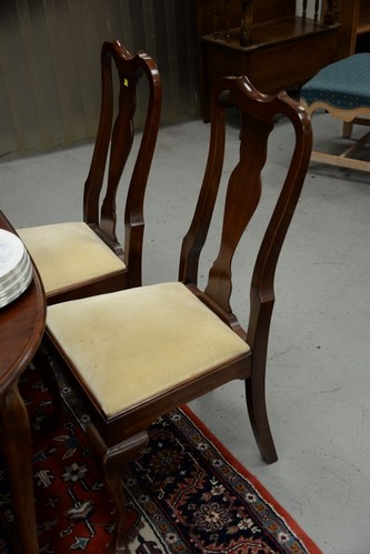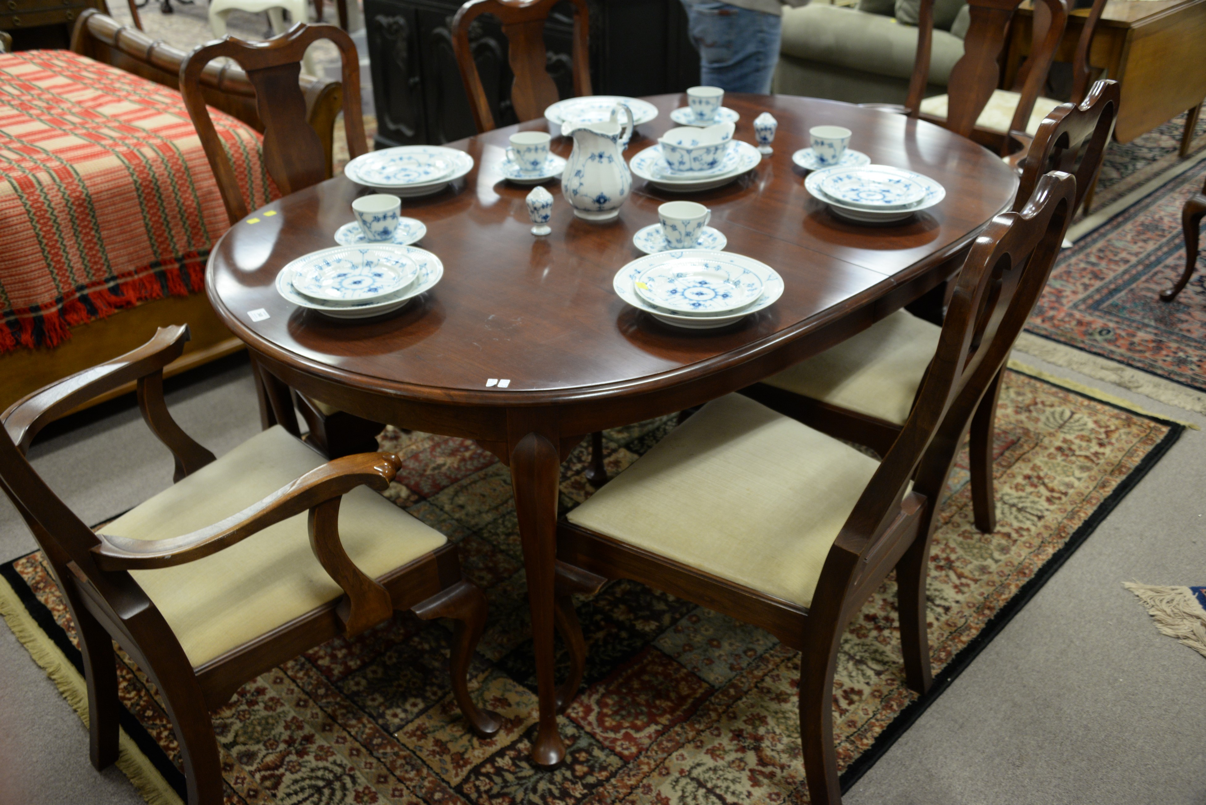 Hitchcock cherry nine piece dining set, Queen style chairs and oval table with two 15 leaves and pads. table: ht. 30 in. top: 44 x 66 open: 44 x 96