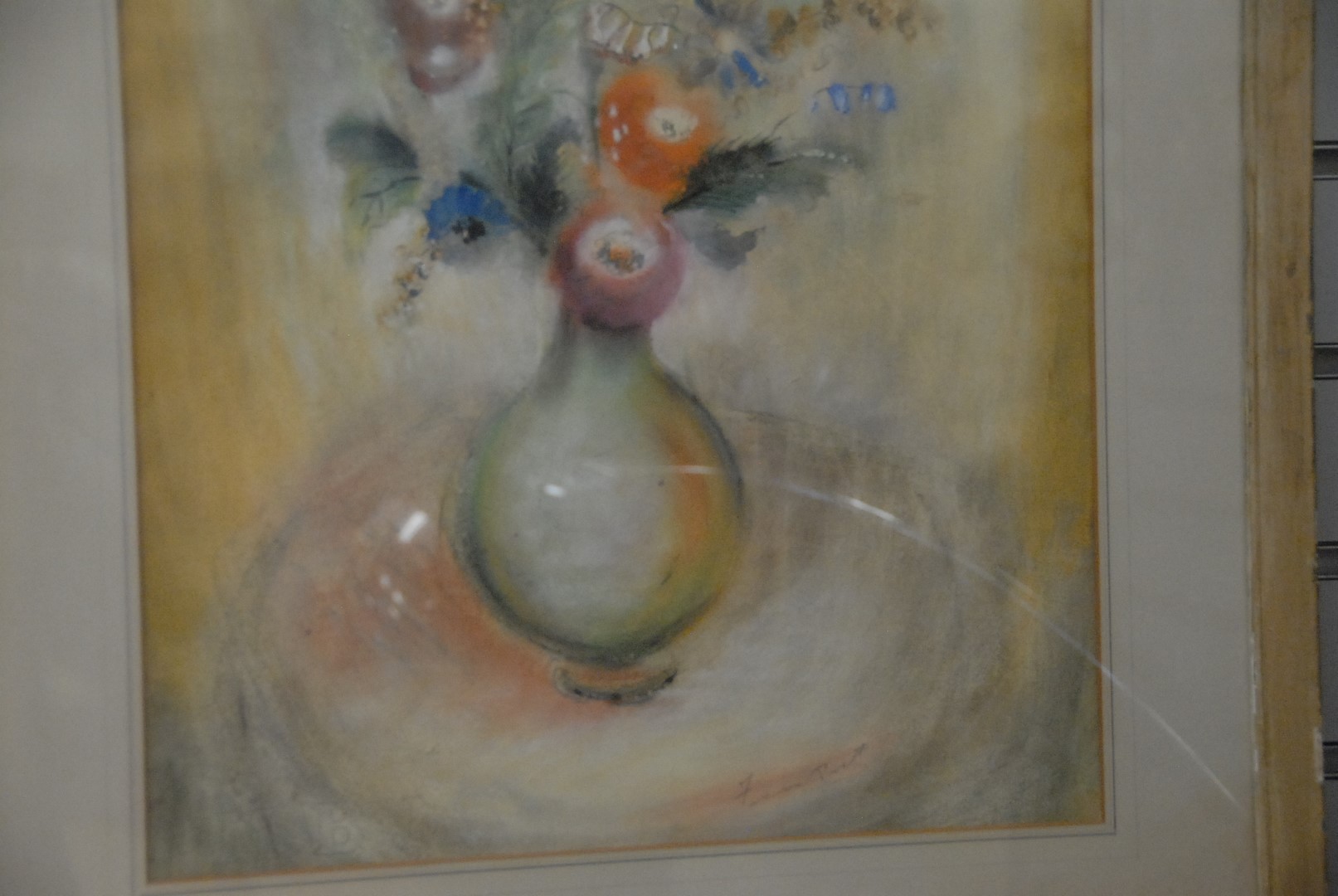 Pastel of vase of flowers on French paper, watermarked MBM. 20 1/2 x 14