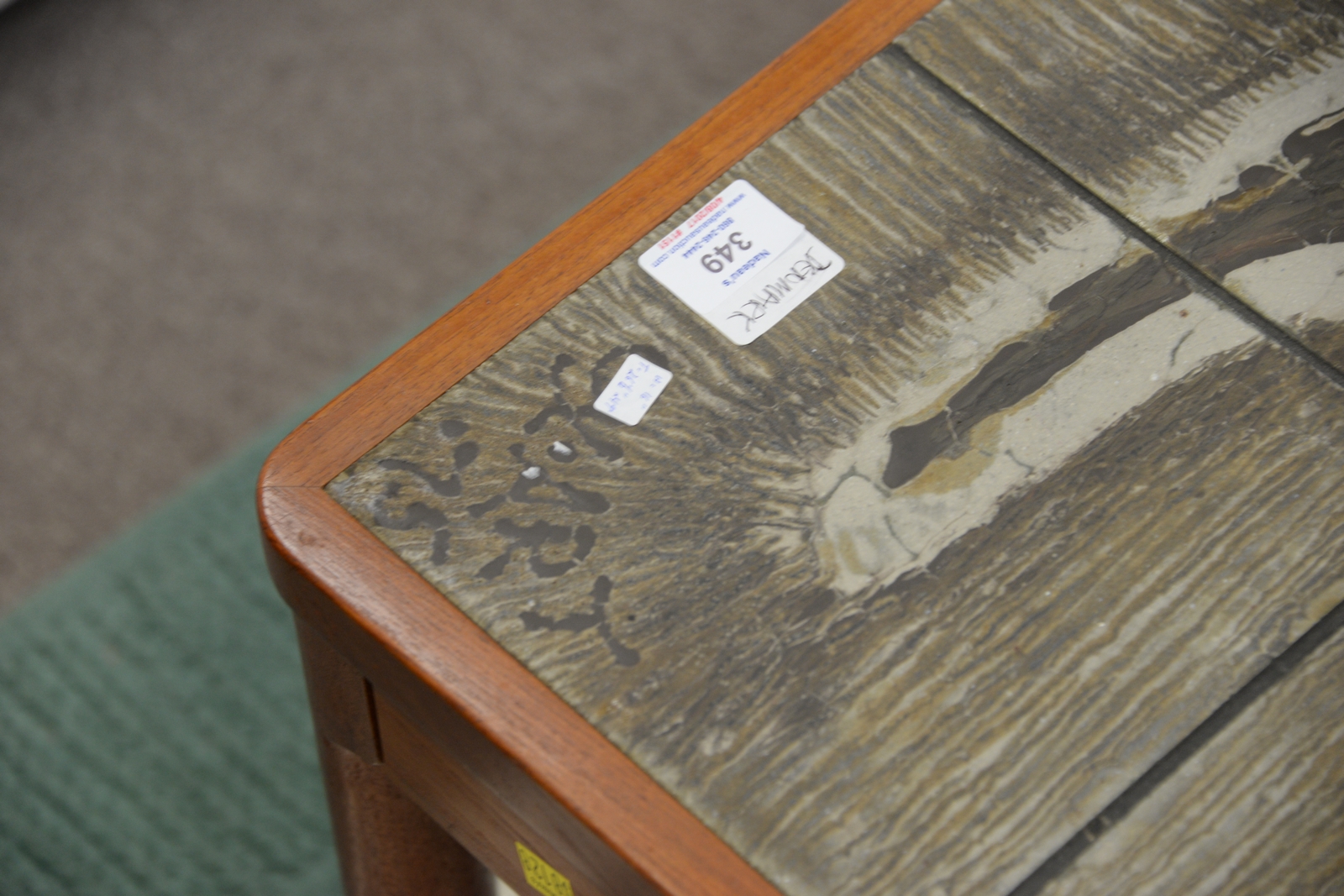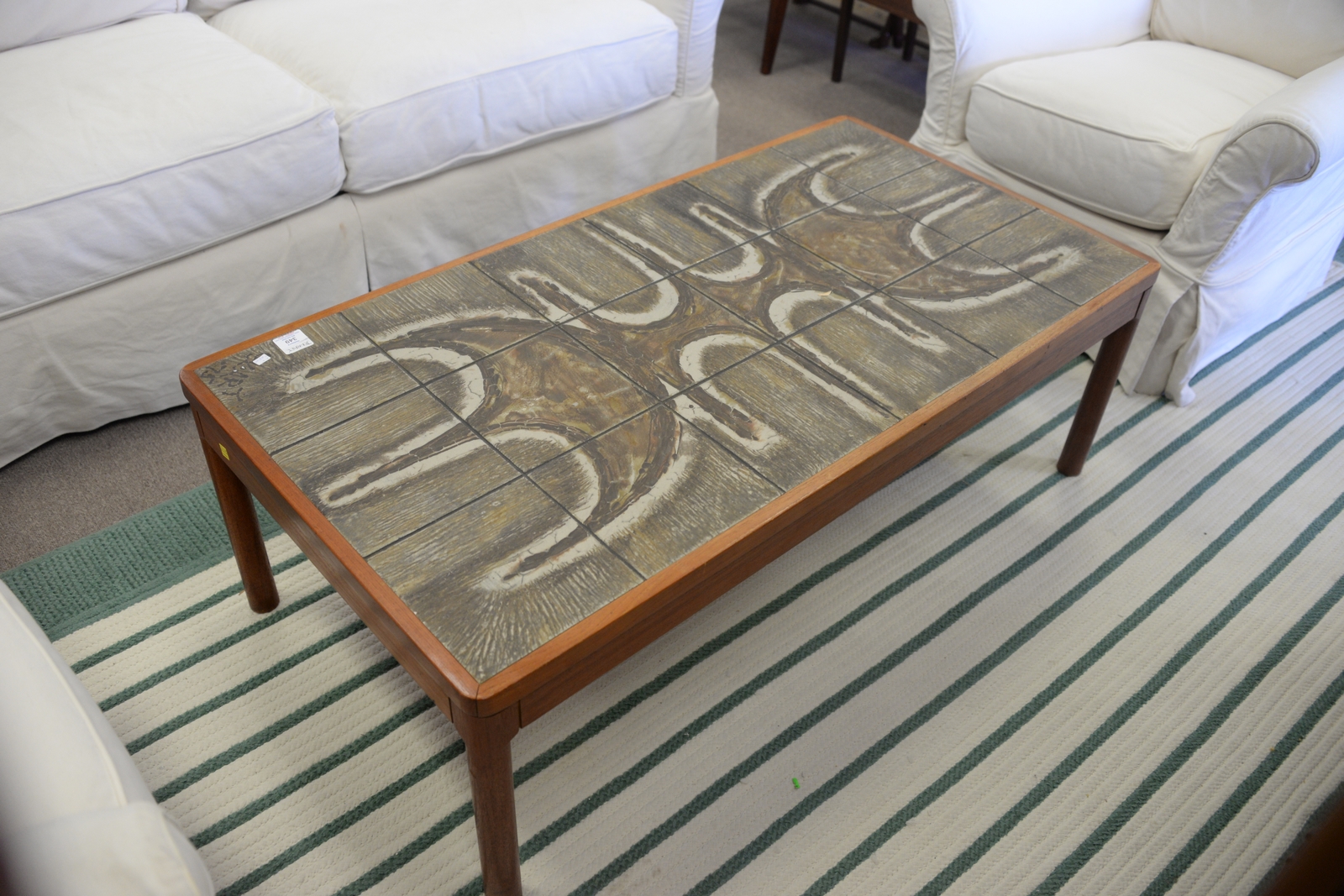 Roger Capron style Danish tile top table. ht. 10in., top: 26 x 49