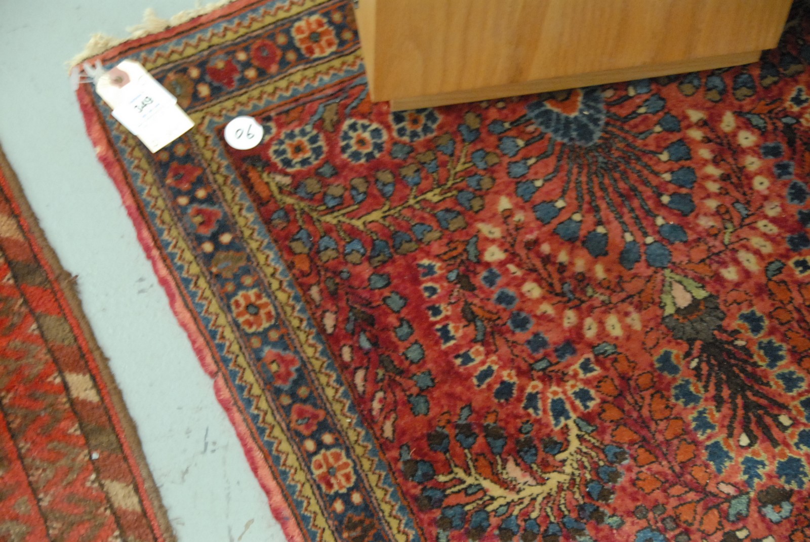Two Sarouk Oriental throw rugs. 2′ x 4′ and 1′ x 2’7