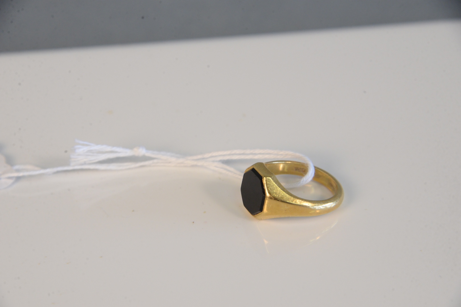 18 Karat Gold and Black Onyx Ring size 8 1/4, 9 grams