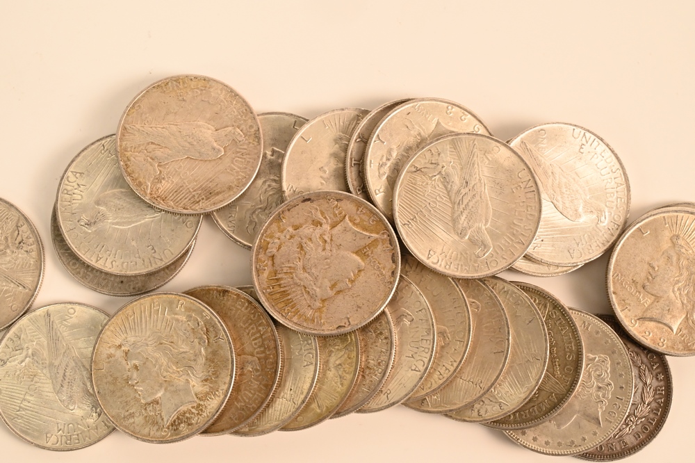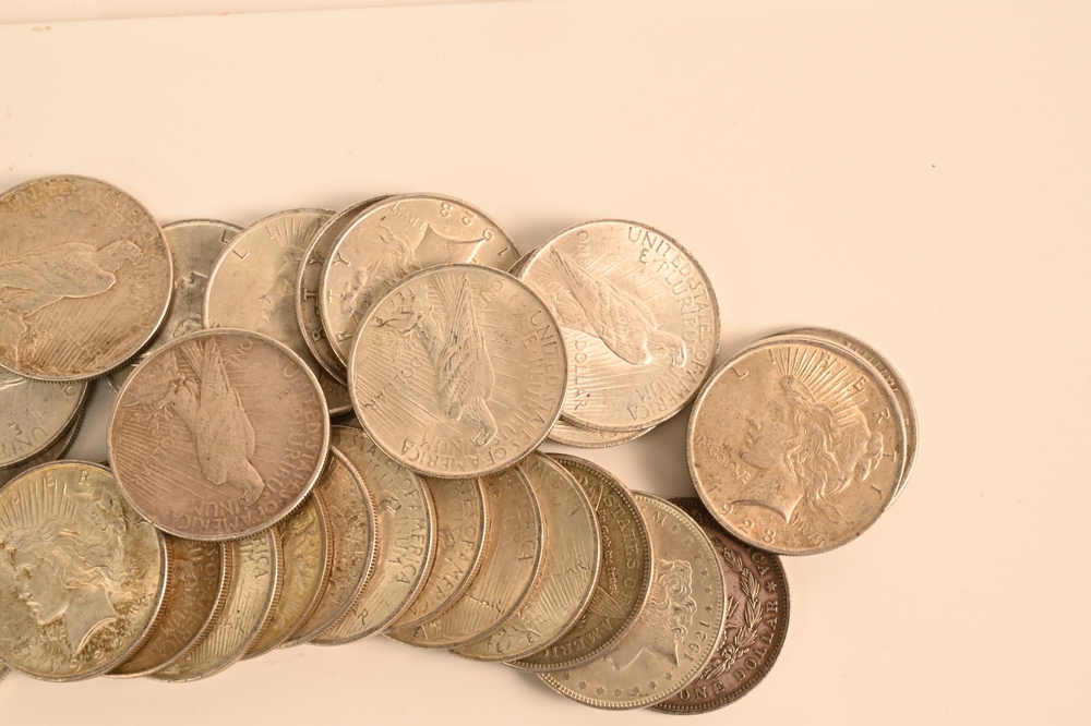 28 Silver Dollars, to include 25 Circulated Peace Dollars and 3 Circulated Morgan Dollars.