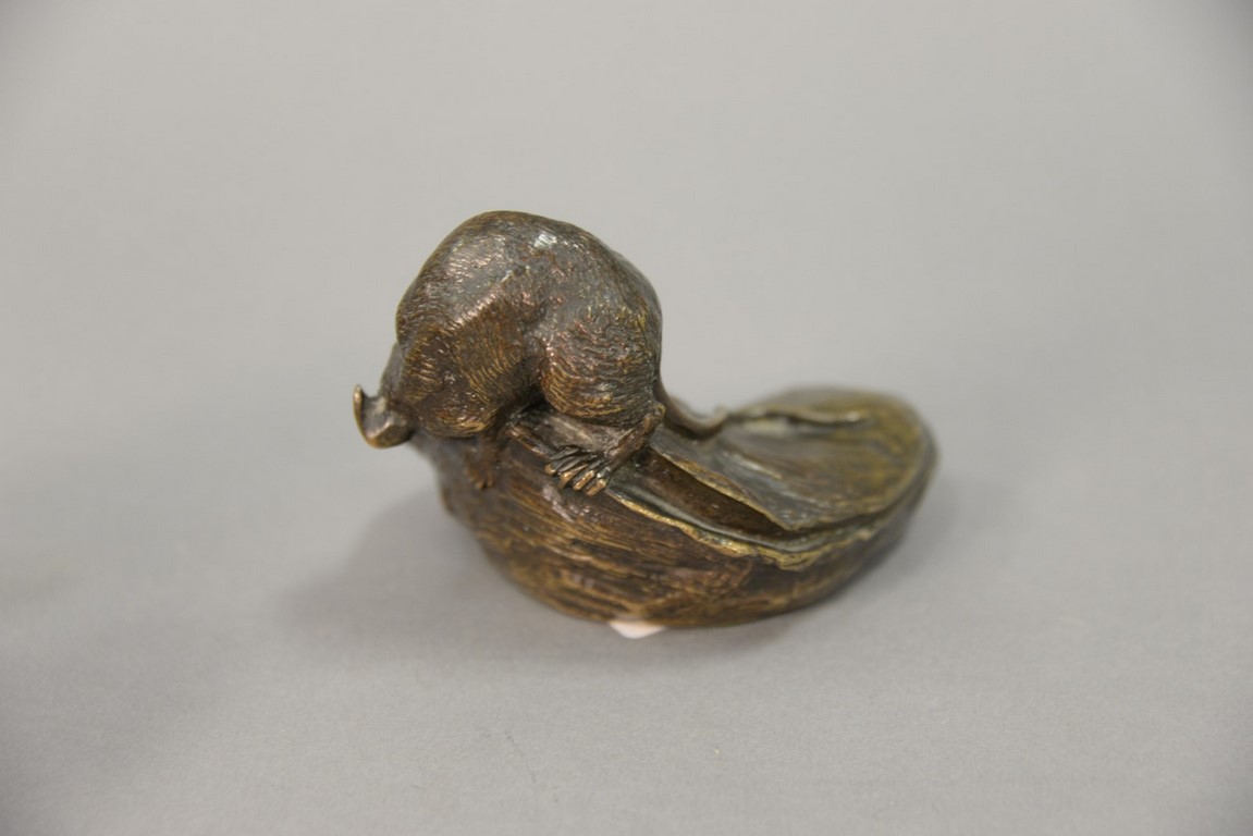 Bronze mouse and oyster. ht. 3 in. lg. 4 1/4 in.
