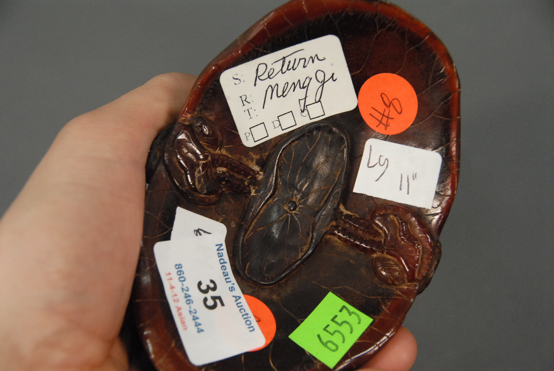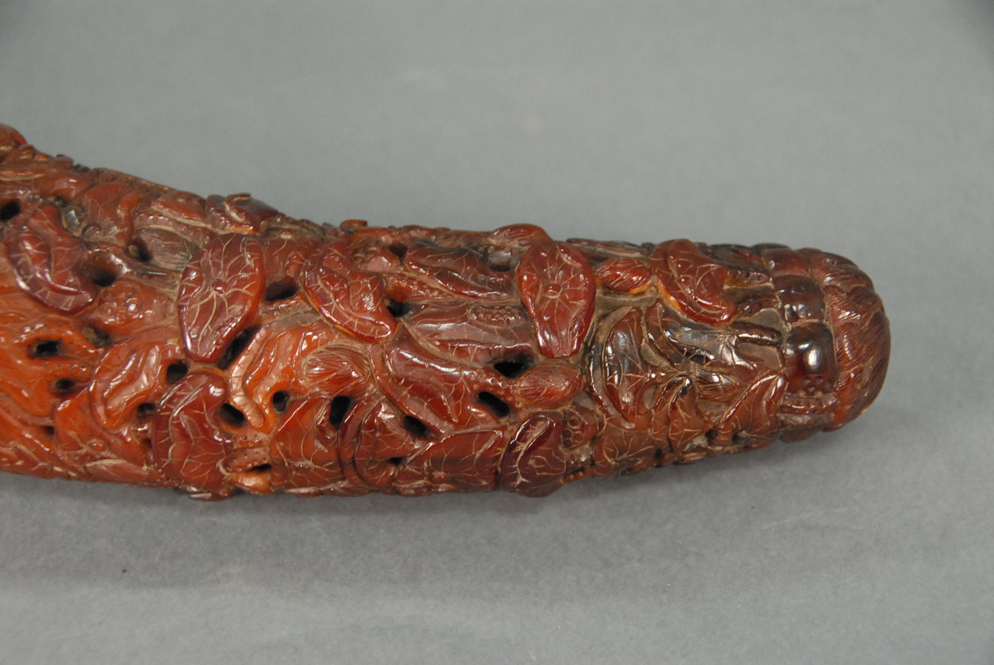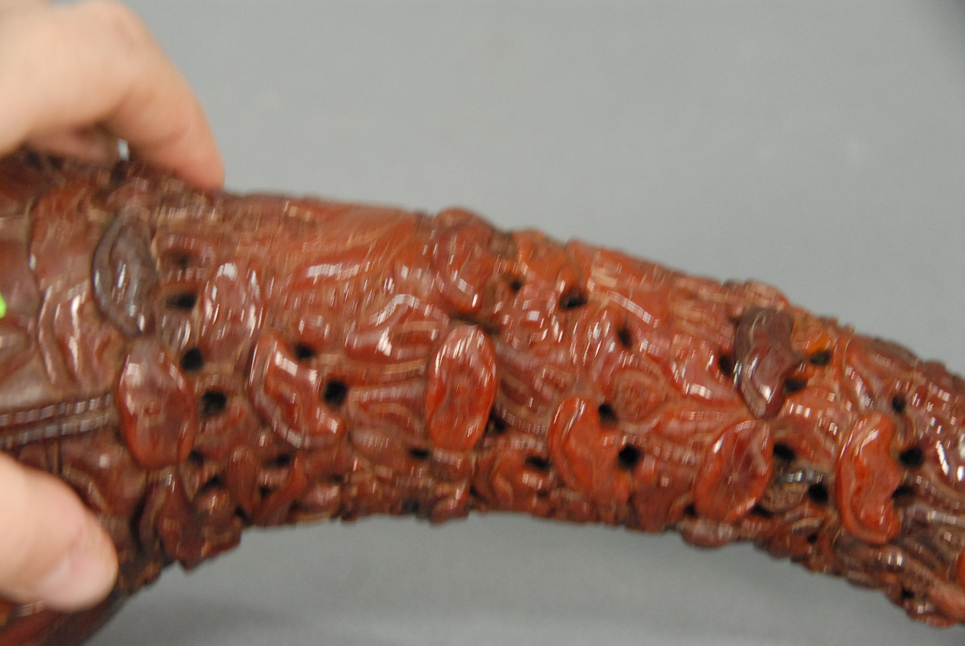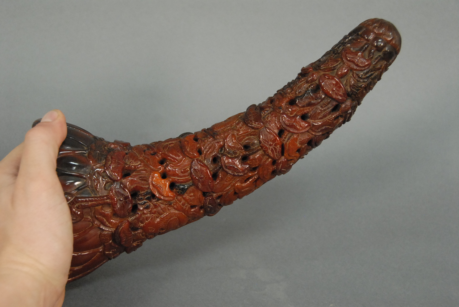 Carved horn with carved lotus all over, lg. 11in.