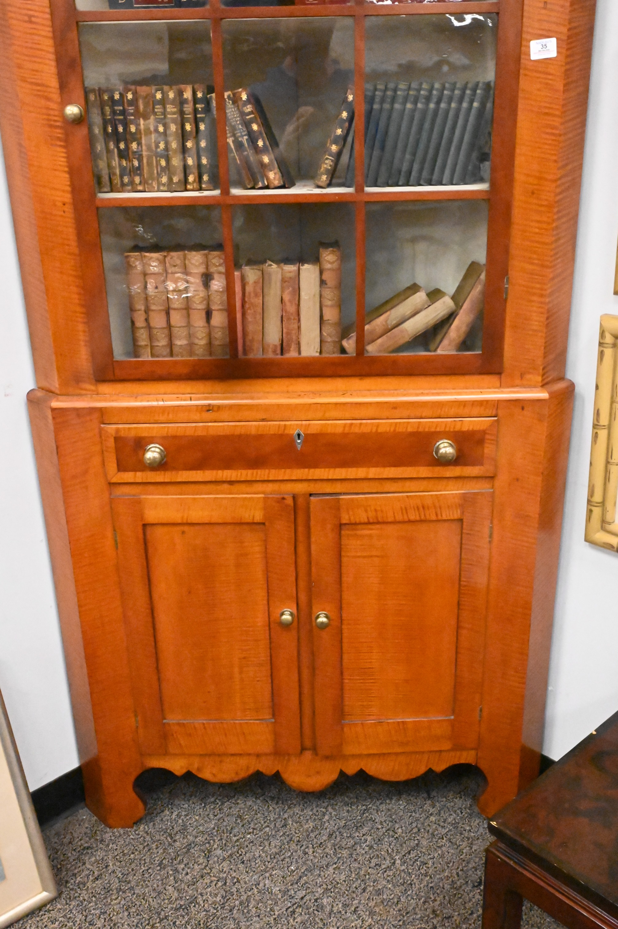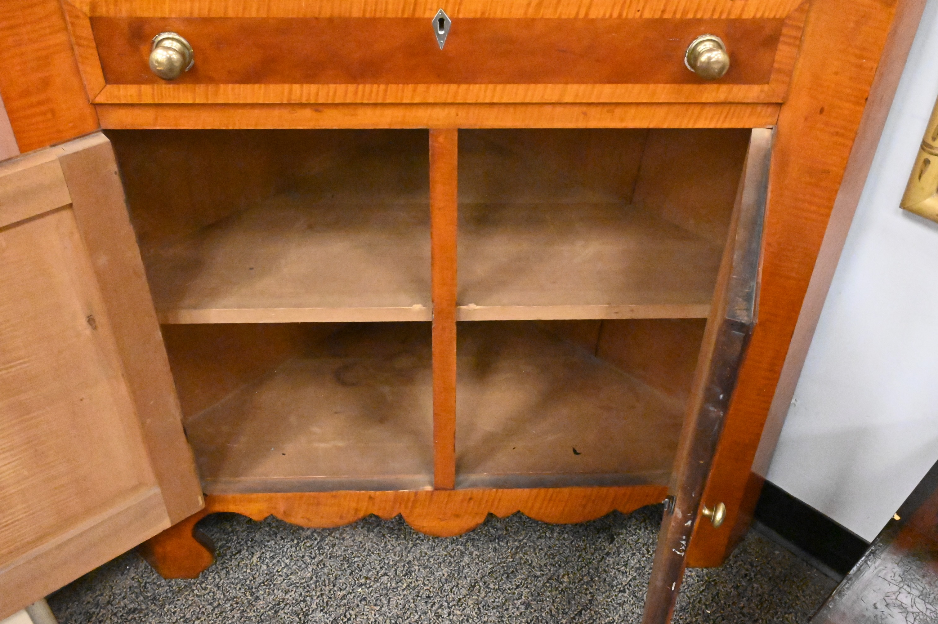 Lot 35: Chippendale Tiger Maple and Cherry Corner Cabinet