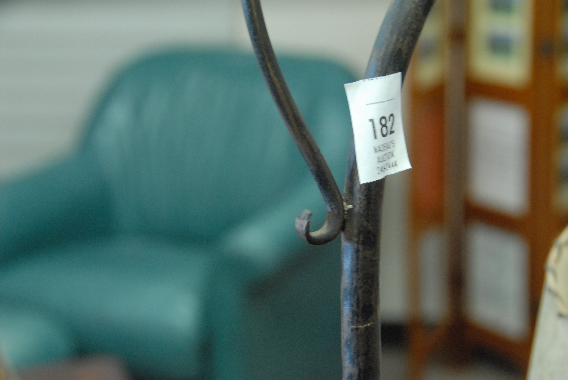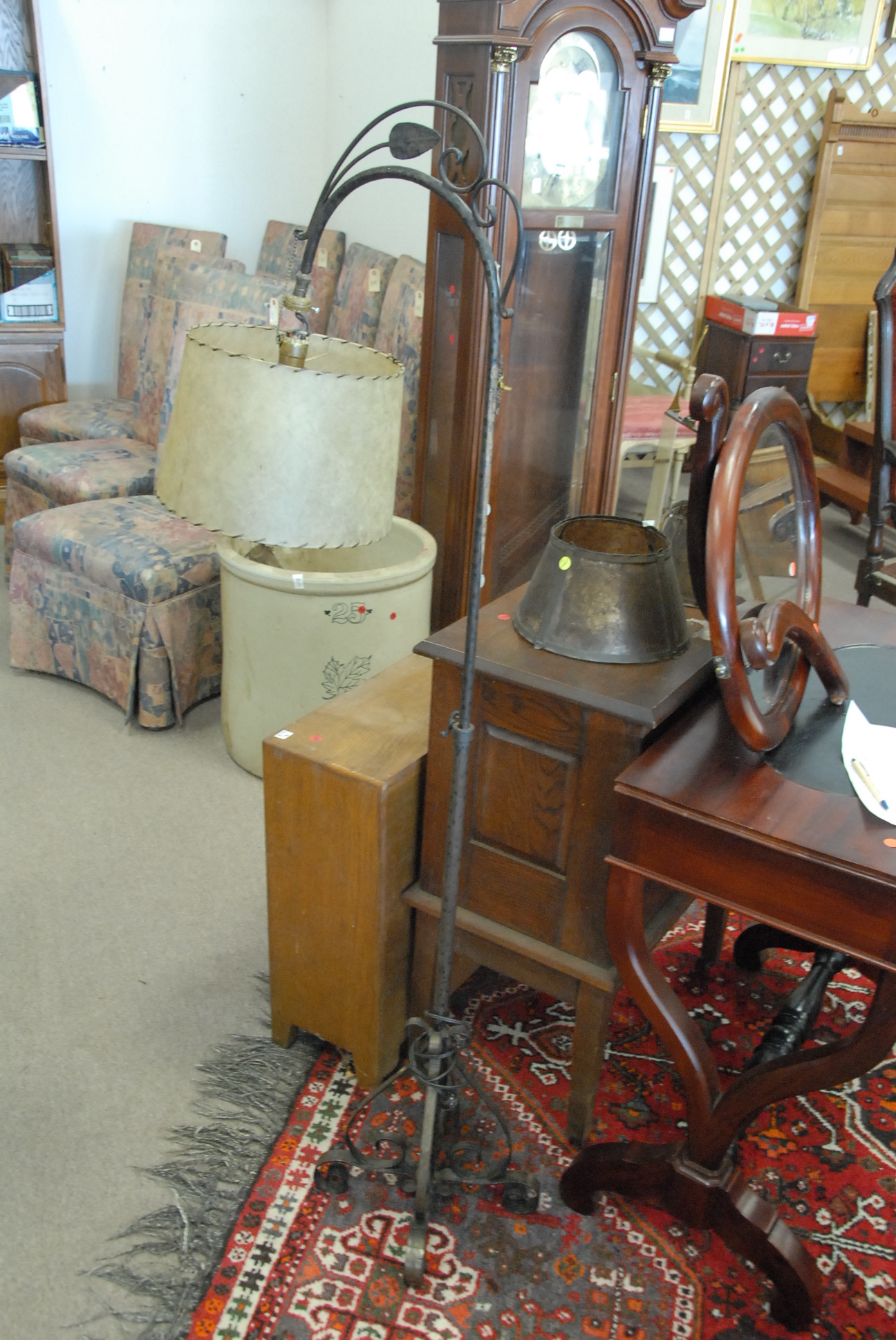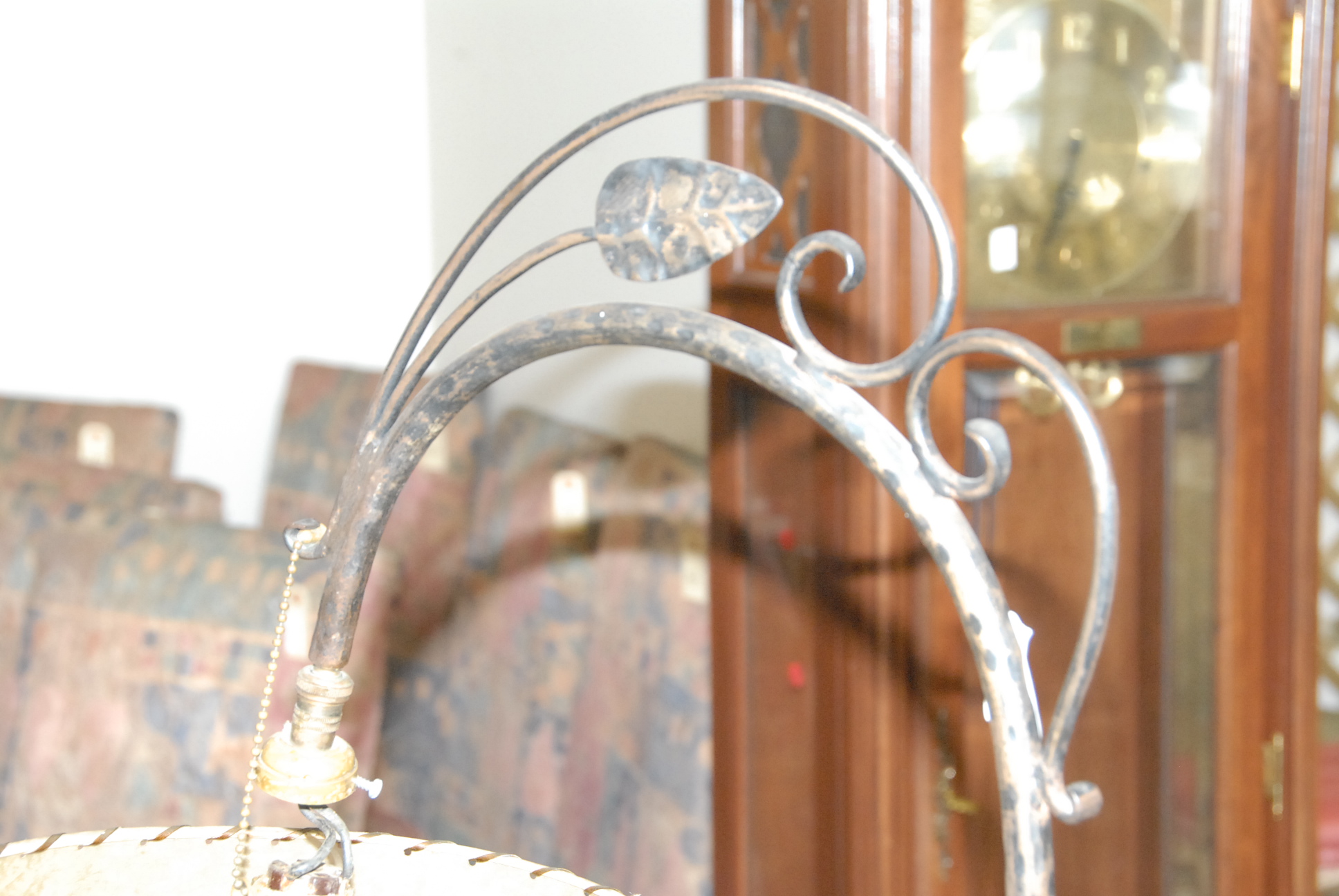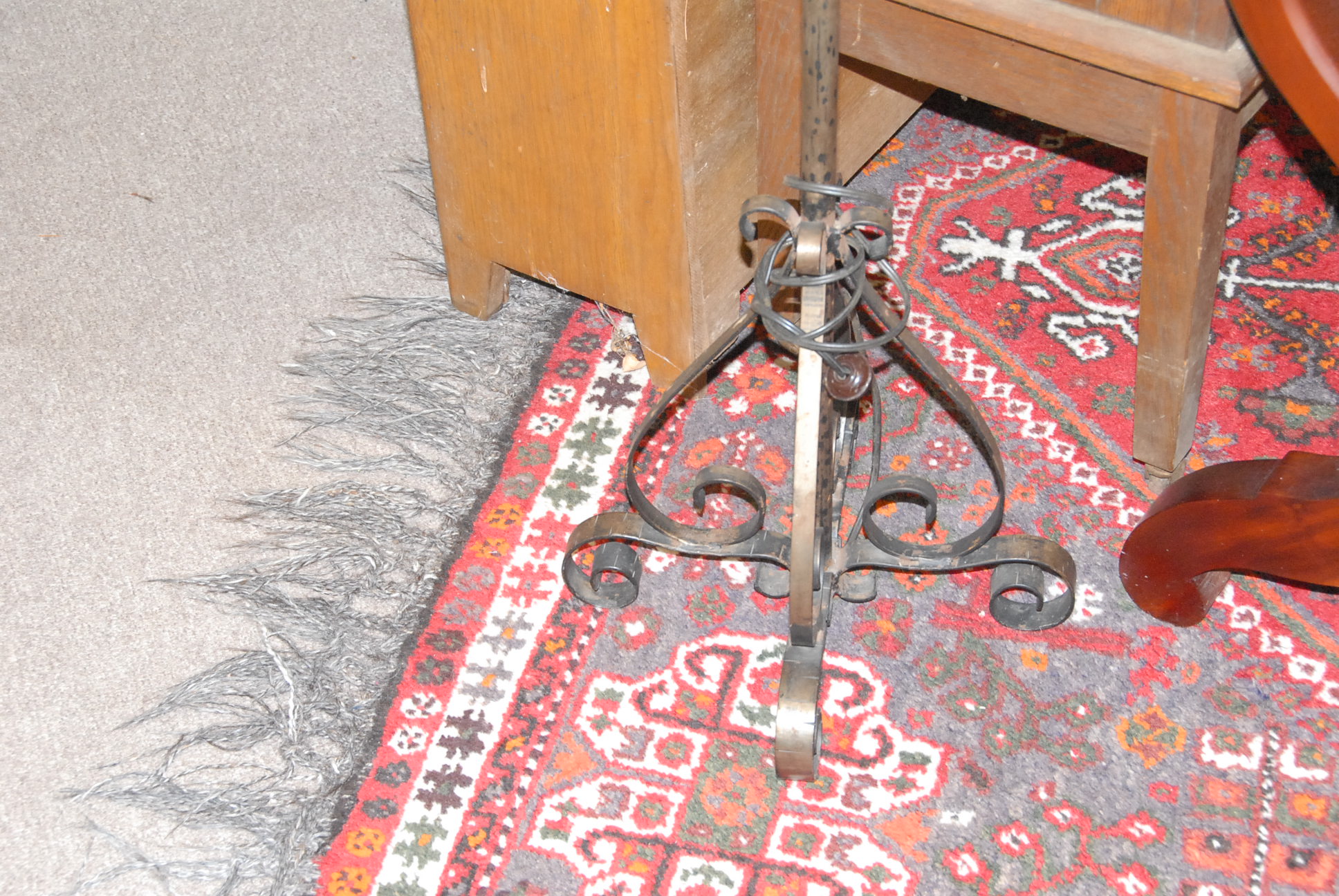 Custom mahogany Queen Anne style drop leaf table and a metal floor lamp