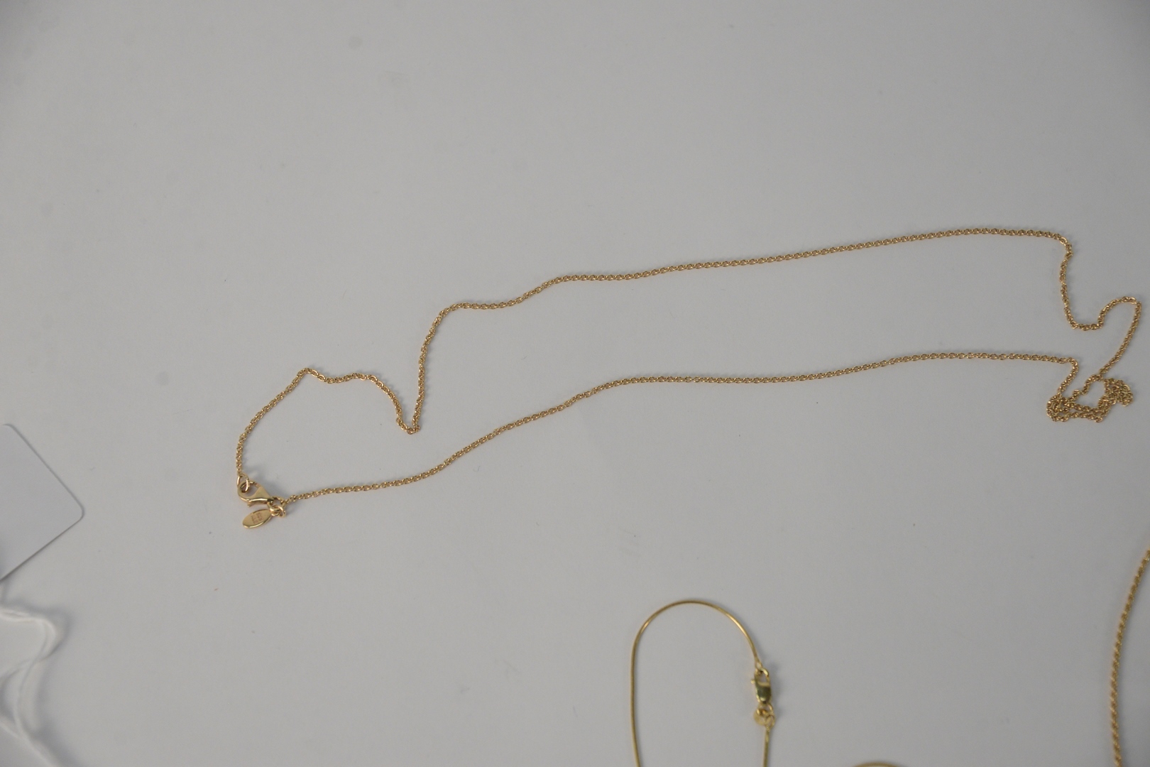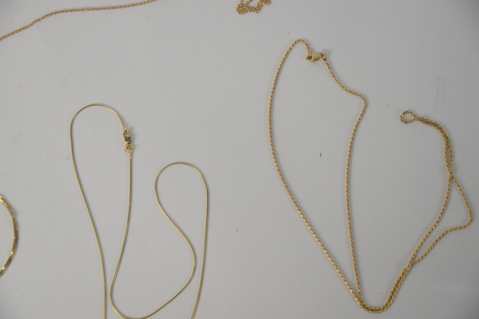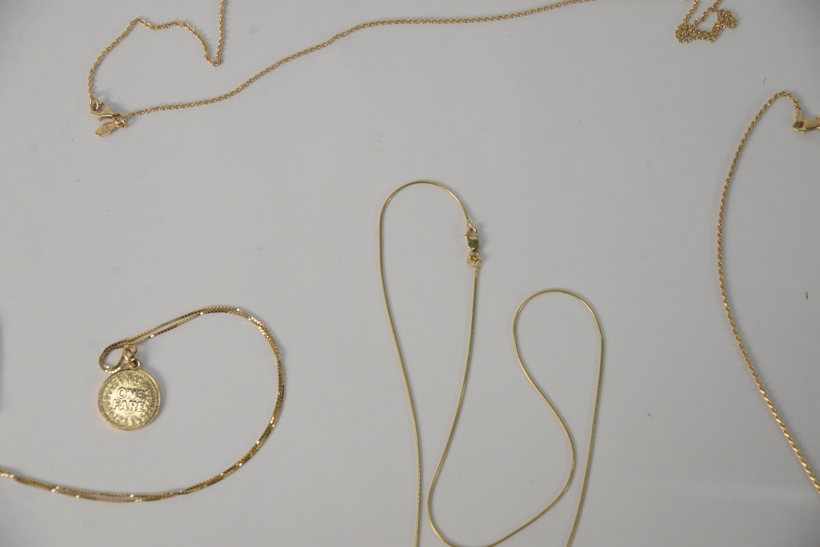 Four 14 Karat Gold Chains, one with gold pendant, 20.5 grams.