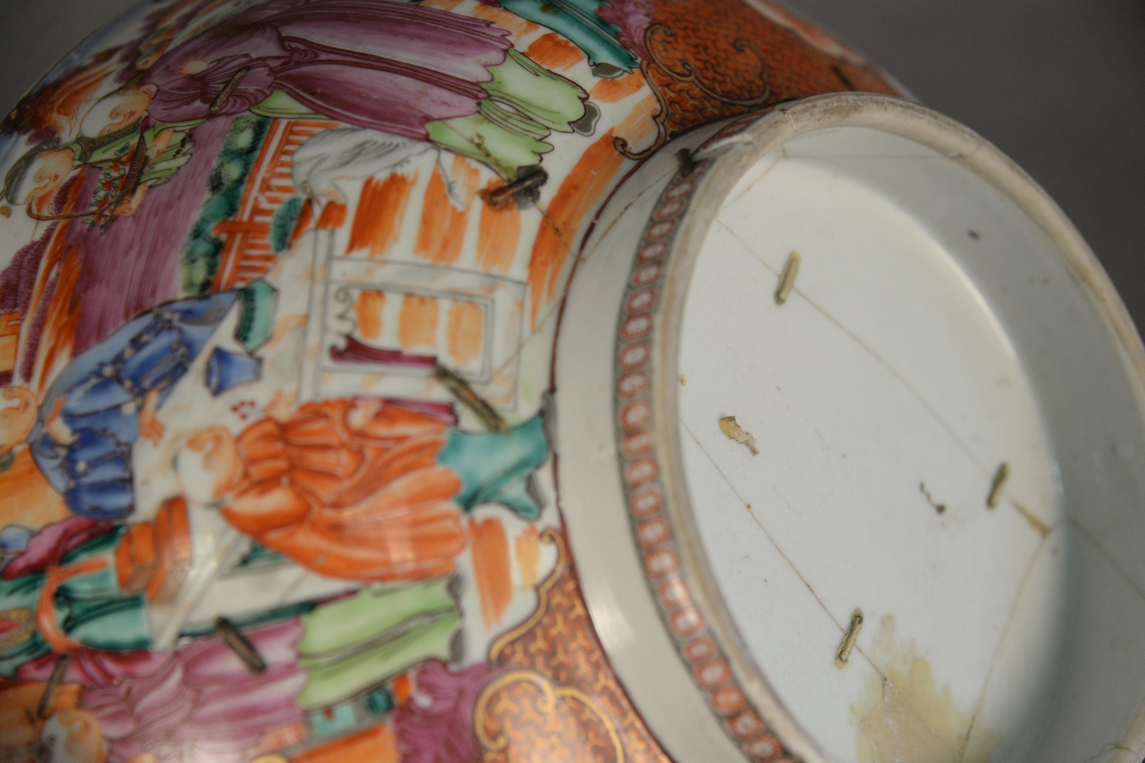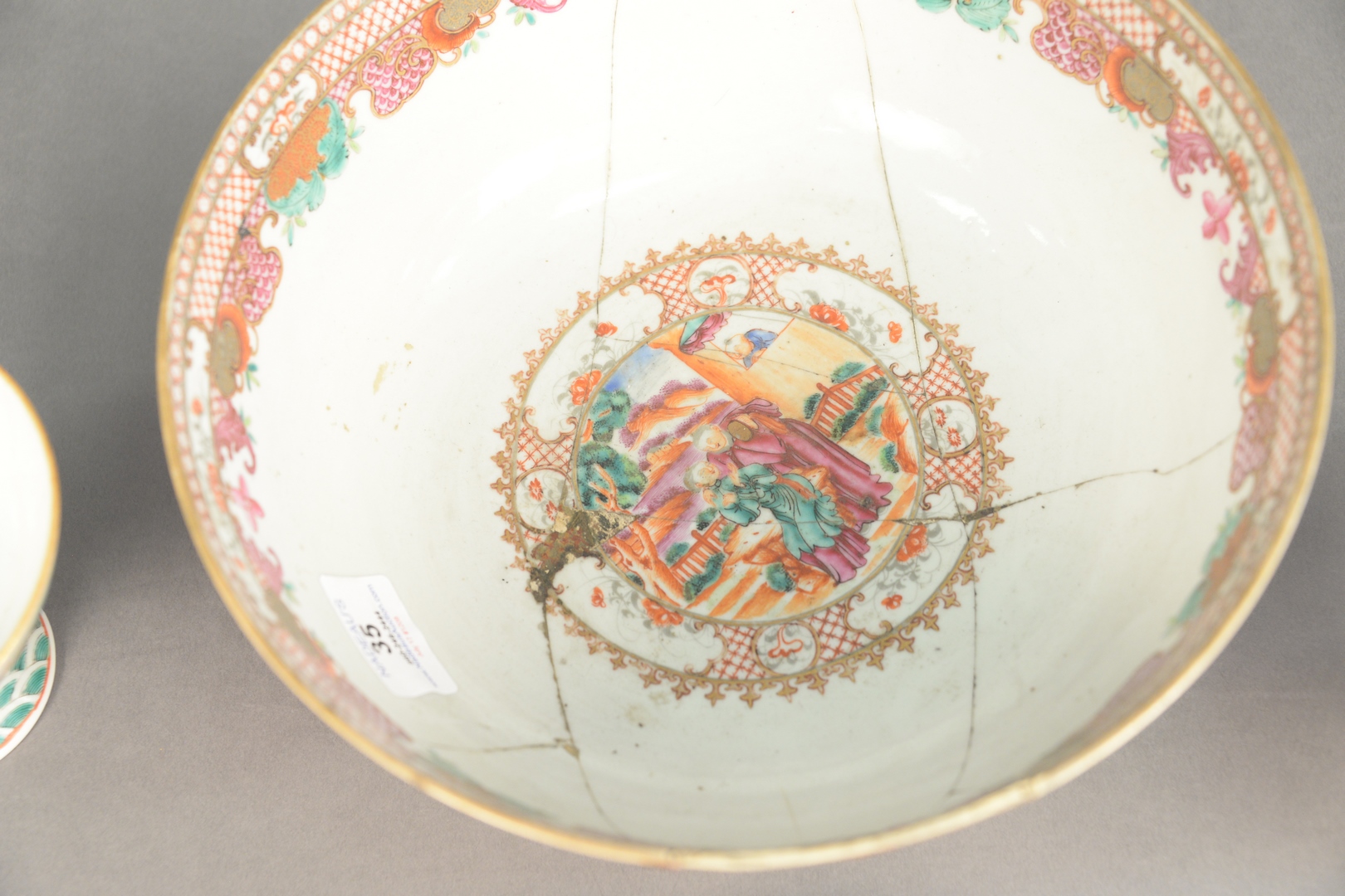 Lot 35: Four Piece Chinese Porcelain Group, to include Chinese Export bowl (as is), pair of Famille Rose compotes, along with a bat dish, 10 3/8 inches diameter bowl.