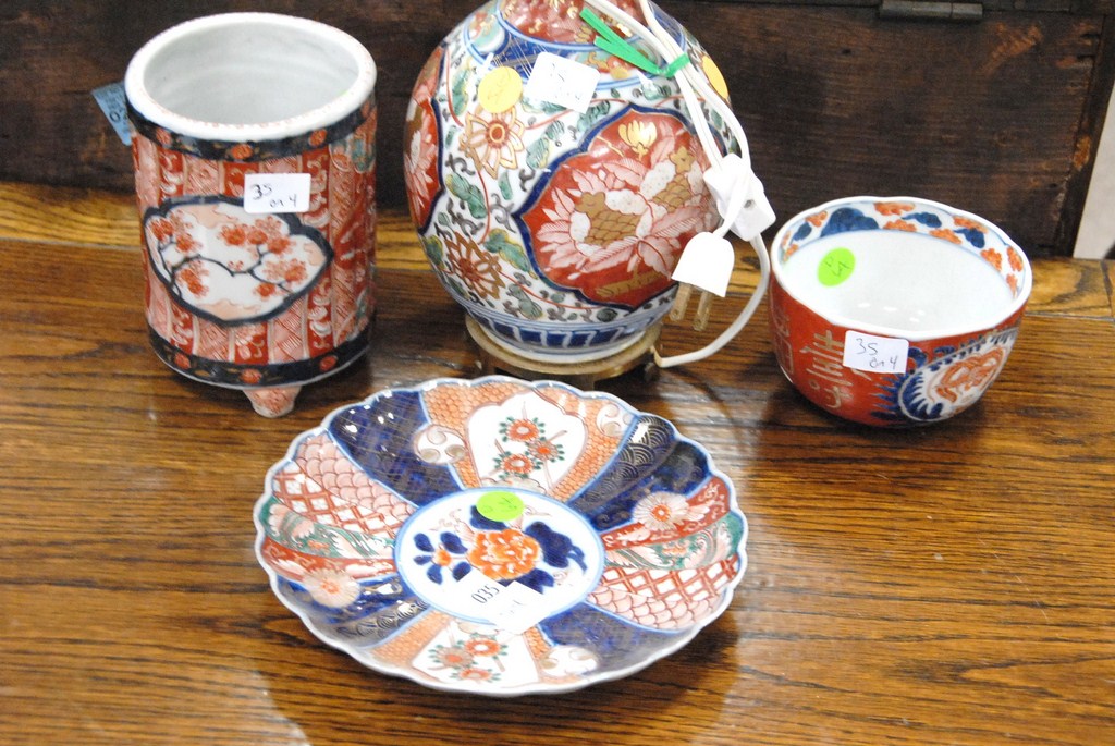 Four piece lot of Imari porcelain including a table lamp.